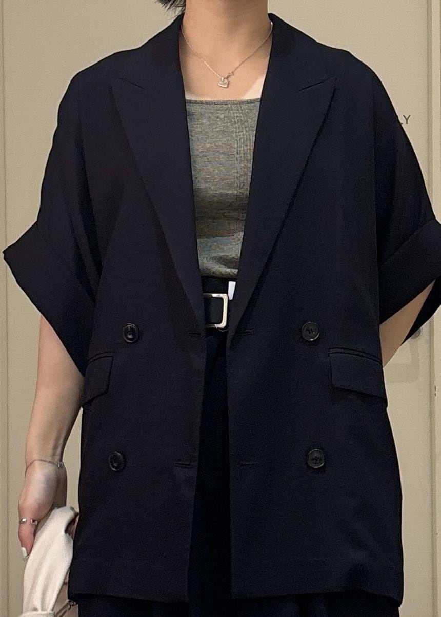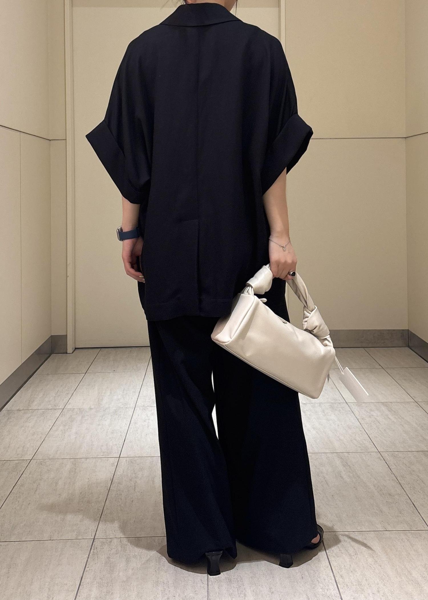 ミラーのタンクトップに、今人気アイテムの半袖スリーブジャケットを合わせて大人な雰囲気のコーディネートにしました!