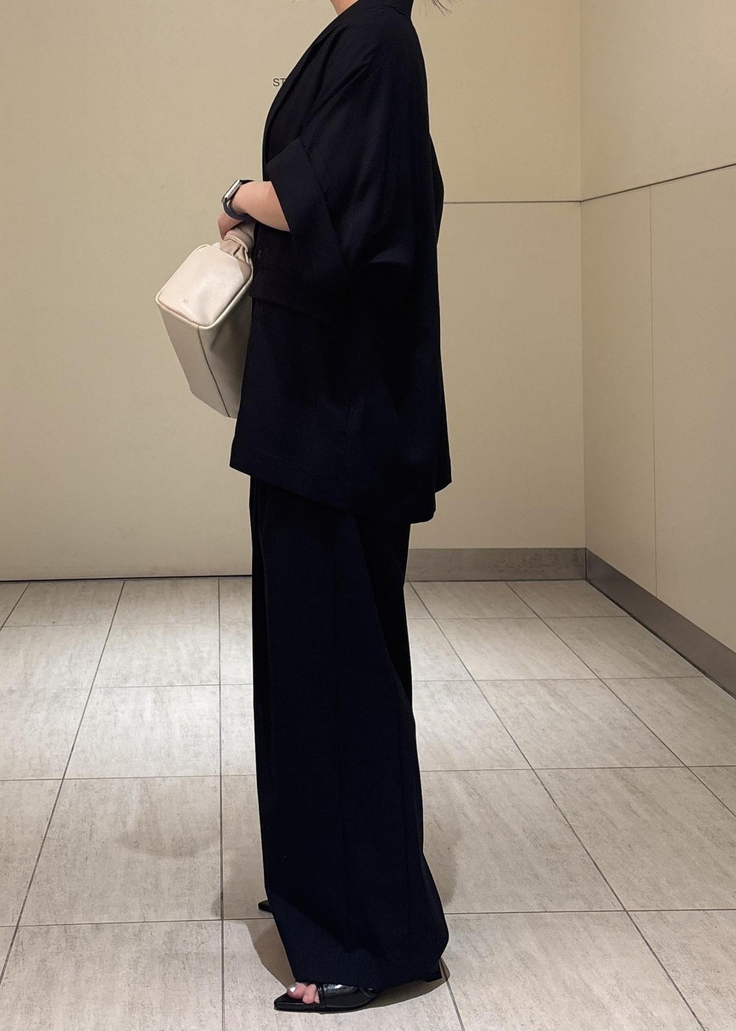 スタイリングベースは黒にして、ジャケットから見えるグリーンをポイントにしてみました◎
