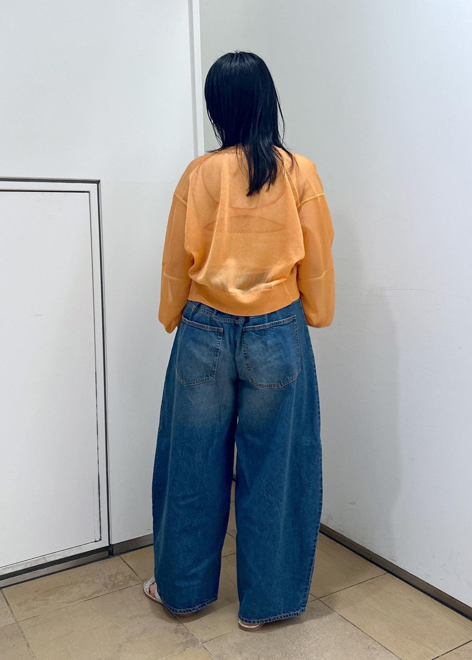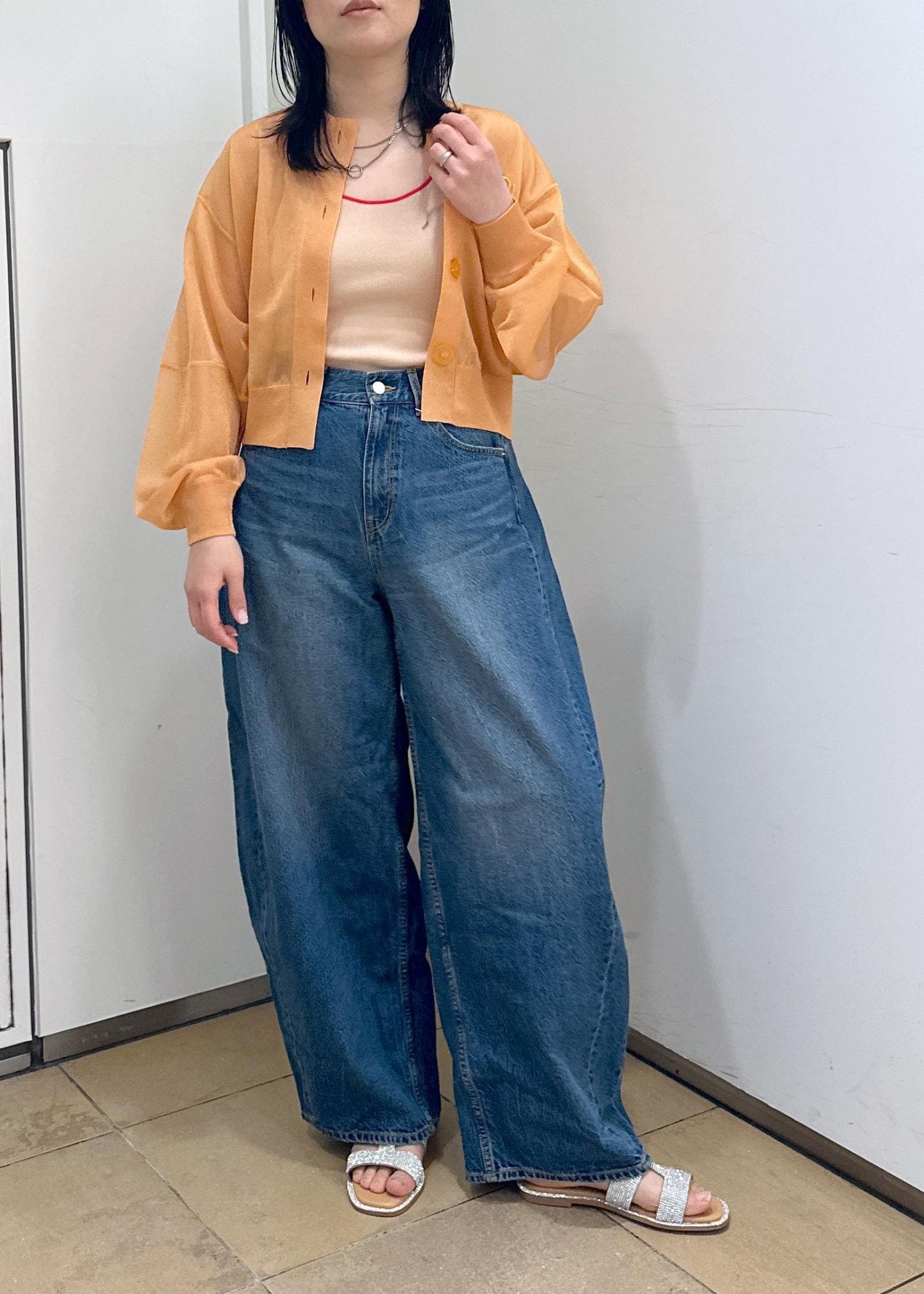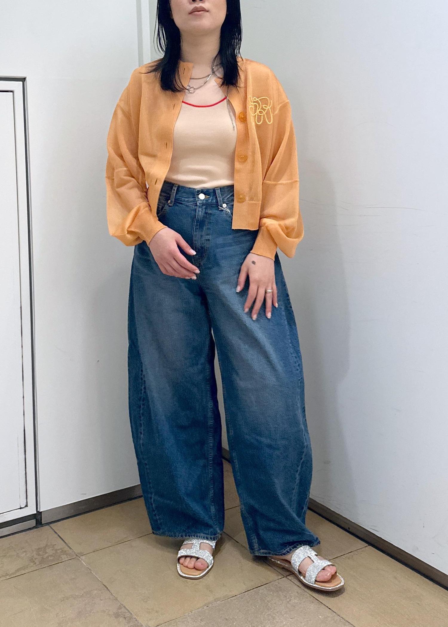 元気が出るオレンジ色のカーディガンにデニムを合わせました!