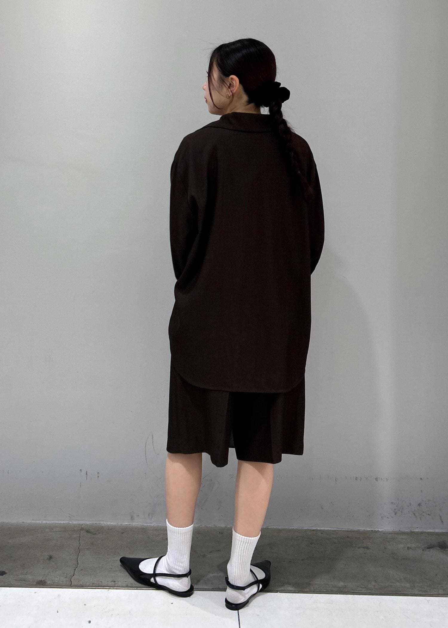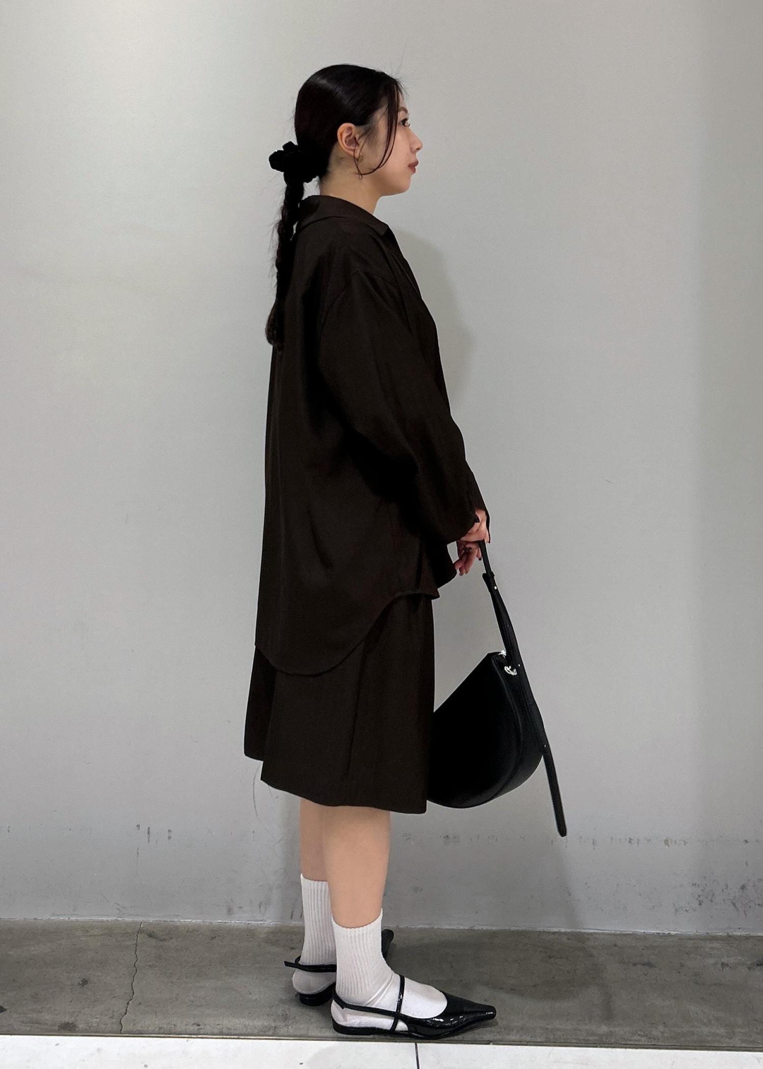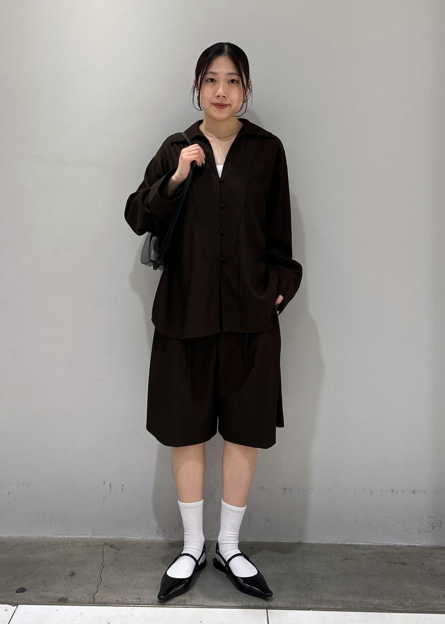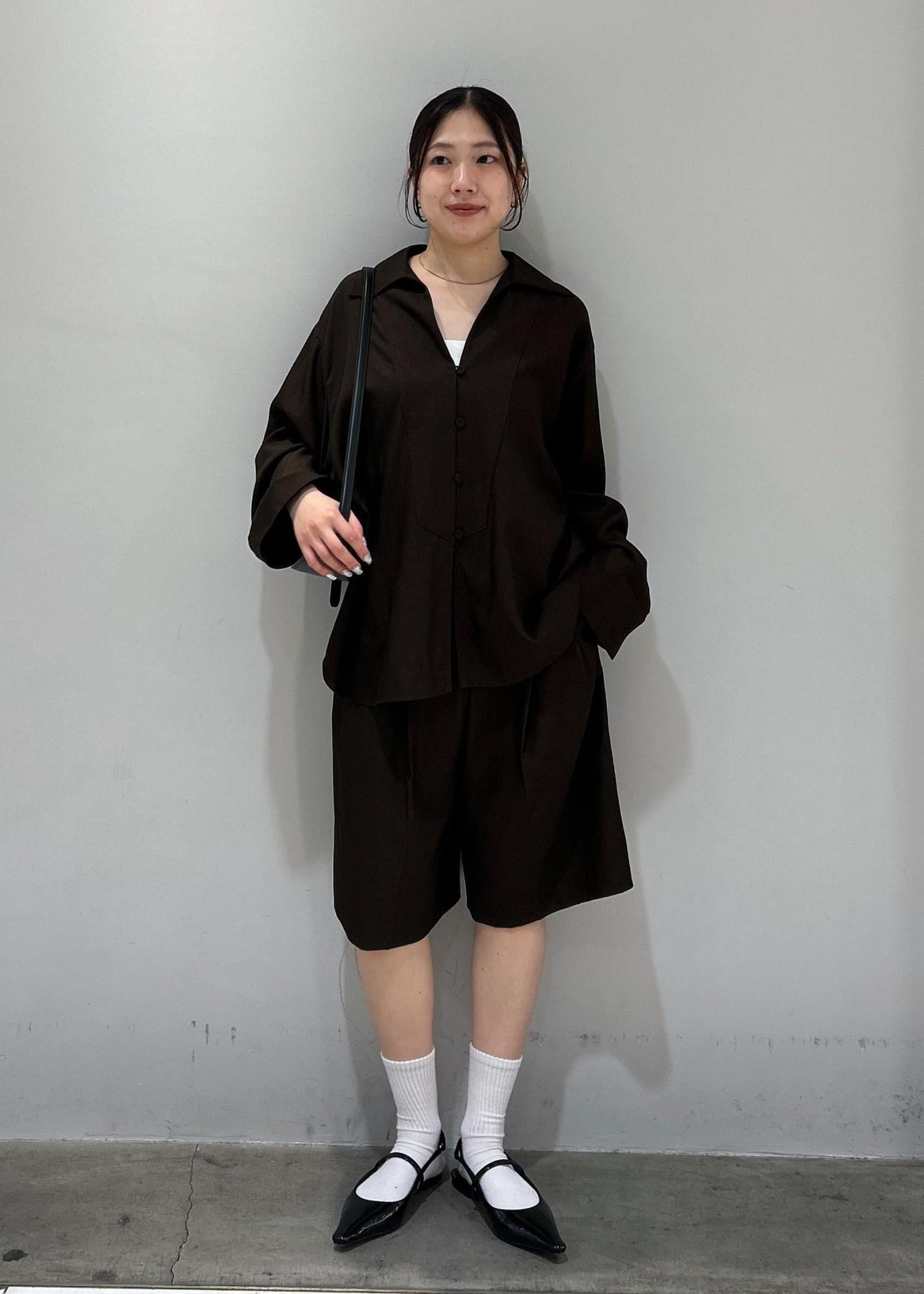シャツと同素材のハーフスラックスパンツで、161cmな38を今回着用してます!膝が気持ち隠れる程度の長さですので、よりタイトに着用されたい方は36がおすすめです!