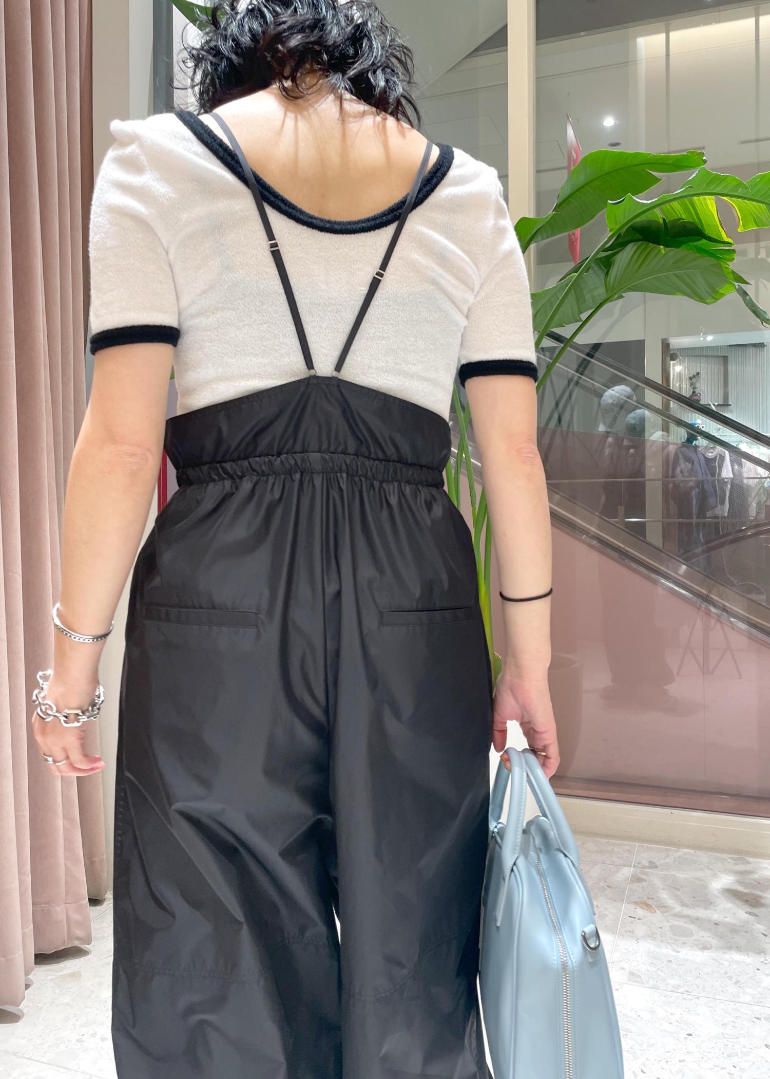 また、ウエストの紐をぎゅっと締めてパンツとして着たり、裾のドロストコードでワイド、バルーン、とシルエットを変えて楽しめます!