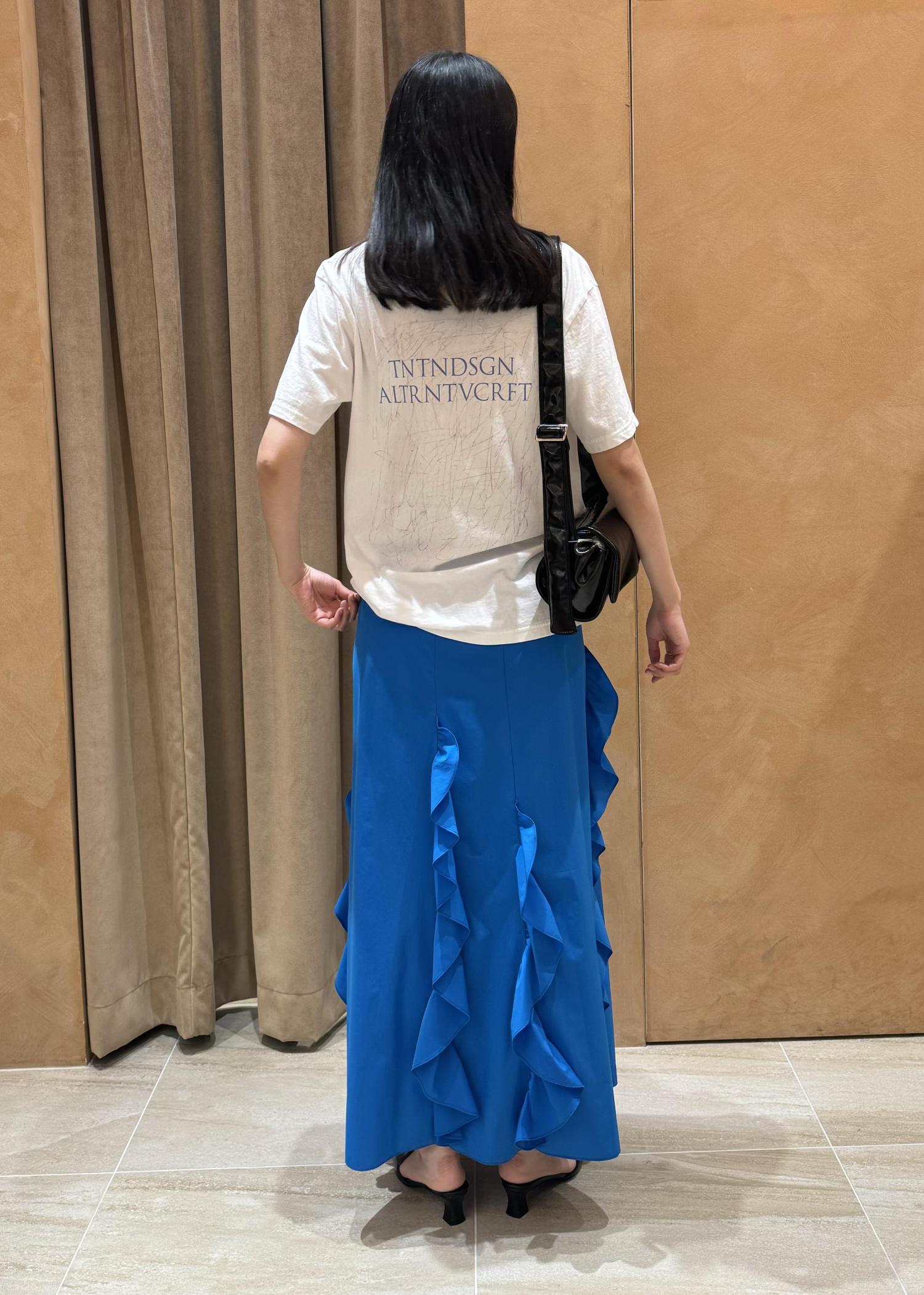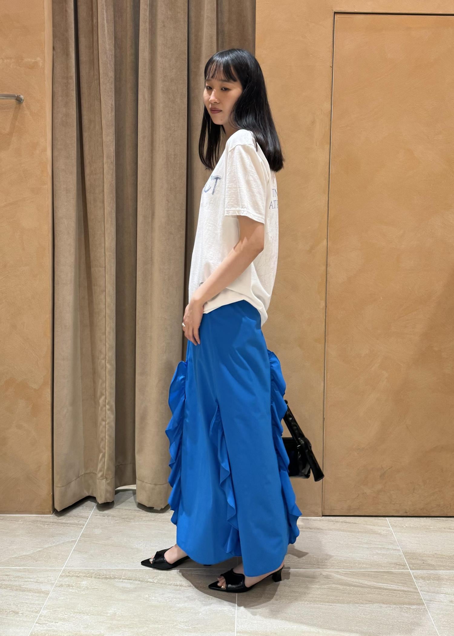 鮮やかなブルーのスカートを使ったサンプルスタイルのご紹介です。