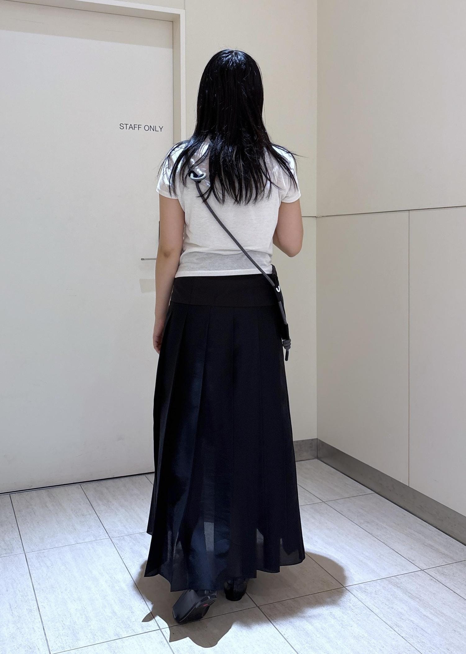 軽やかなオーガンジー素材で程よい透け感のあるプリーツスカート -