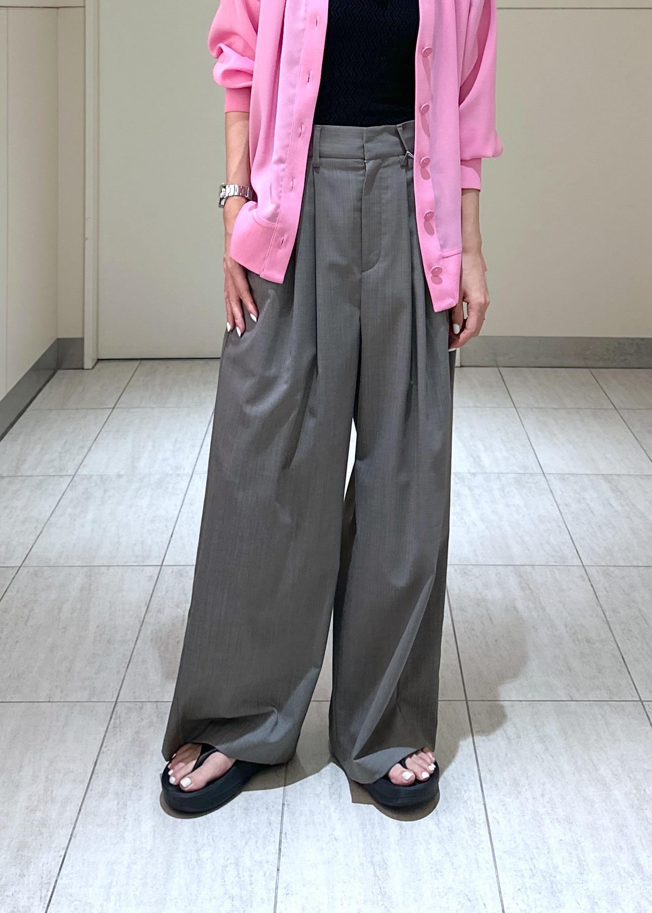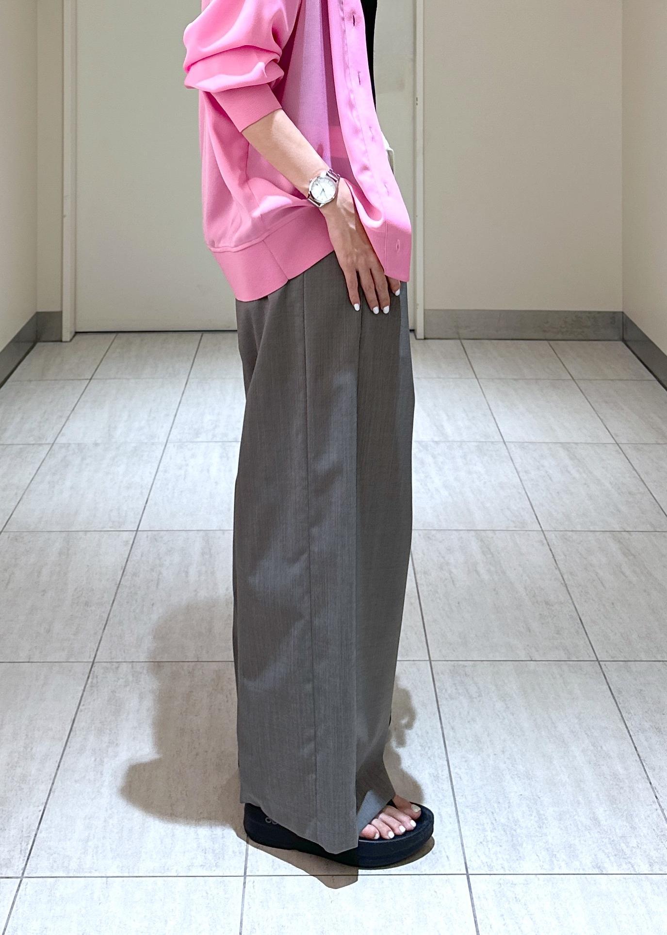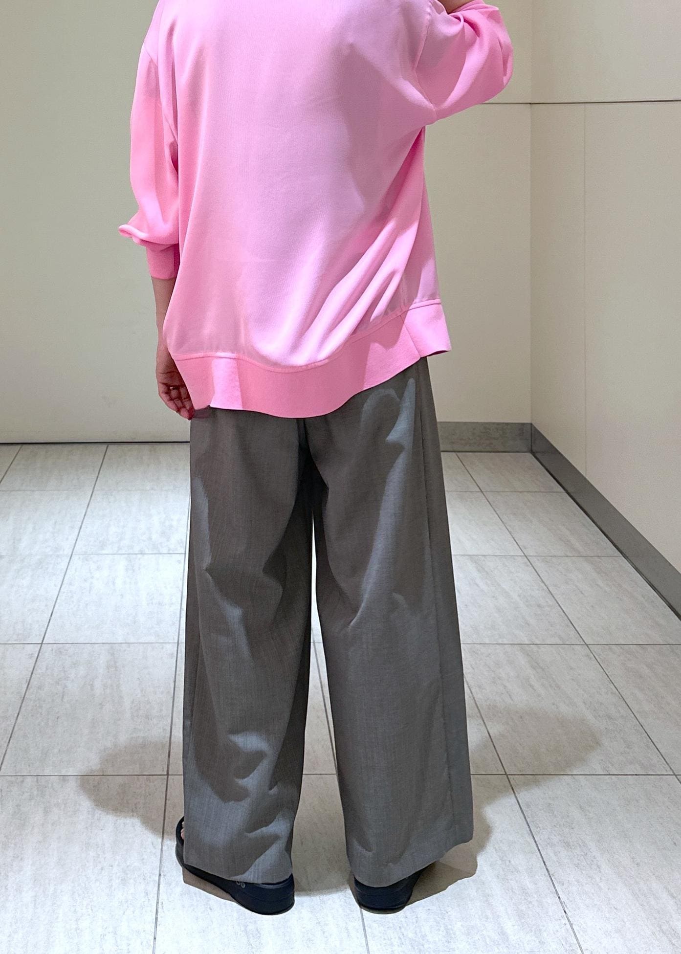 グレーのようなブラウンのような大人なカラーと、少しオーバーサイズでゆるっと履けるリラクシーなシルエット。