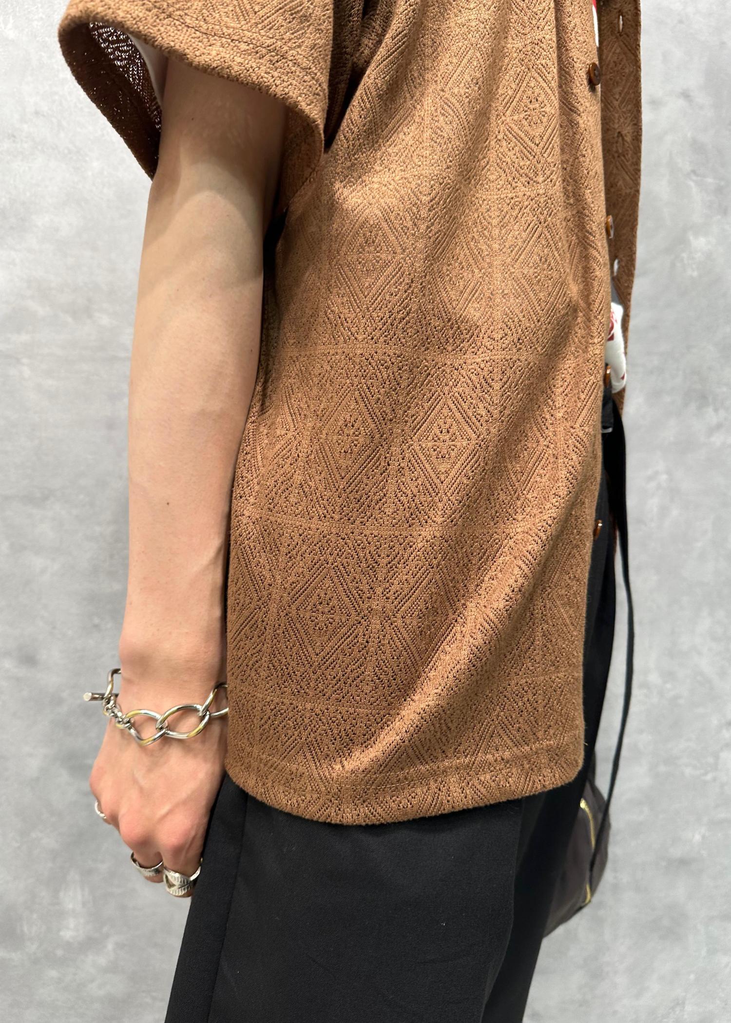 レースシャツ。レースながらも透け感がかなり弱いのでフェミニン感があまりなく、上品でキレイに着れます。襟の形がポロシャツで、ちょっとした可愛らしさも詰まってます。ルーズな着心地ながらもシルエットはややスッキリめです。着るだけで大人っぽい印象に。 -
