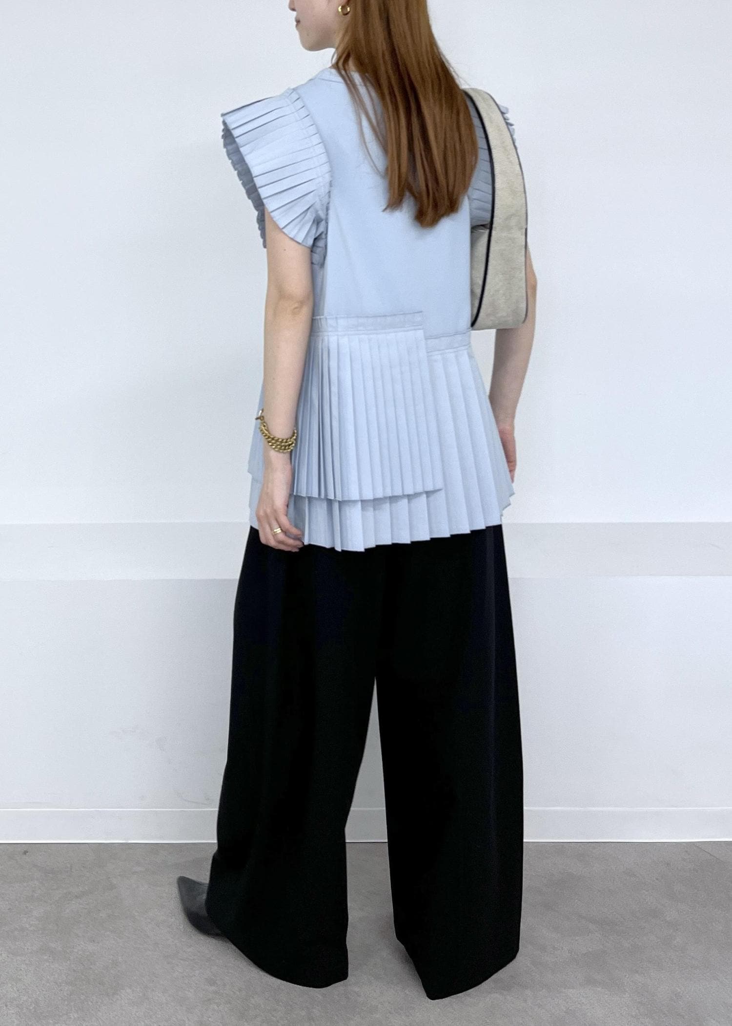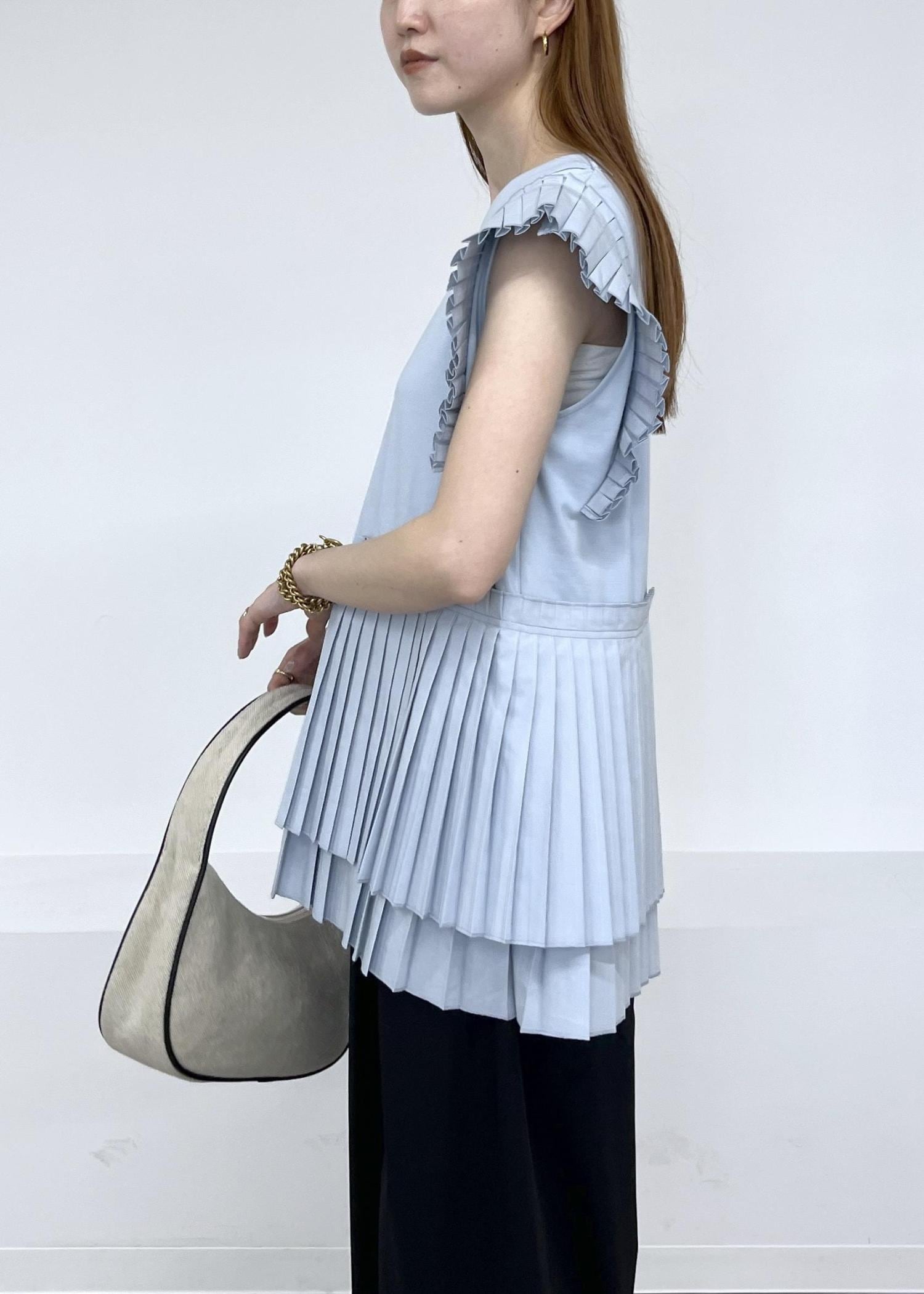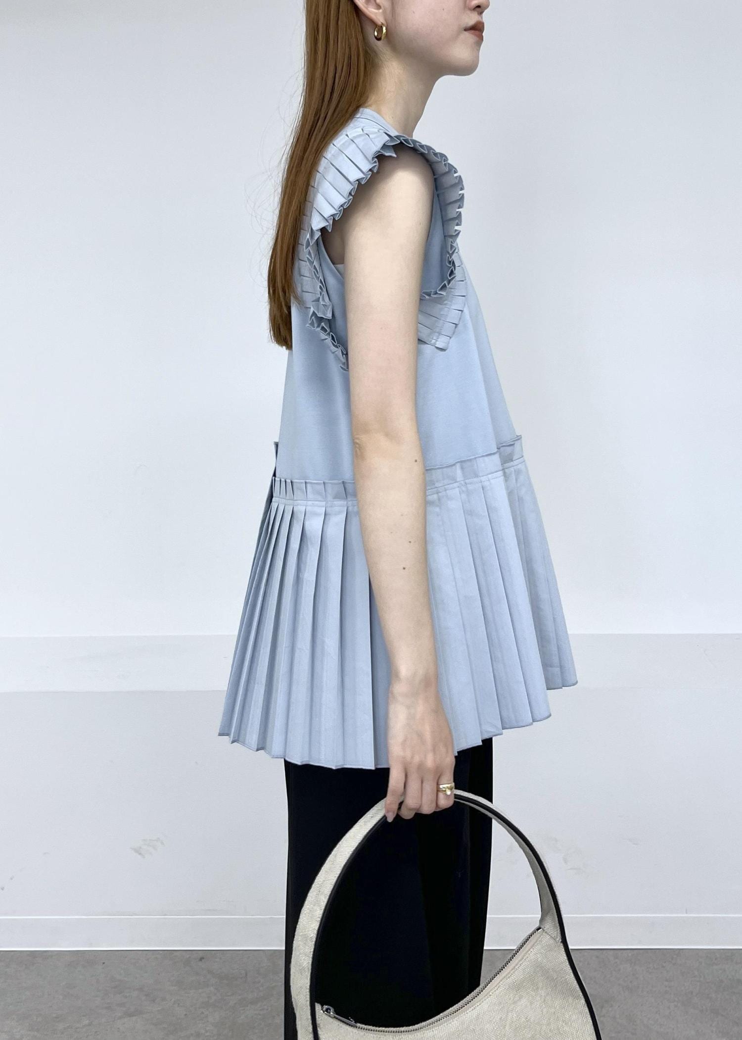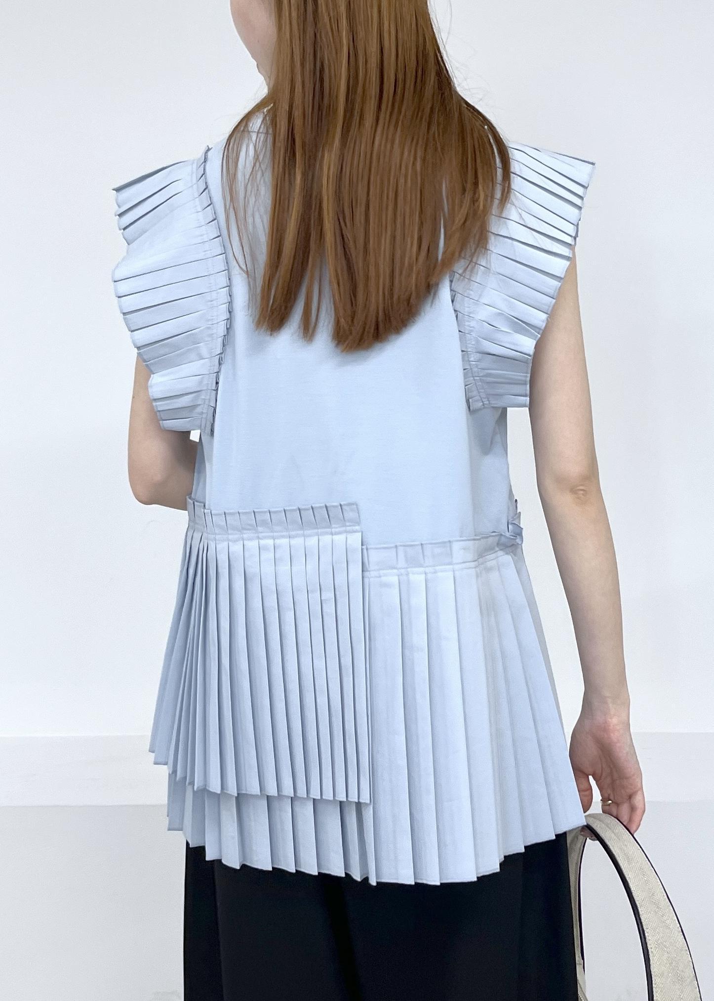 アウトレットADAM ET ROPÉ FEMME【サステナブル】プリーツコンビプルオーバーサックス / F¥5,720レビューサラッと着られる素材感で、ノースリーブのような形なので夏でも涼しく快適に◎袖にプリーツがついていることで程よく二の腕をカバーしてくれます。着丈はおしりが隠れるくらいの長さです。