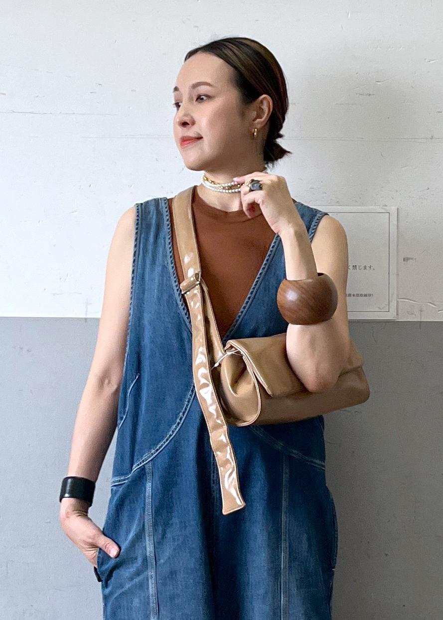 身幅が割と広いのでインナーはタイトなものがオススメかなと思いAURALEEの定番のカットソーを。首が詰まってる感じですが胸元があいたデザインのトップスも◎着回しが色々出来そうです♪是非参考にしてみて下さい♡