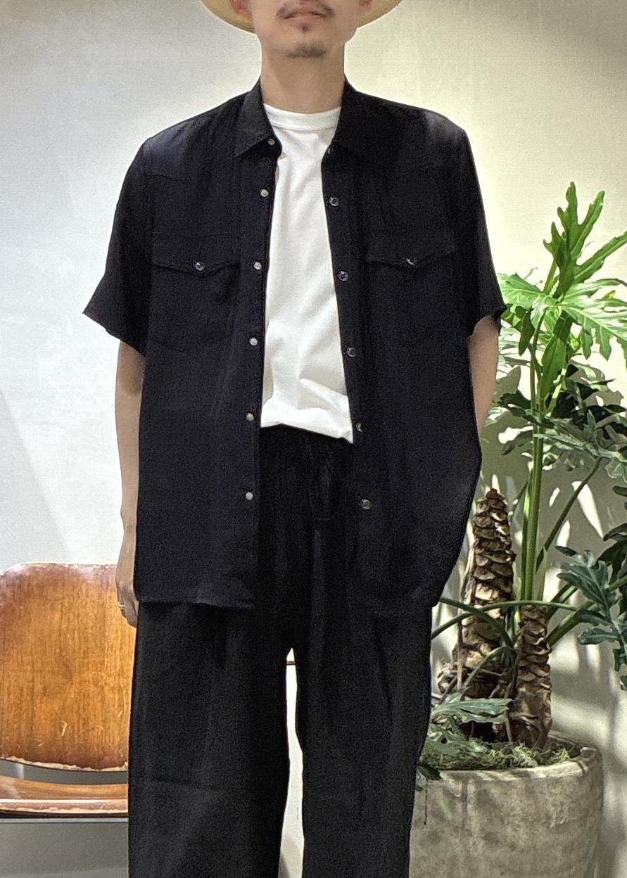 アウトレットADAM ET ROPÉ HOMMEウエスタン ショートスリーブシャツブラック / M¥6,776レビューややゆったりめのサイズ感で、僕自身肩幅がありますがMでも余裕を持って着用できました。レーヨンのとにかく軽い生地感なので、夏場の重ね着でもサラッと羽織っていただけます。
