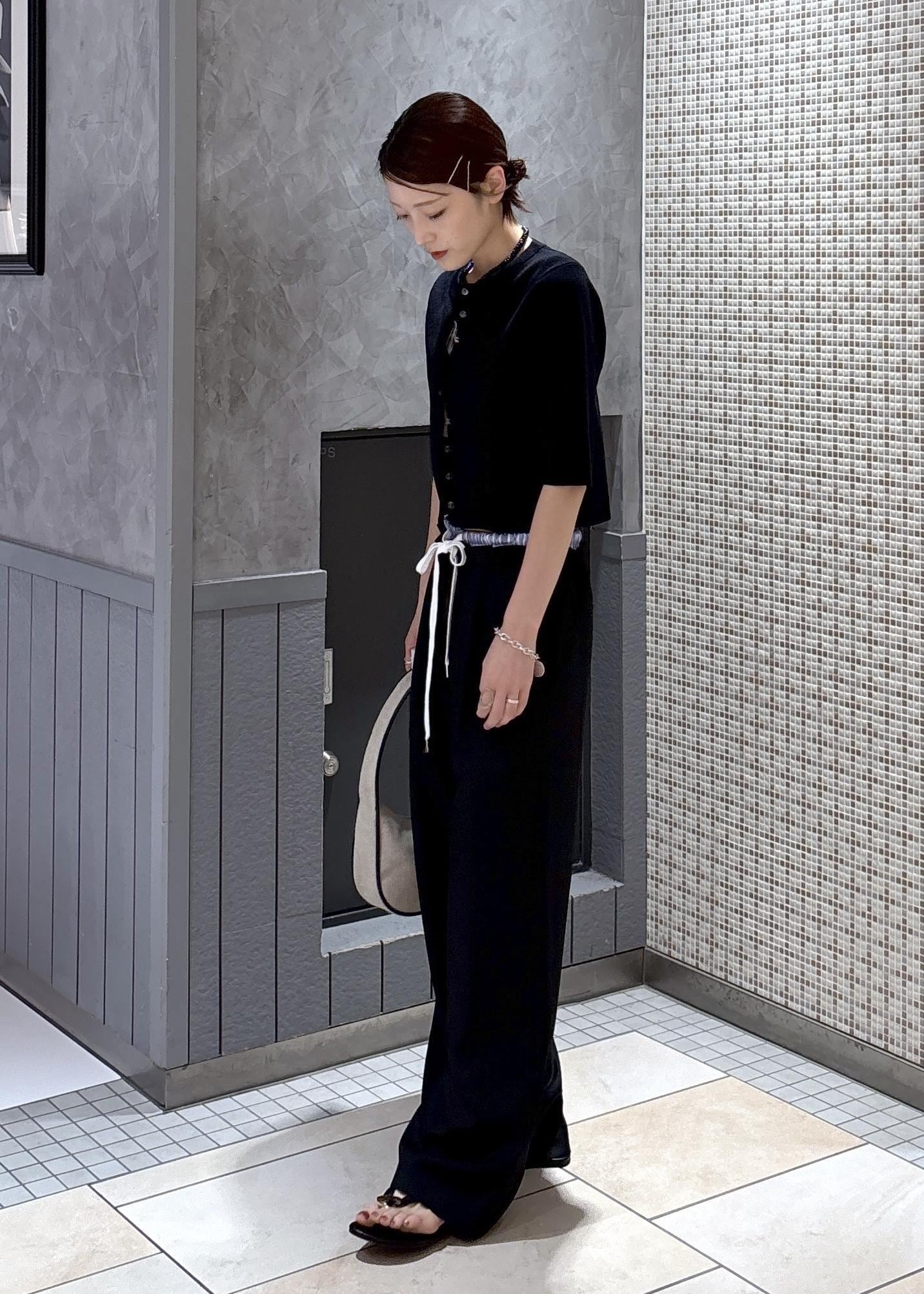 さらっとした生地感で程よく厚みがあるので、ボディラインを拾いにくいです! -