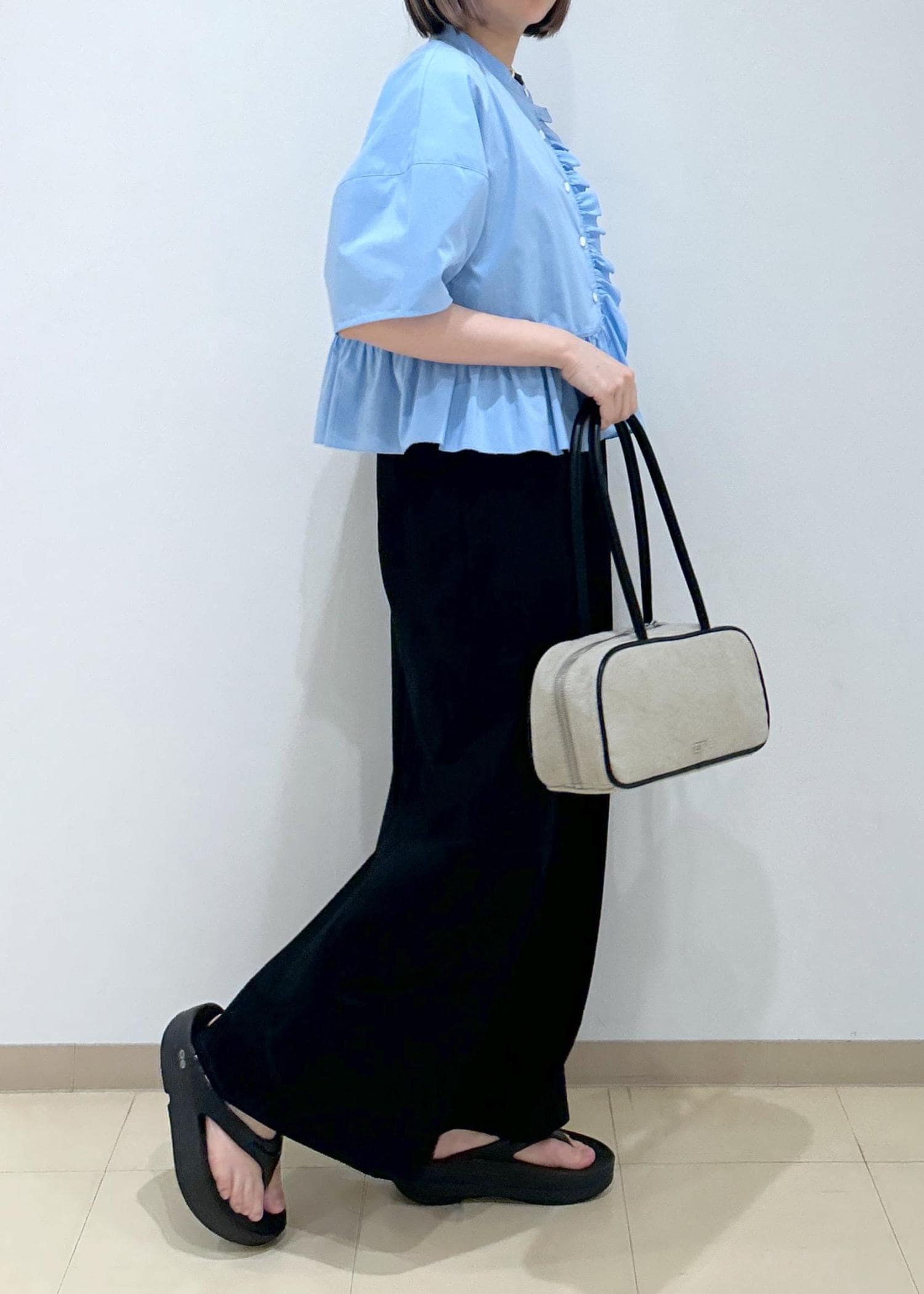フロントのボタンを開けて、カーディガンのように羽織ってもよりすっきり見えます!