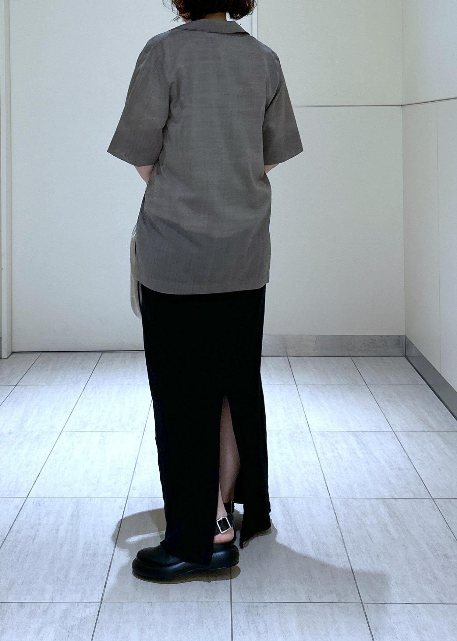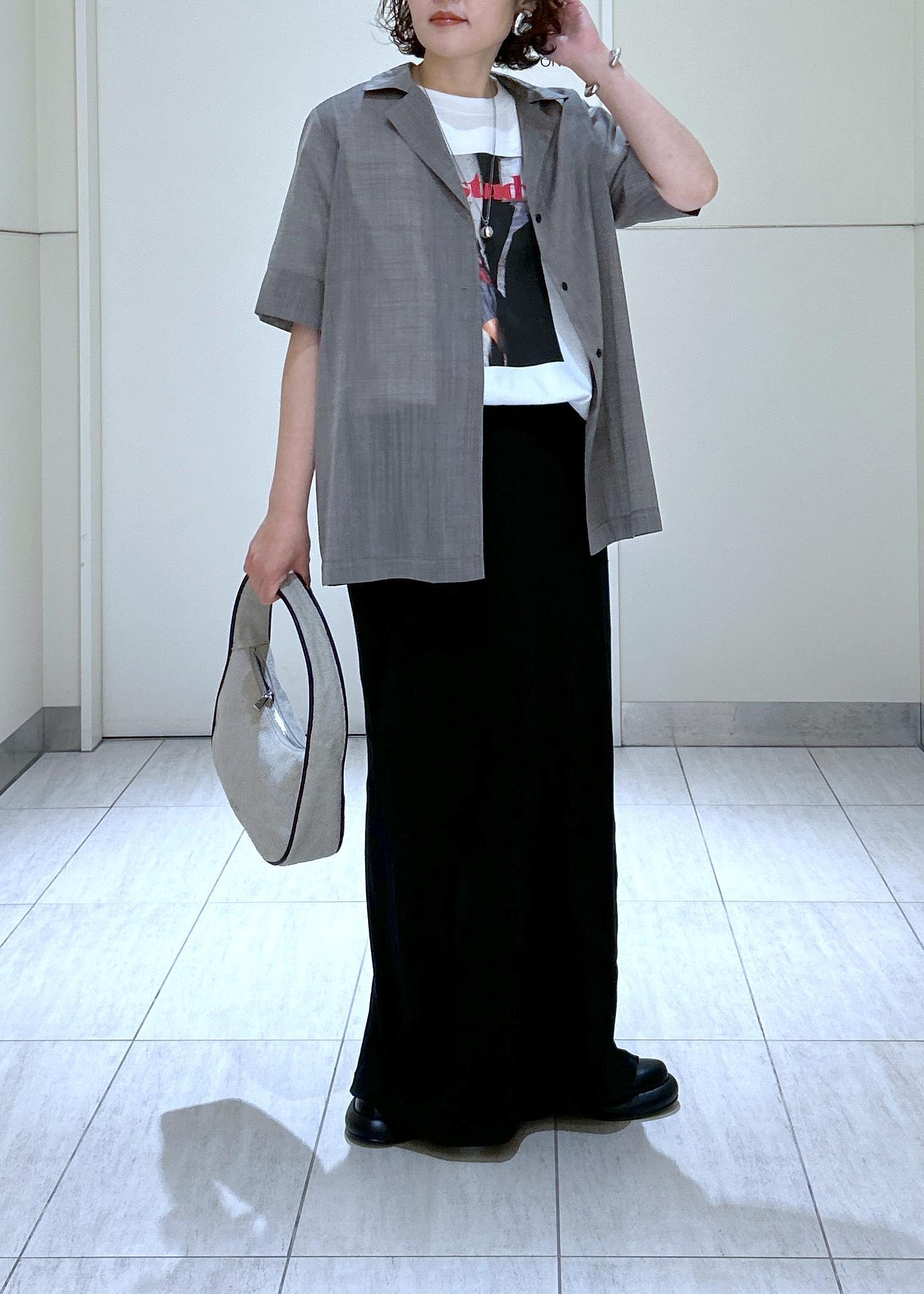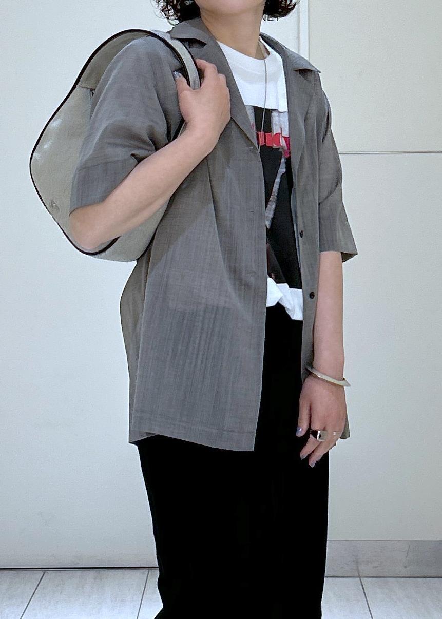 サイズ感はゆったりとしたオーバーサイズ。縦長シルエットでジャケットの役割も果たしてくれるシャツです! -