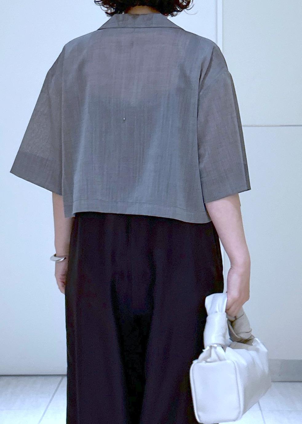 前回、シャツジャケットの長い着丈の方をご紹介しましたが、今回は短い丈をご紹介。