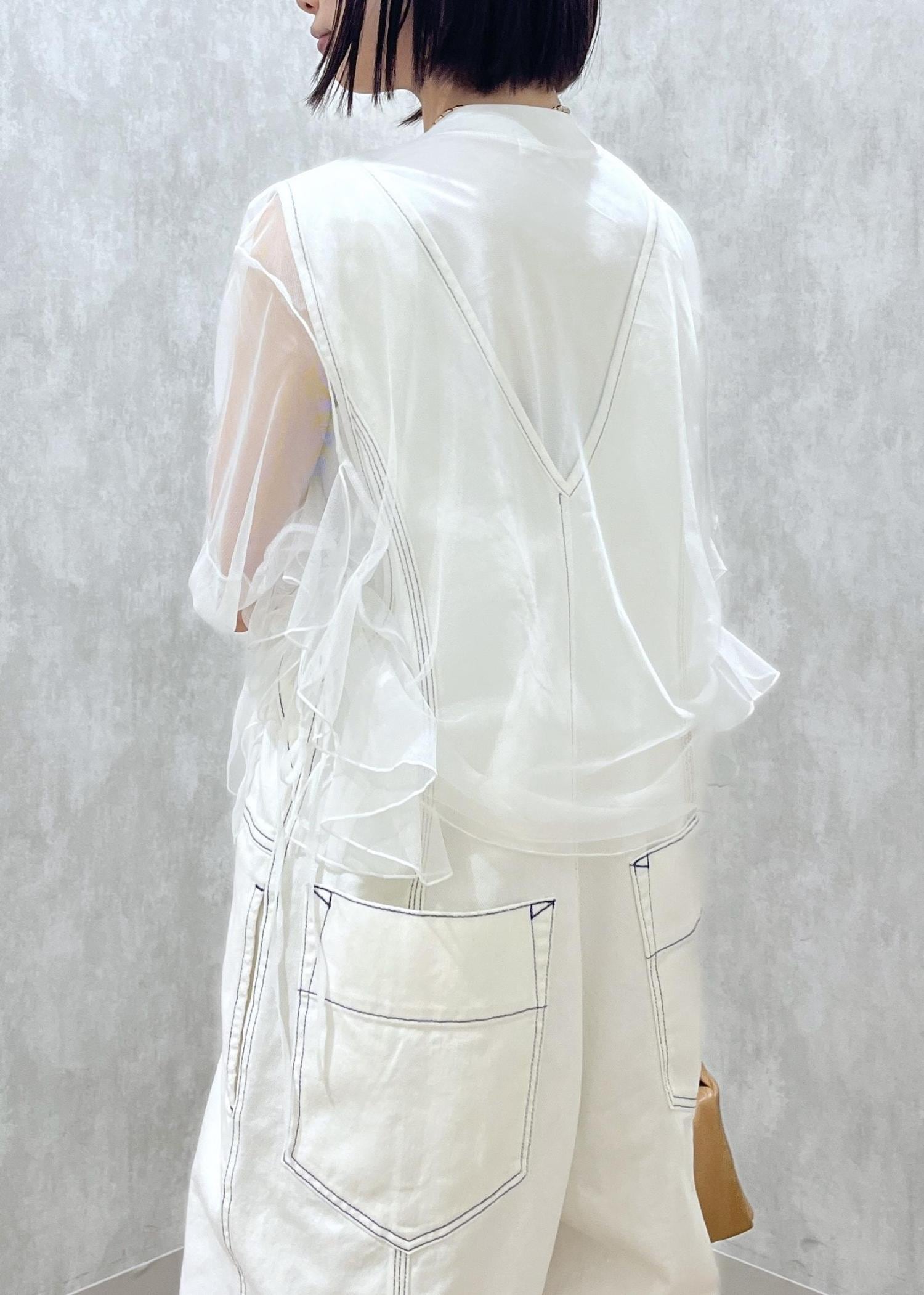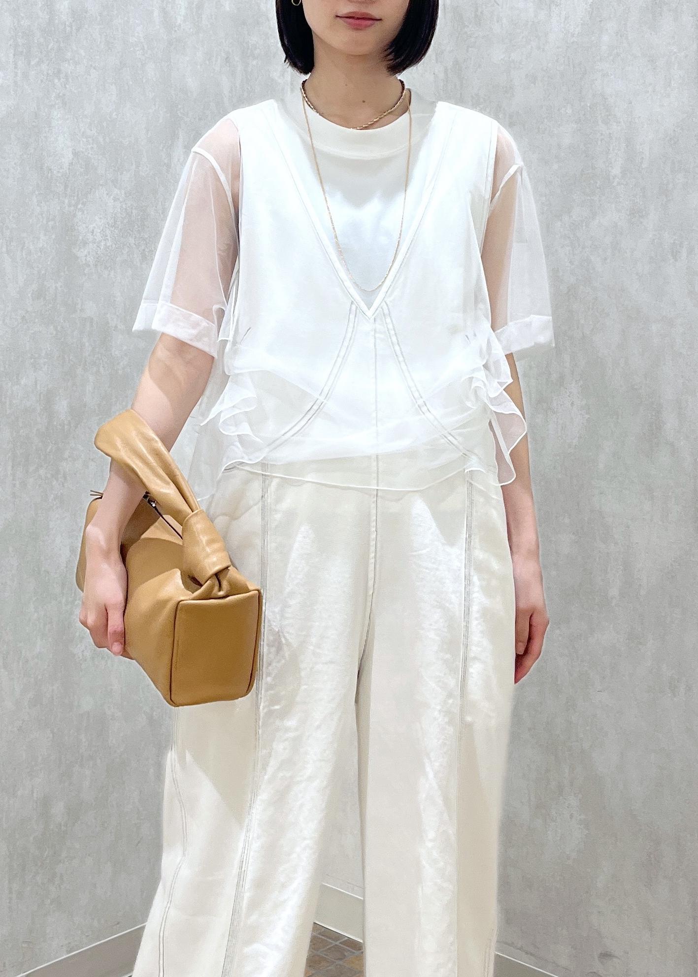 今回は昨年も大人気だった” ギャザーチュールトップス”を使ってコーディネートしてみました。