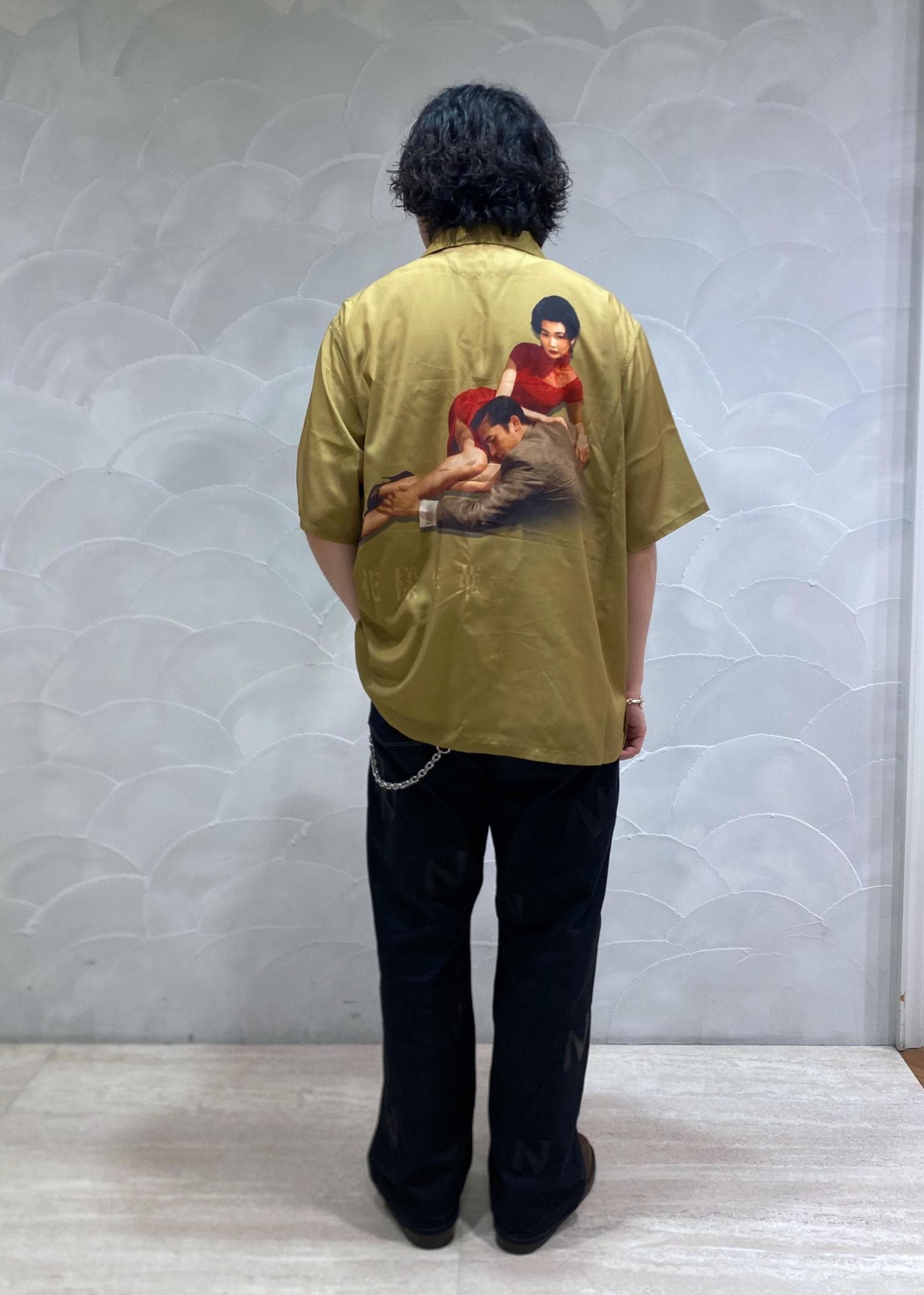 こちらのオープンカラーシャツは、フロントに英題、バックにはマギー・チャンとその膝に横たわるトニー・レオンの描写を落とし込んだデザインで、ベーシックカラーのホワイトとブラック、ニュアンスカラーのイエローの3色で展開しております。
