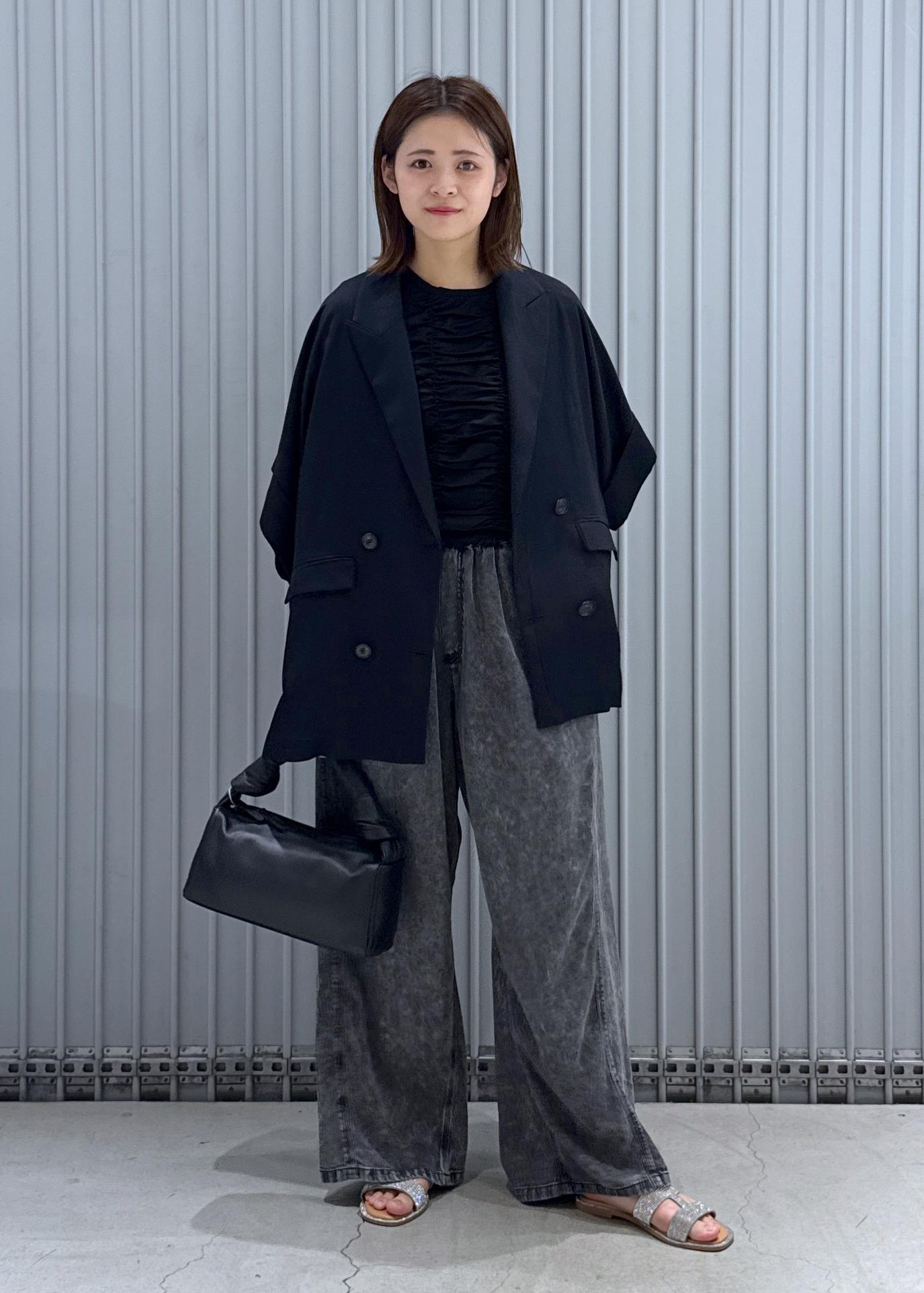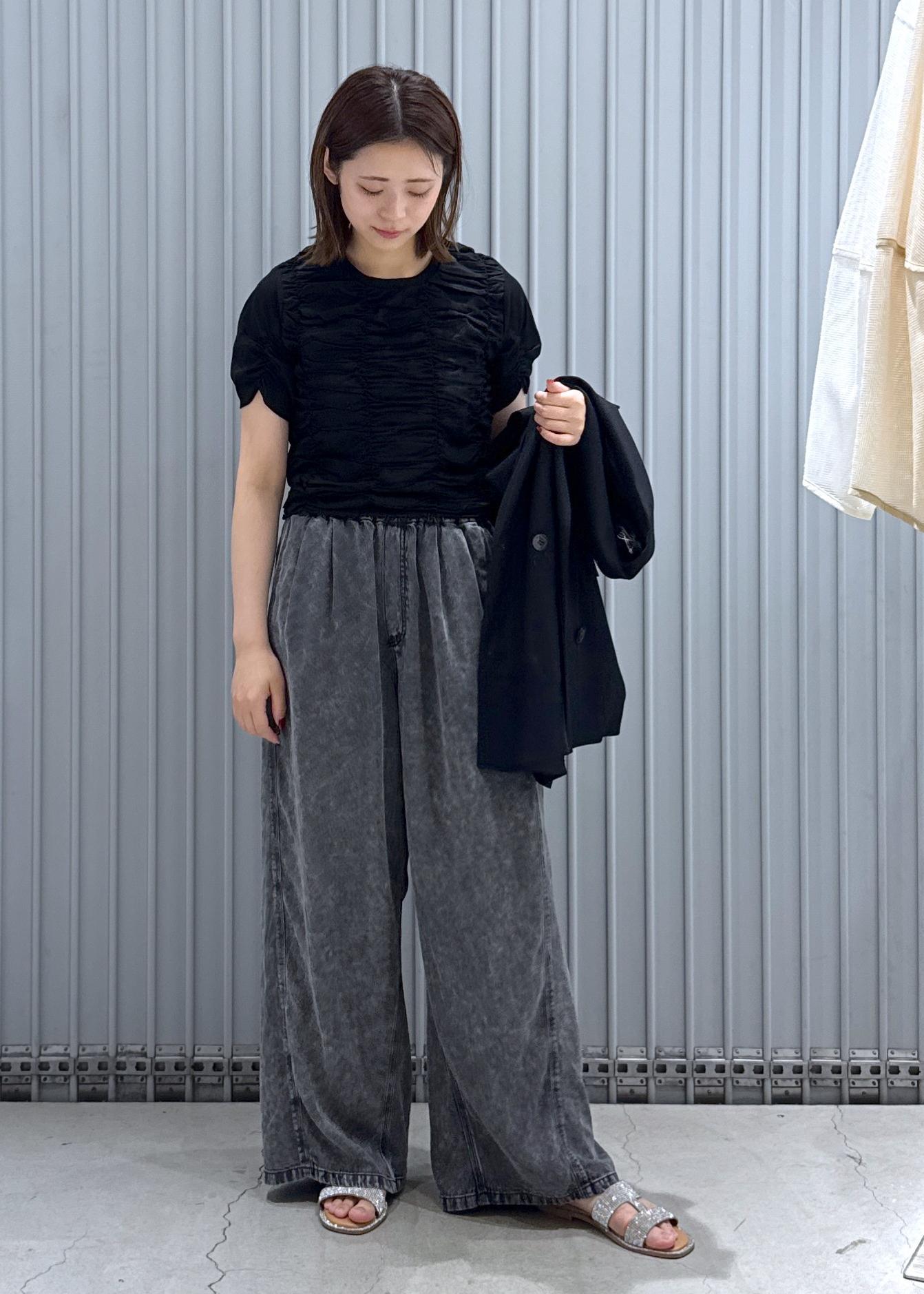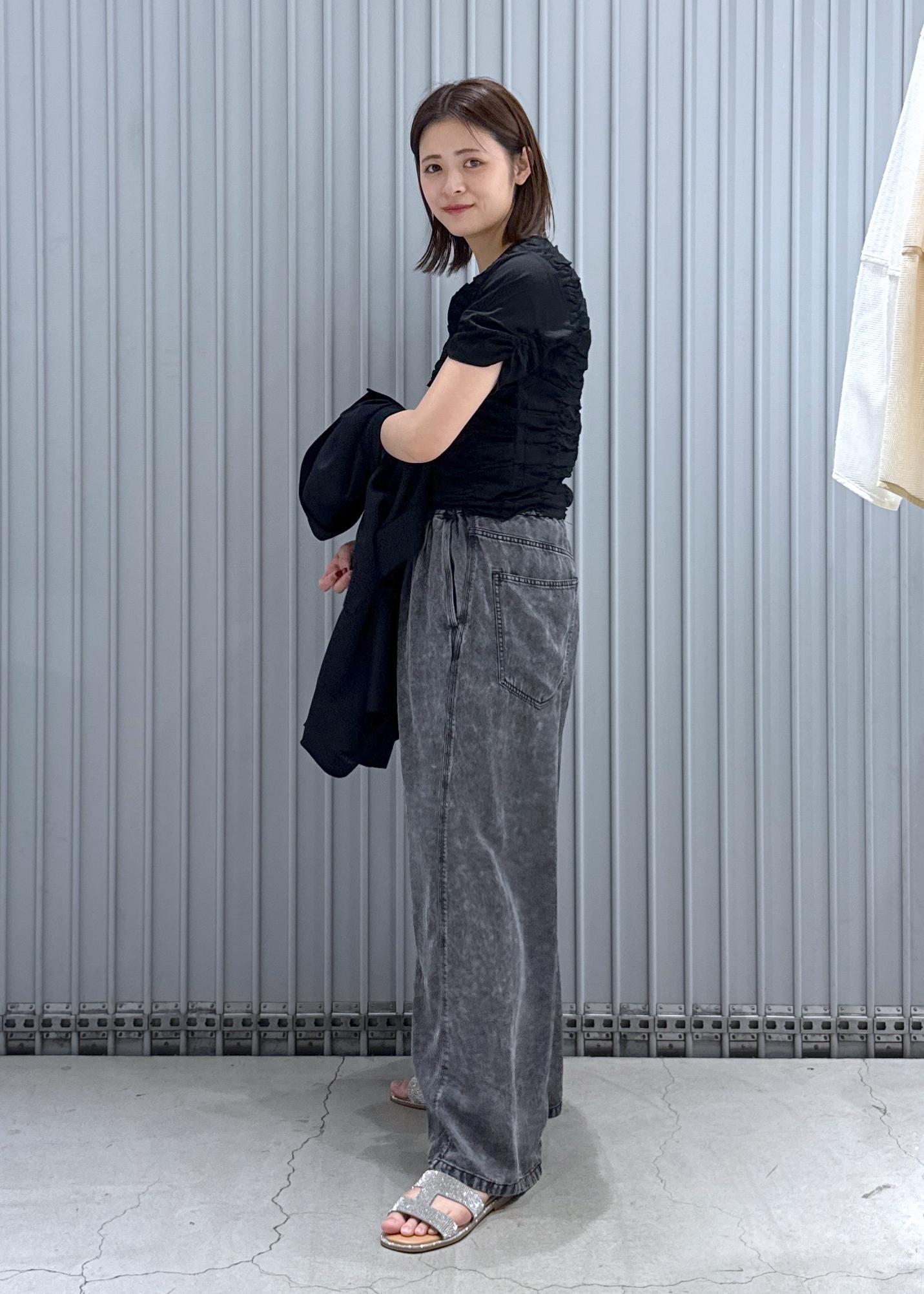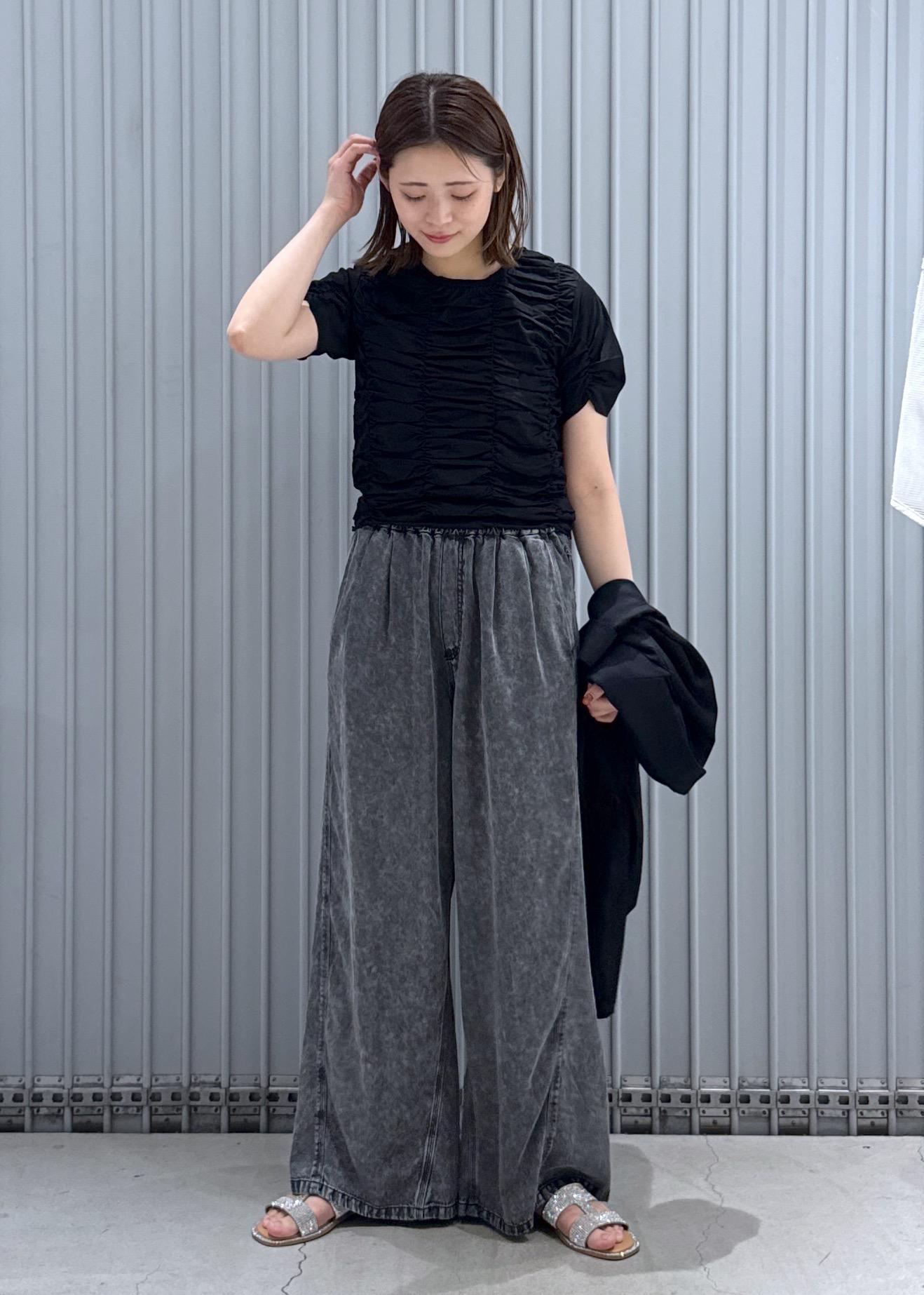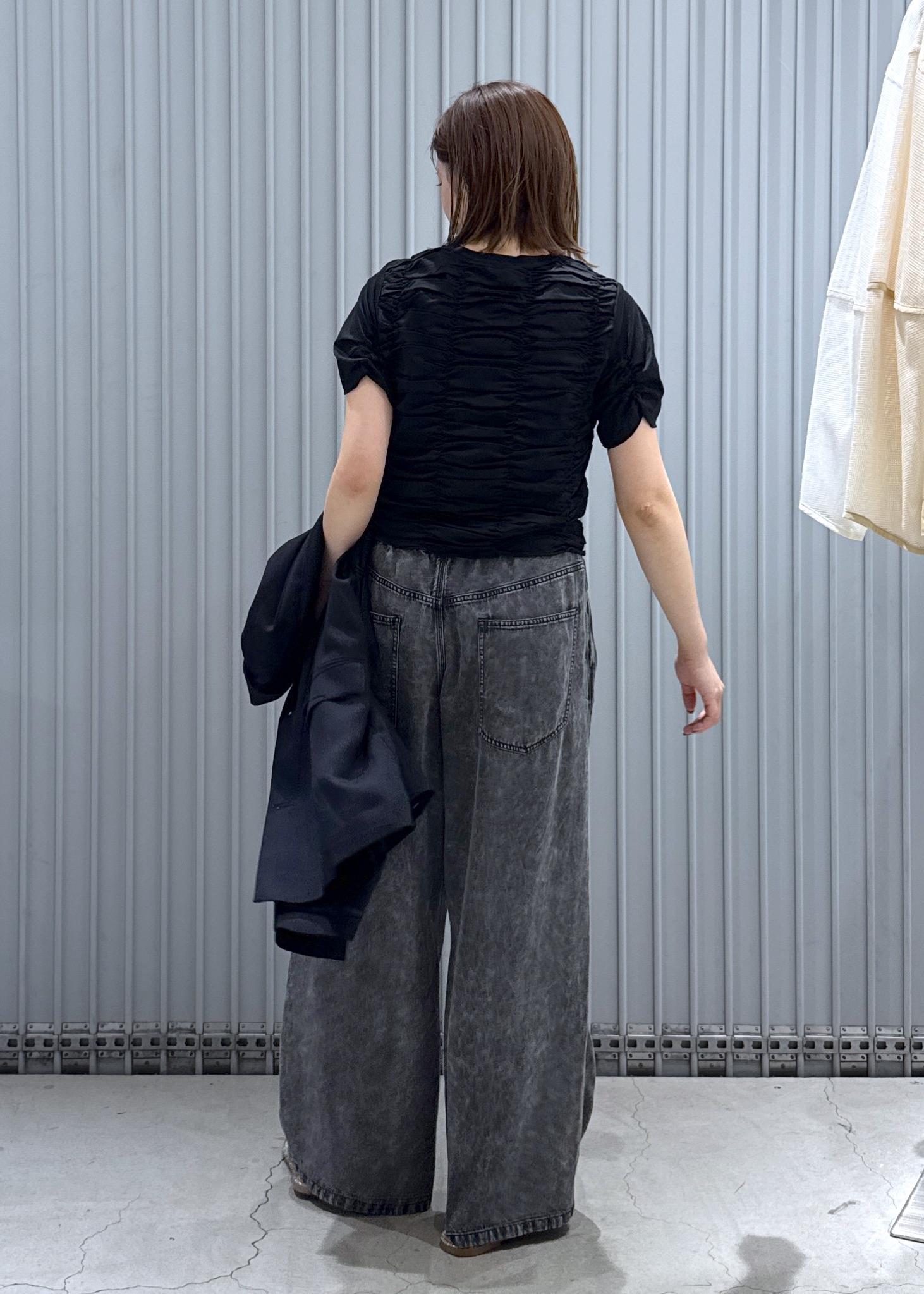 アウトレットADAM ET ROPÉ FEMME【サステナブル】シャーリングTEEブラック / F¥5,280レビューフリーサイズで伸縮性◎でした。