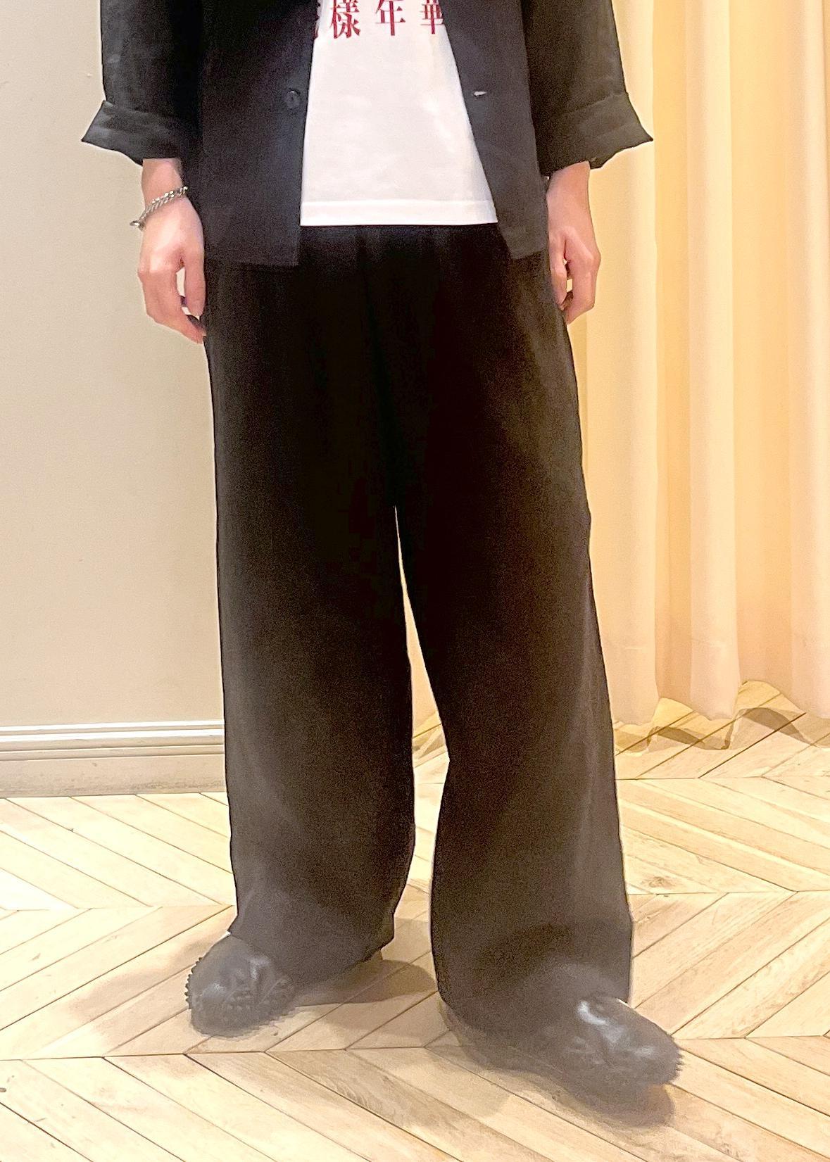 セットアップでシンプルですが、上品に見える質感と、シルエットなので、花様年華のプリントTもものすごく映えて、かっこいいです!!