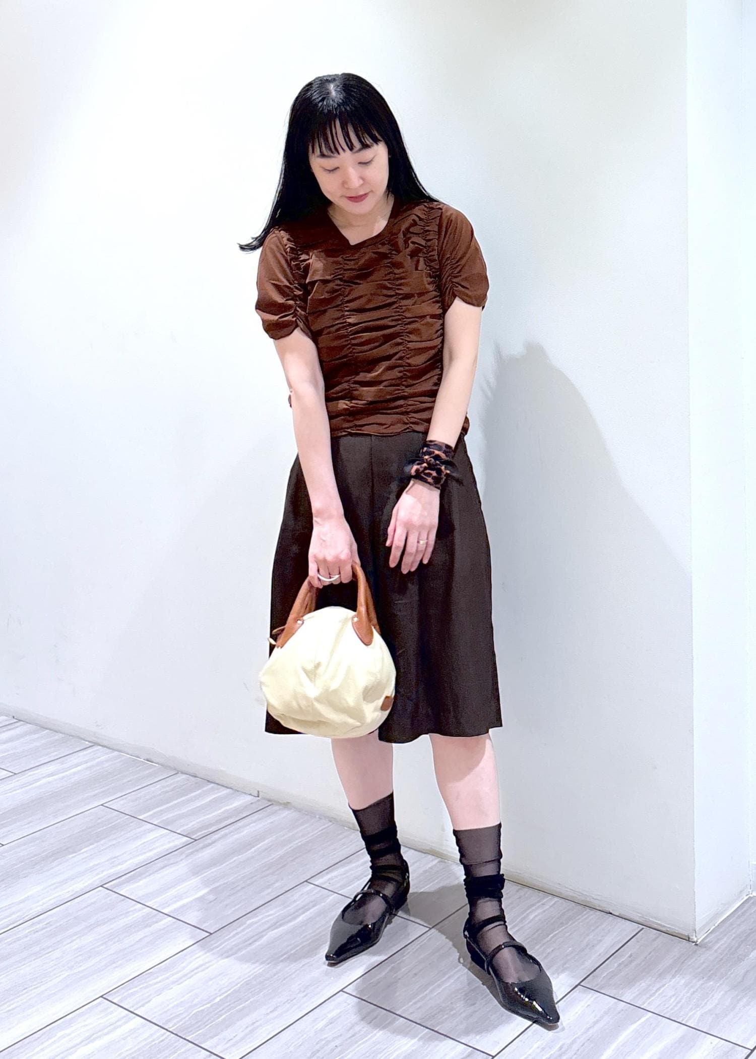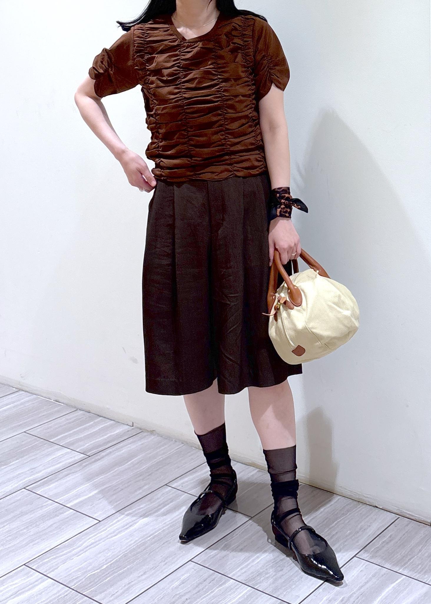 アウトレットADAM ET ROPÉ FEMME【サステナブル】シャーリングTEEダークブラウン / F¥5,280レビューシャーリングのデザインで体のラインを拾わず、コンパクトに着て頂けます!