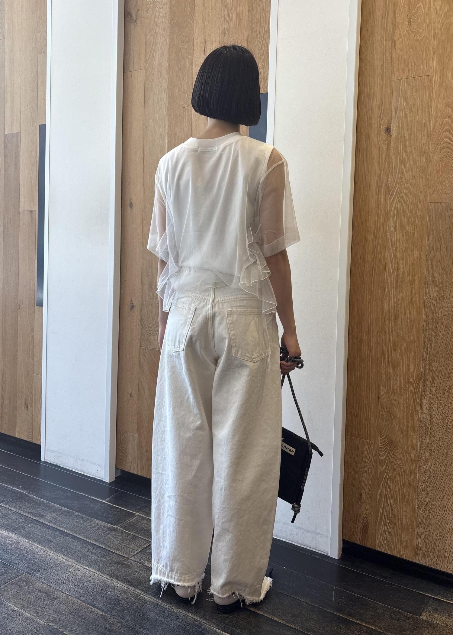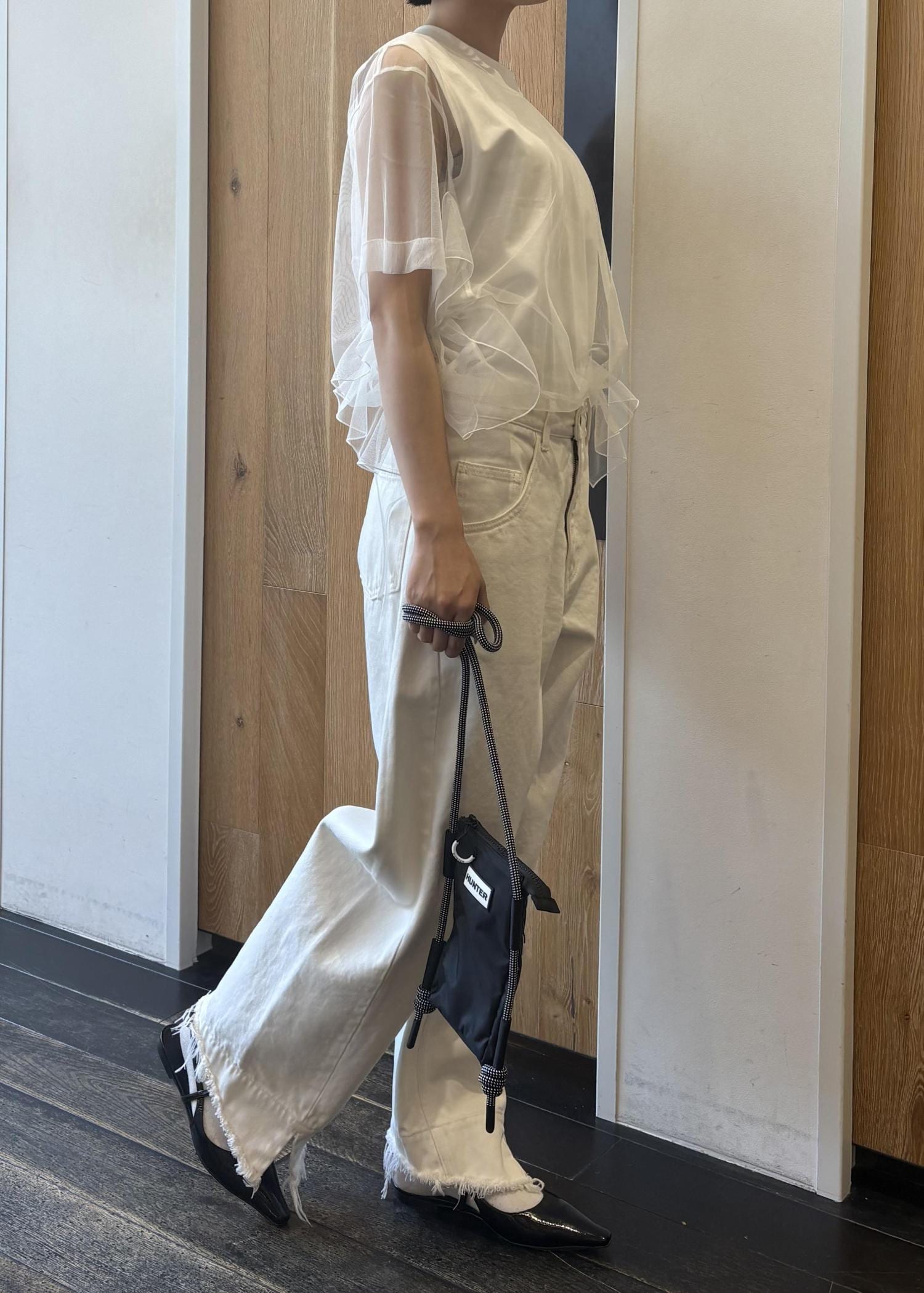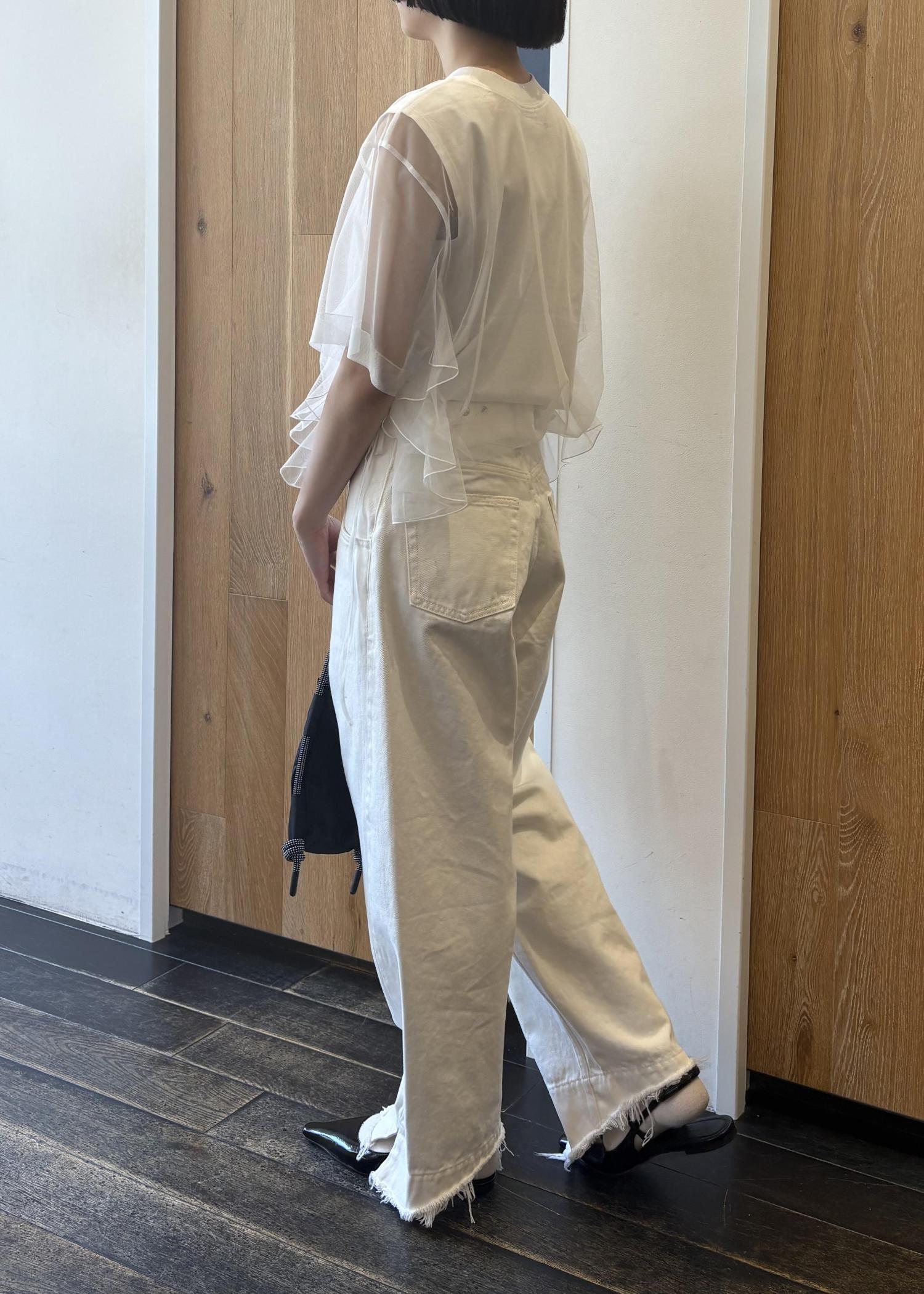 ADAM ET ROPÉ FEMME【サステナブル】・【新色追加】ルーズフィットアジャストデニムホワイト / 36¥17,930レビュー163㎝で36を着用して厚みがないシューズで隠れるくらいの丈感です。ベルトでも調節が可能なのですが閉めずに腰履きで履きました!