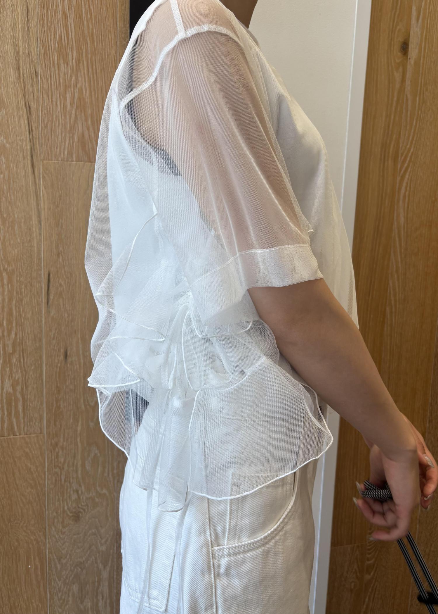 ADAM ET ROPÉ FEMME【サステナブル】・【定番人気】ギャザーチュールトップスホワイト / F¥14,300レビューノースリーブが苦手な方でもチュールがあるので安心して着れます!