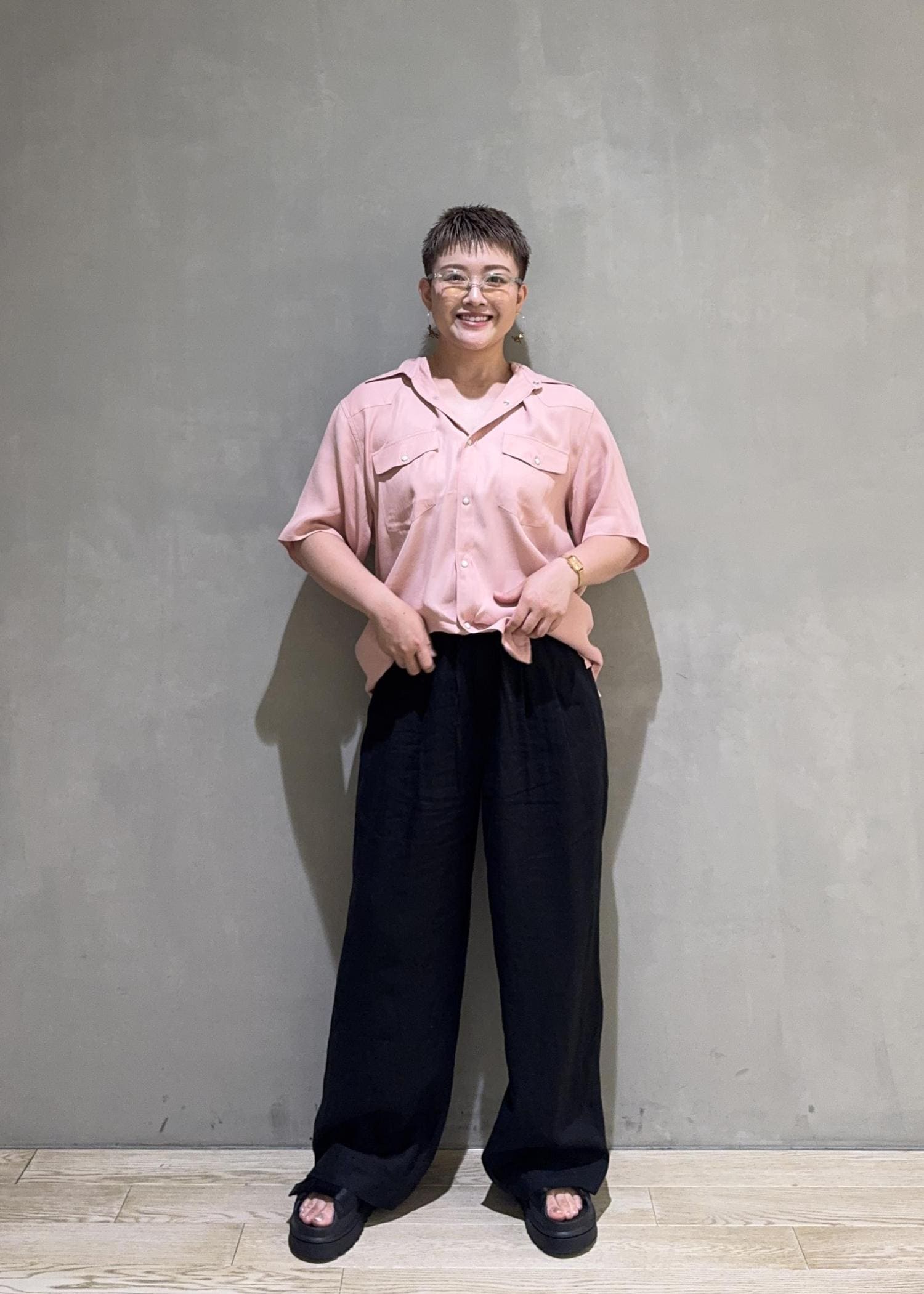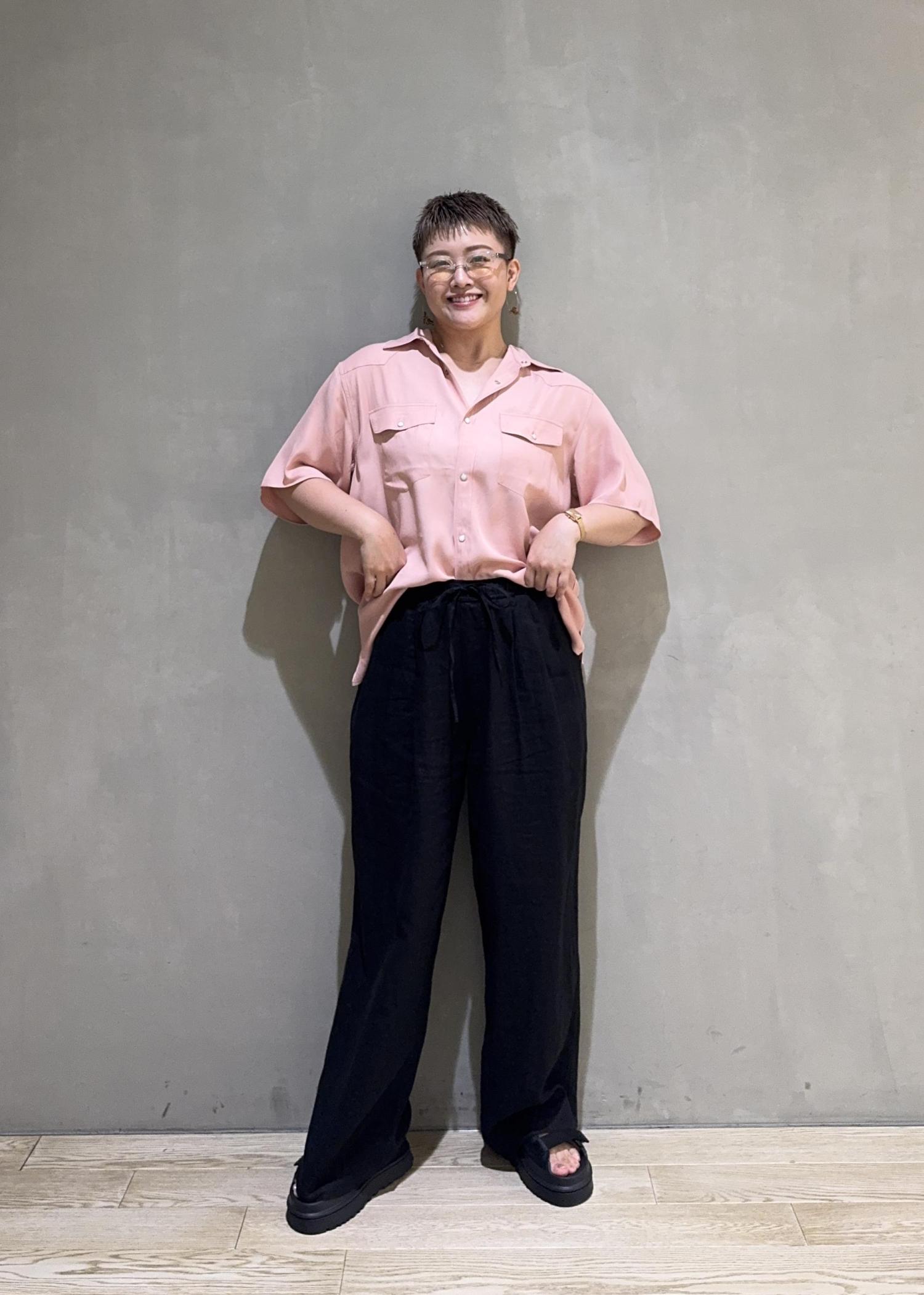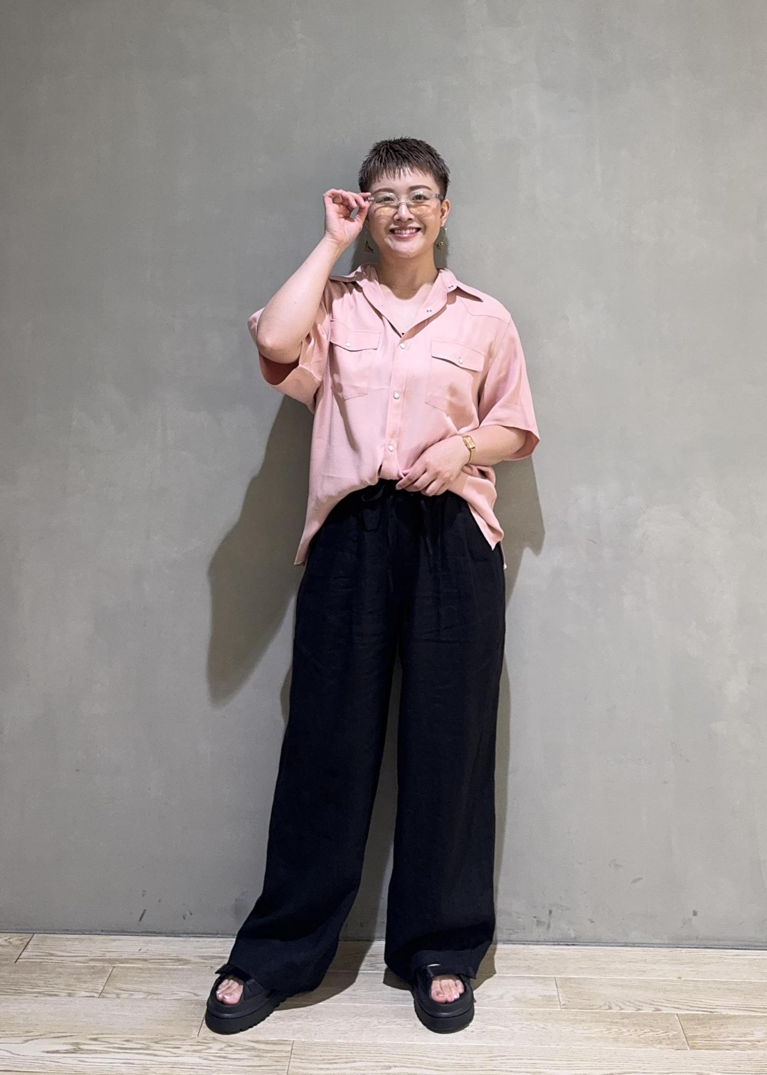 落ち着いたピンクカラーシャツは性別問わず大人も着やすいです♪