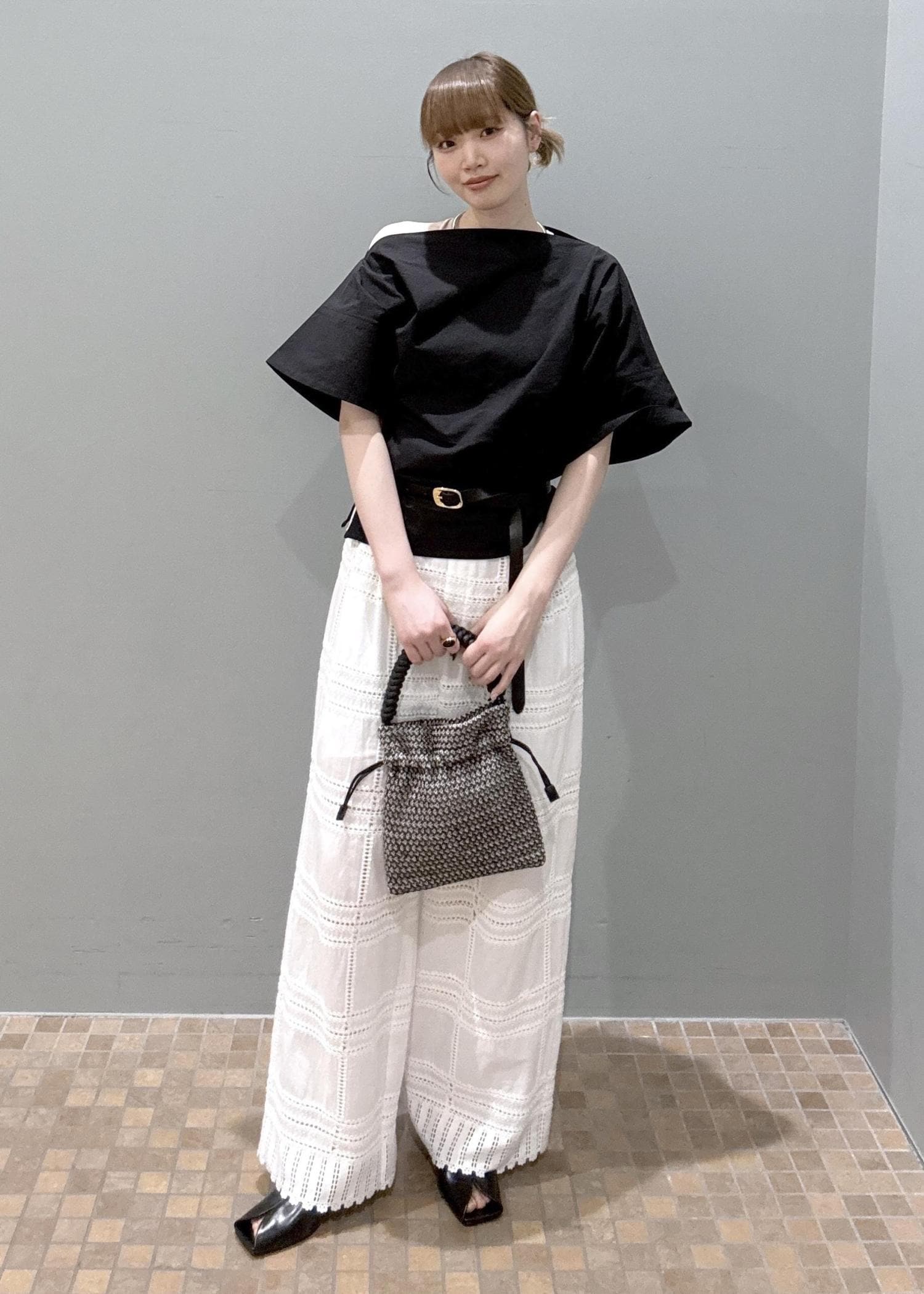 ウエストマークのベルトがついている為スッキリ見えしてくれます!