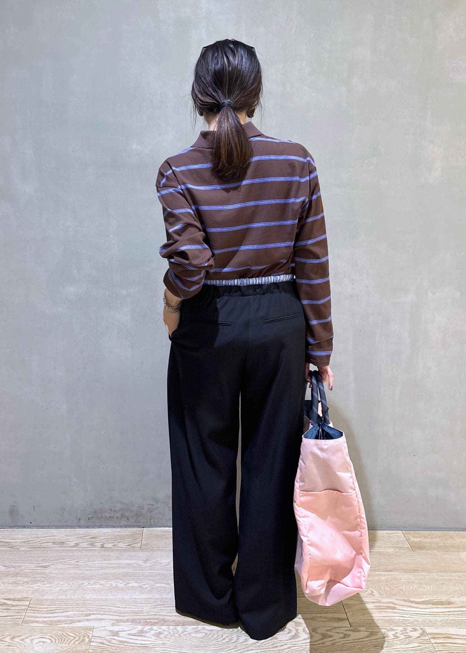 スラックスも程よくキレイめな雰囲気でラフなトップスと合わせても、きちんと感がでるのでおすすめですよ!