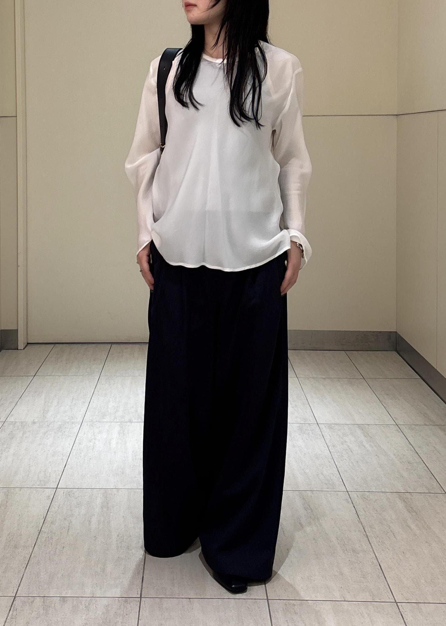 今回は首元がスクエアのTシャツを合わせてキレイめになり過ぎないようにしてみました◎