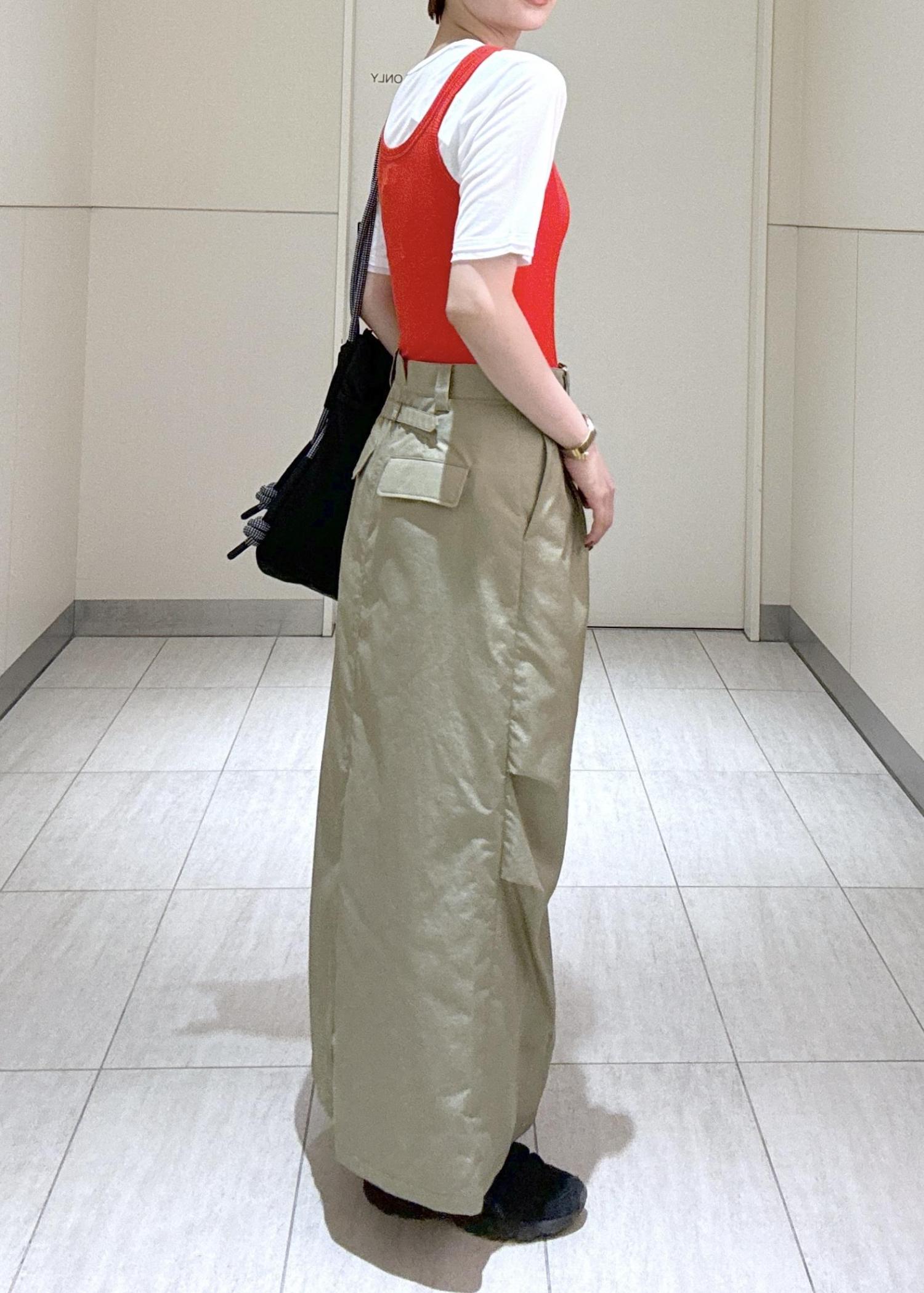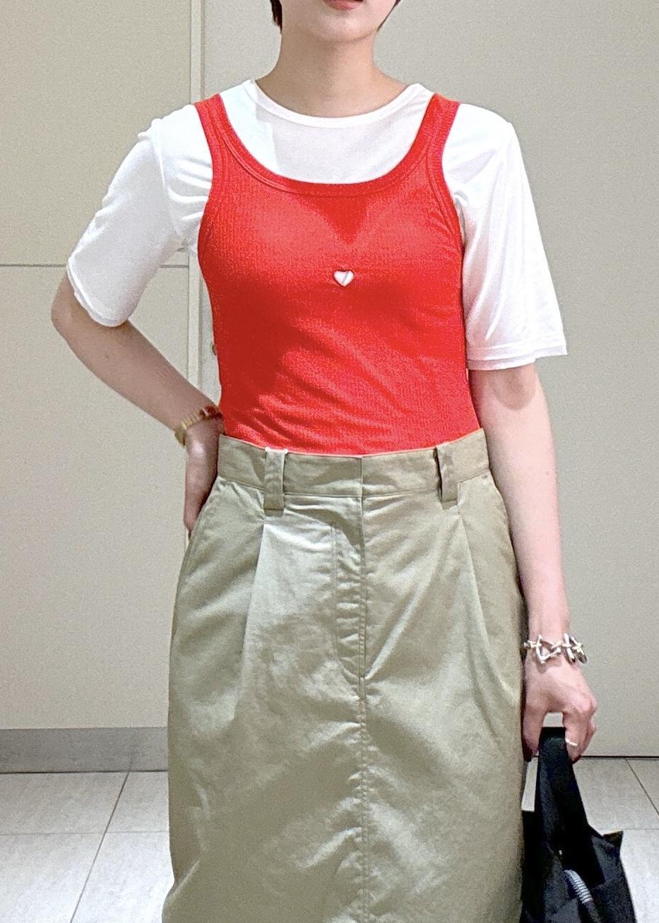 今回はレッド×ベージュカラーでカジュアルなコーディネートを組んでみました。
