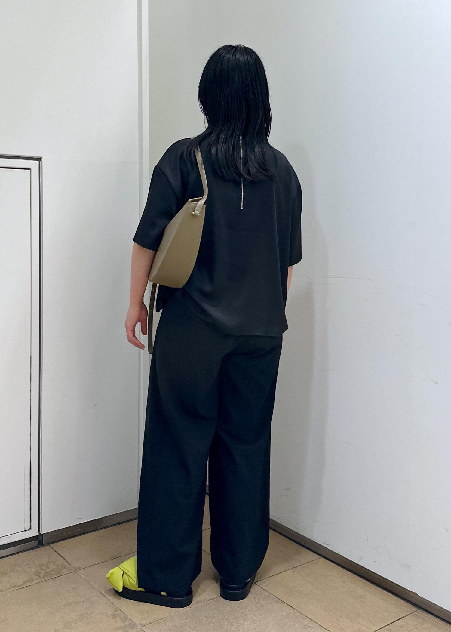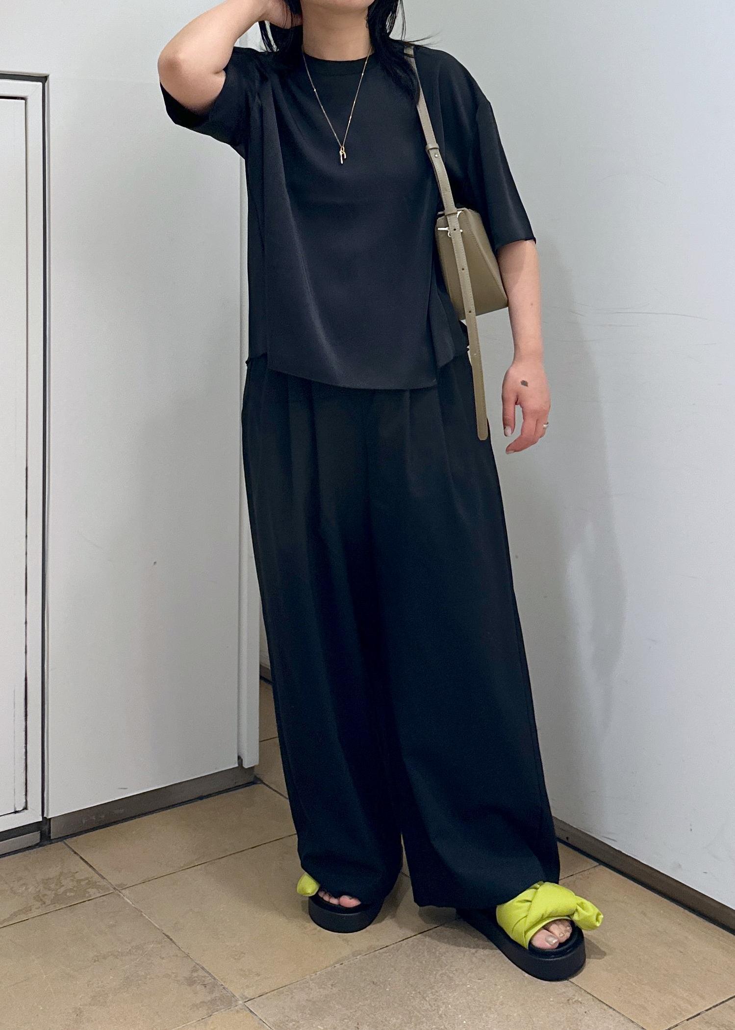 アウトレットADAM ET ROPÉ FEMME【サステナブル】サテンTブラウスブラック / F¥6,380レビューゆったりとしたシルエット。サテン生地でとろみがありますが、体のラインは響きにくいです。