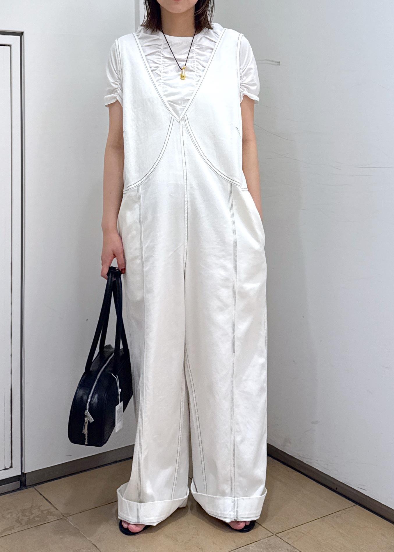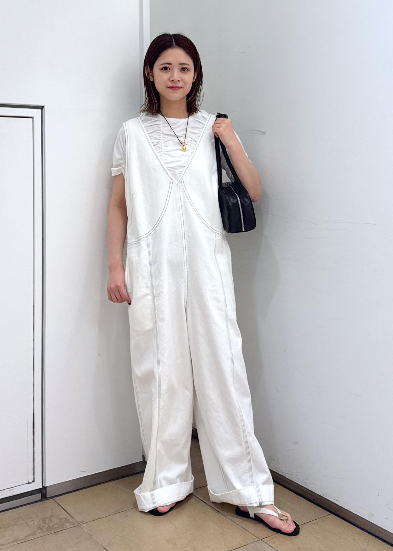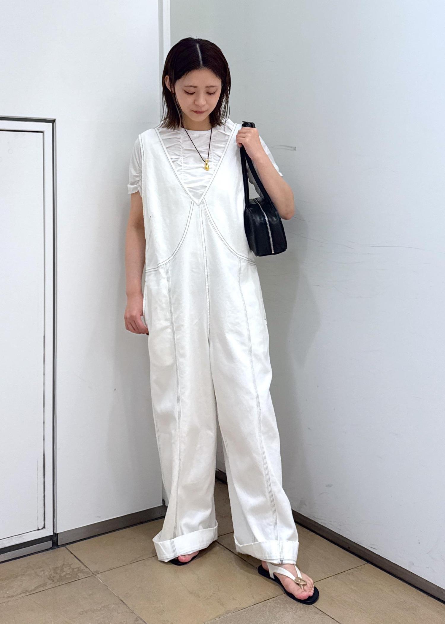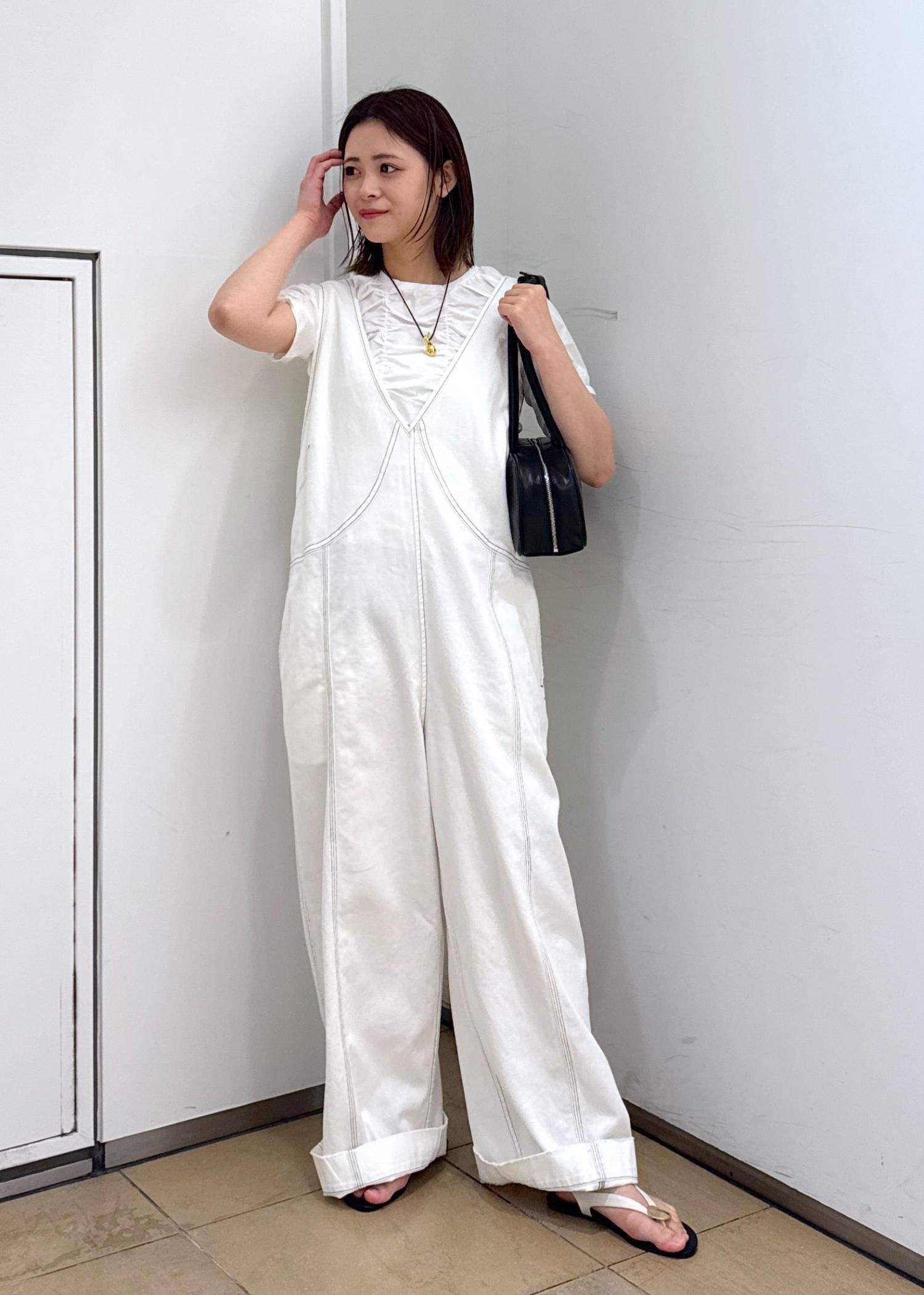 シャーリングTEEでオールホワイトコーデです。