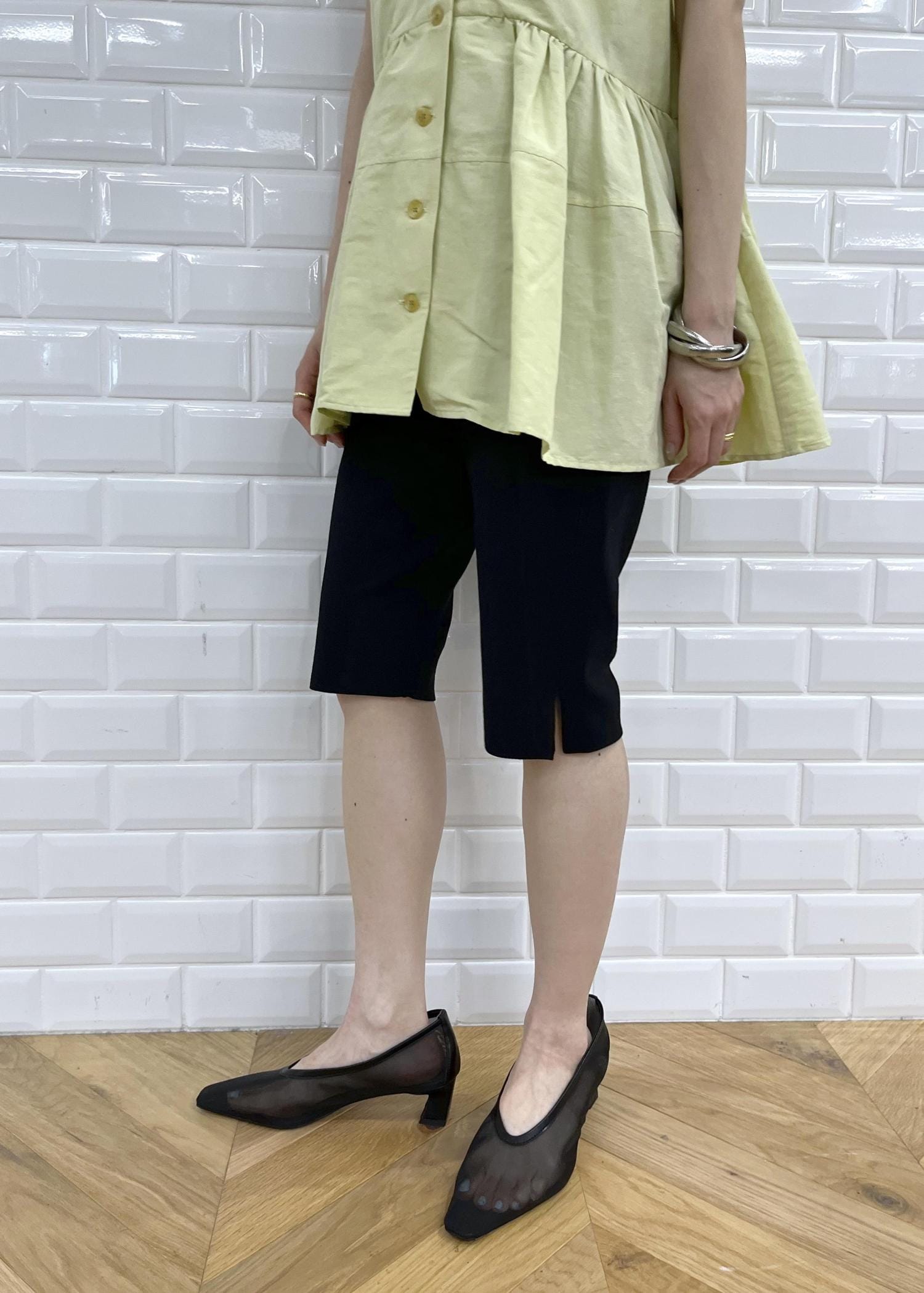 ADAM ET ROPÉ FEMME【接触冷感】ニットカプリパンツブラック / F¥18,150レビュー伸縮性があり、サラッと着心地抜群です。膝がちょうど隠れるくらいの着丈で、太ももやヒップはややゆとりがありました。カプリ丈で一気にモードな雰囲気に◎