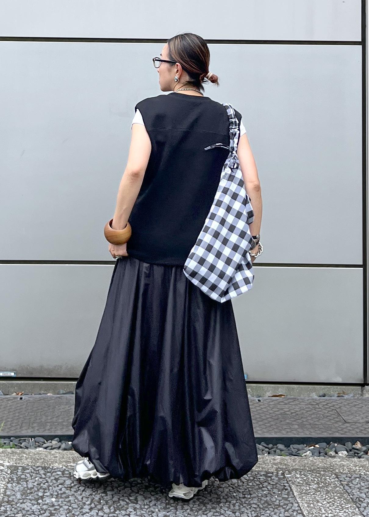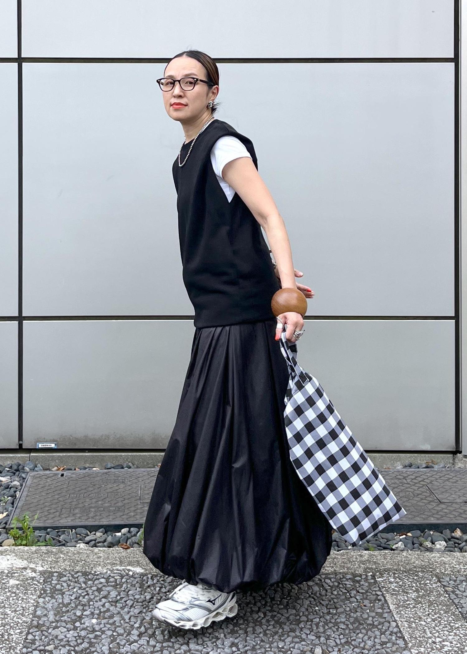 薄手のスウェット地にタフタ素材のバルーンワンピースがドッキングしたデザインで着心地はとても軽やか♫