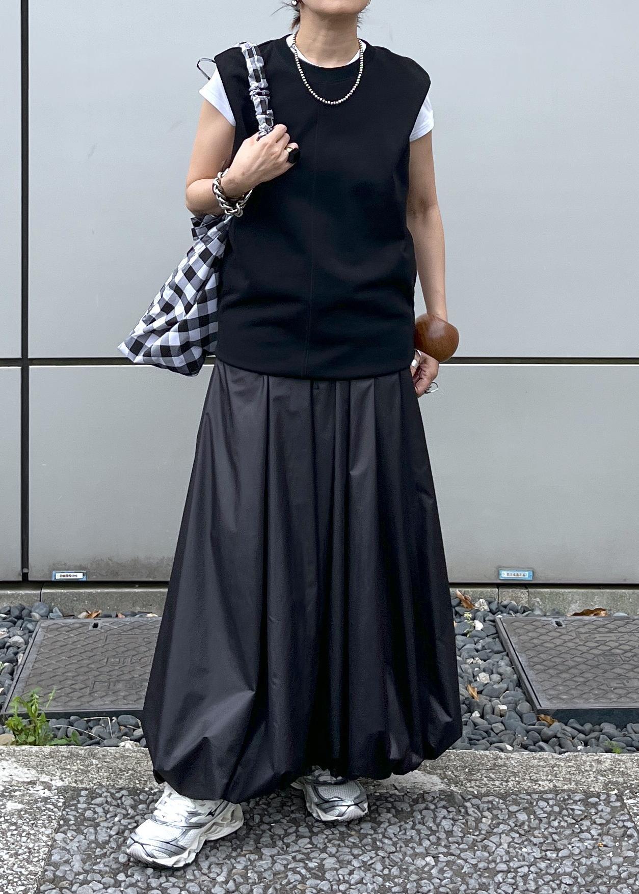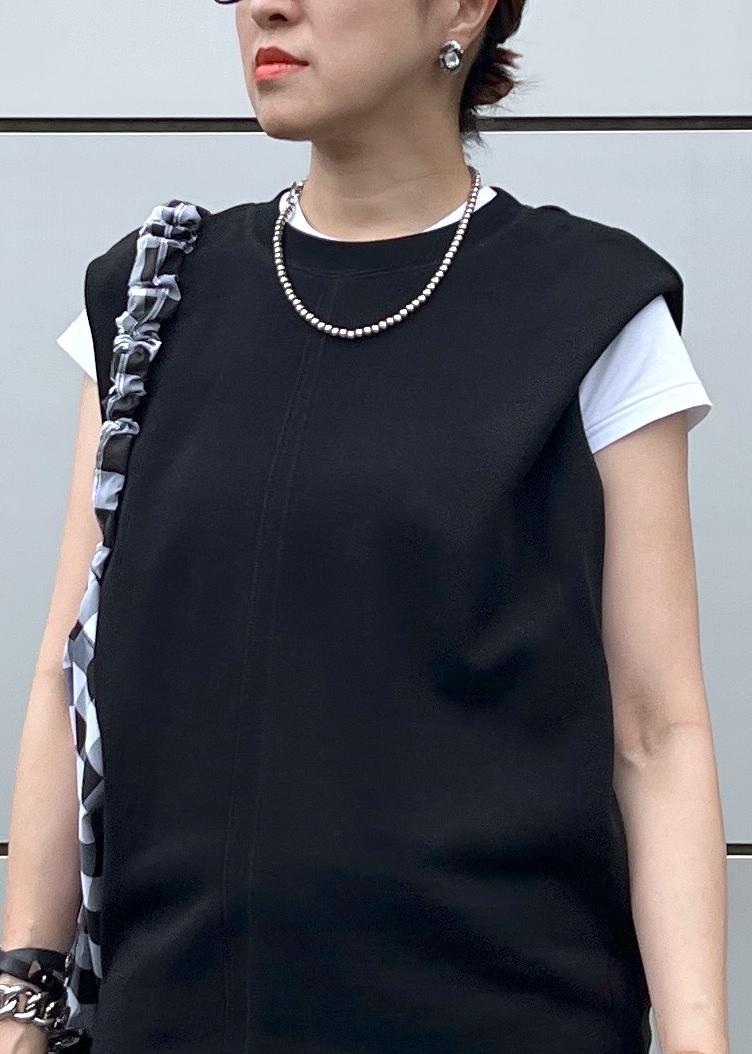 ノースリーブは二の腕が気になる方はTシャツを重ねても◎