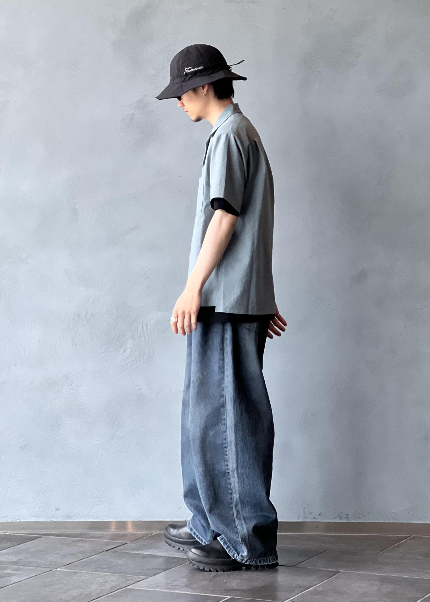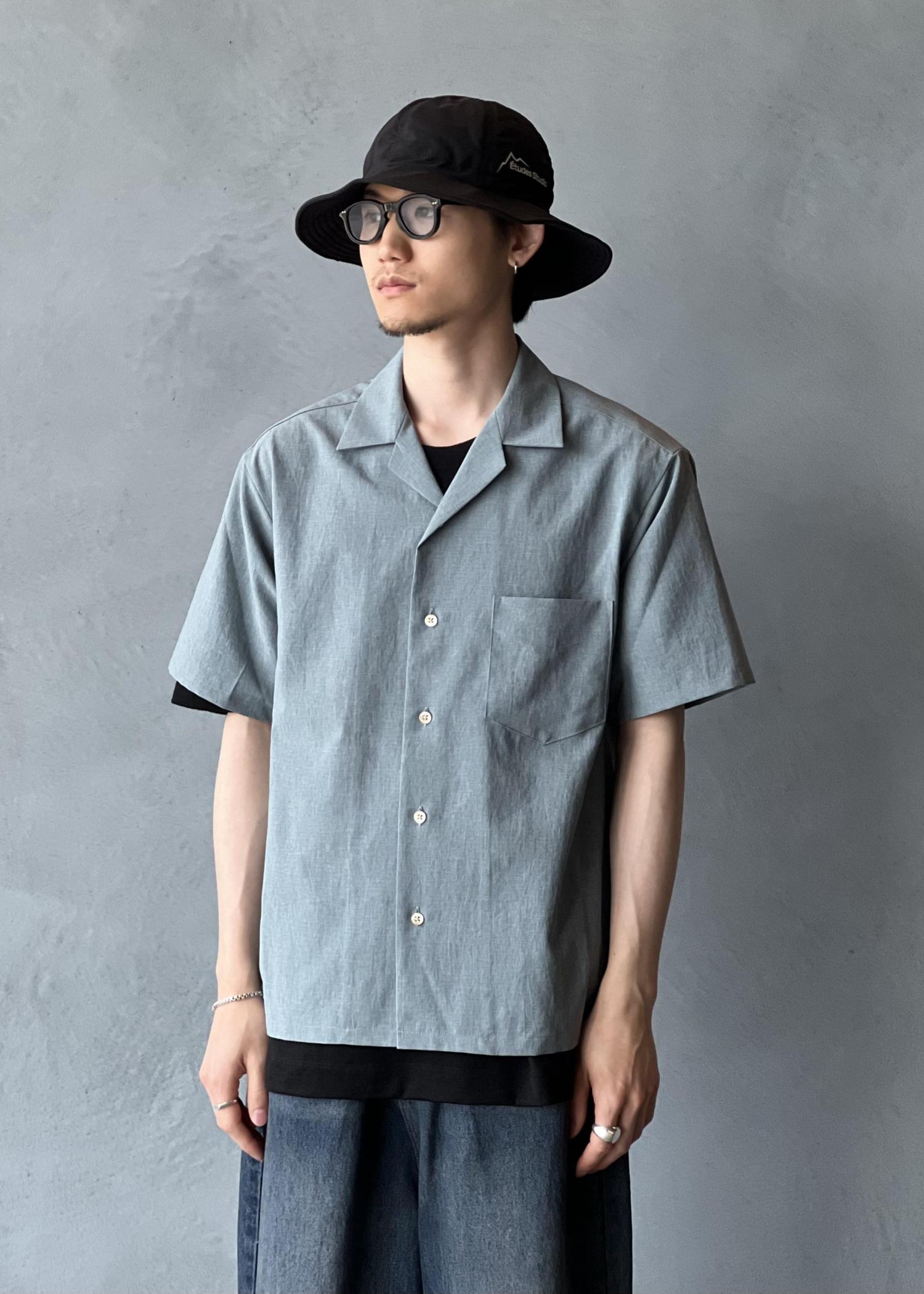 リランチェセットアップのオープンカラーシャツを単品使い。