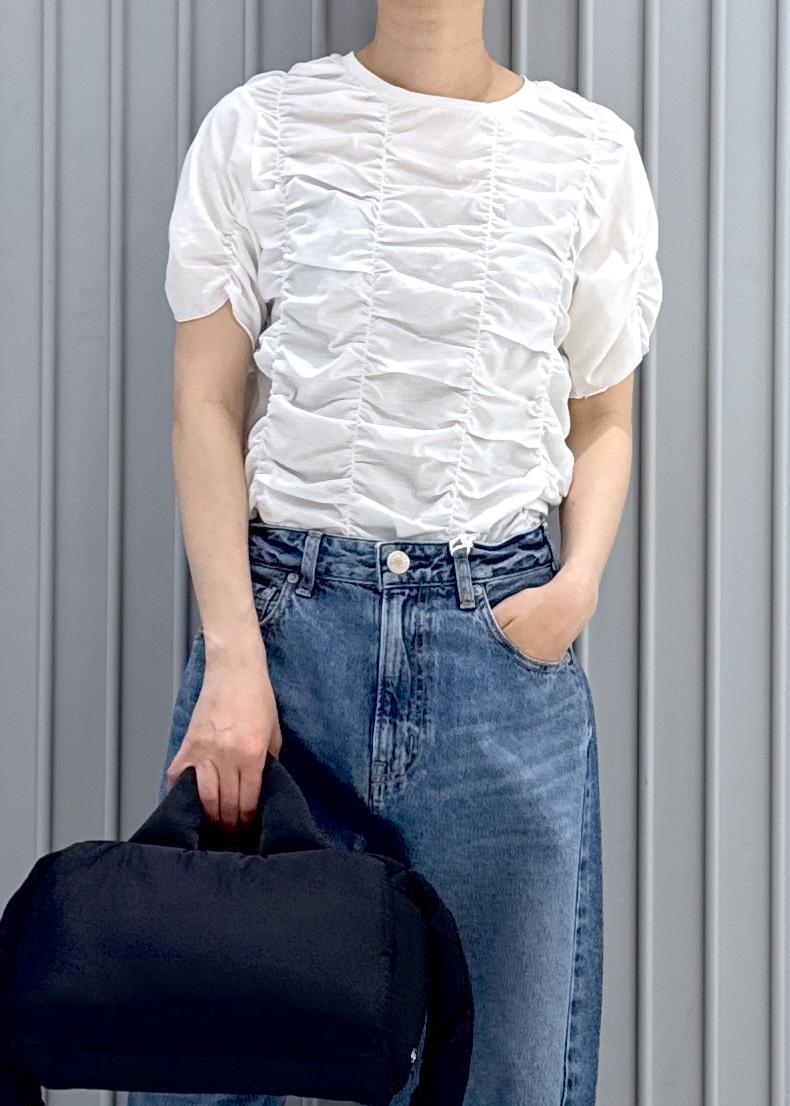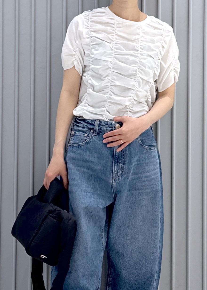 アウトレットADAM ET ROPÉ FEMME【サステナブル】シャーリングTEEホワイト / F¥5,280レビュー伸縮性ある素材で楽に着ていただけます◎