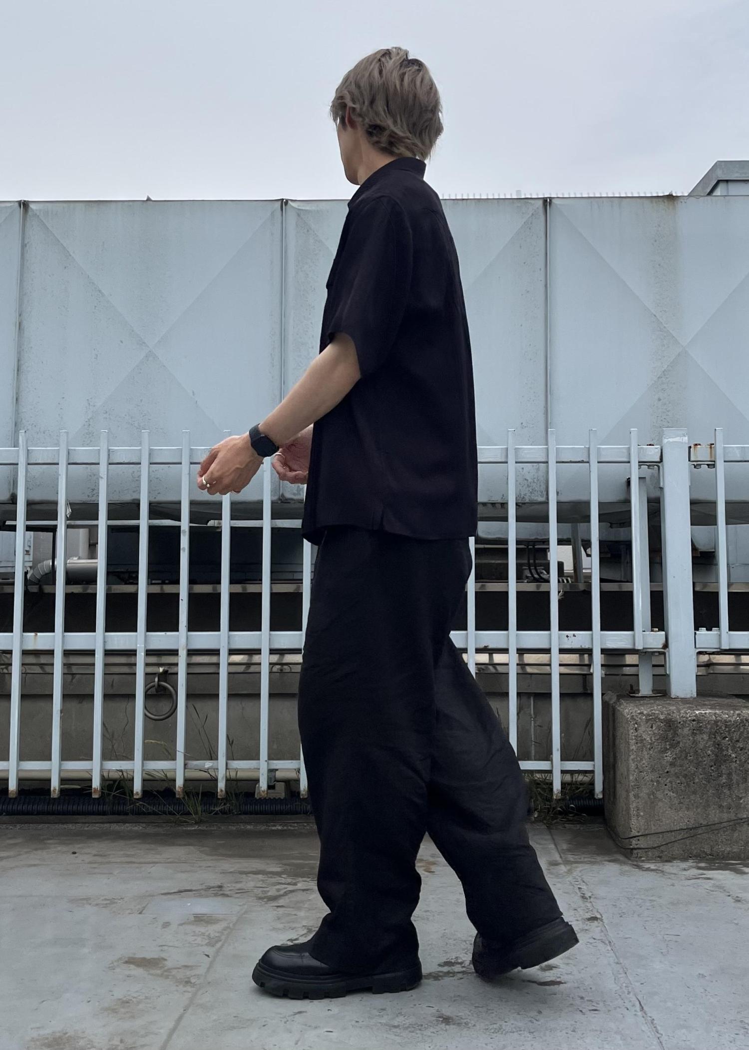 レーヨン素材なのでしなやか着心地とオーバーサイズでゆったりと羽織れます。182cm痩せ型体型でMサイズはほどよい丈感です。 -
