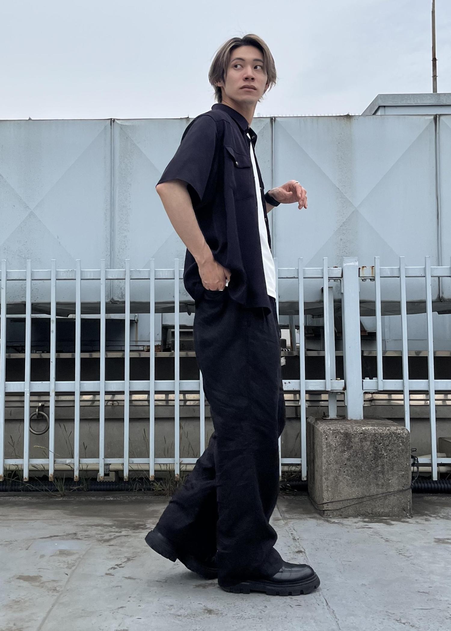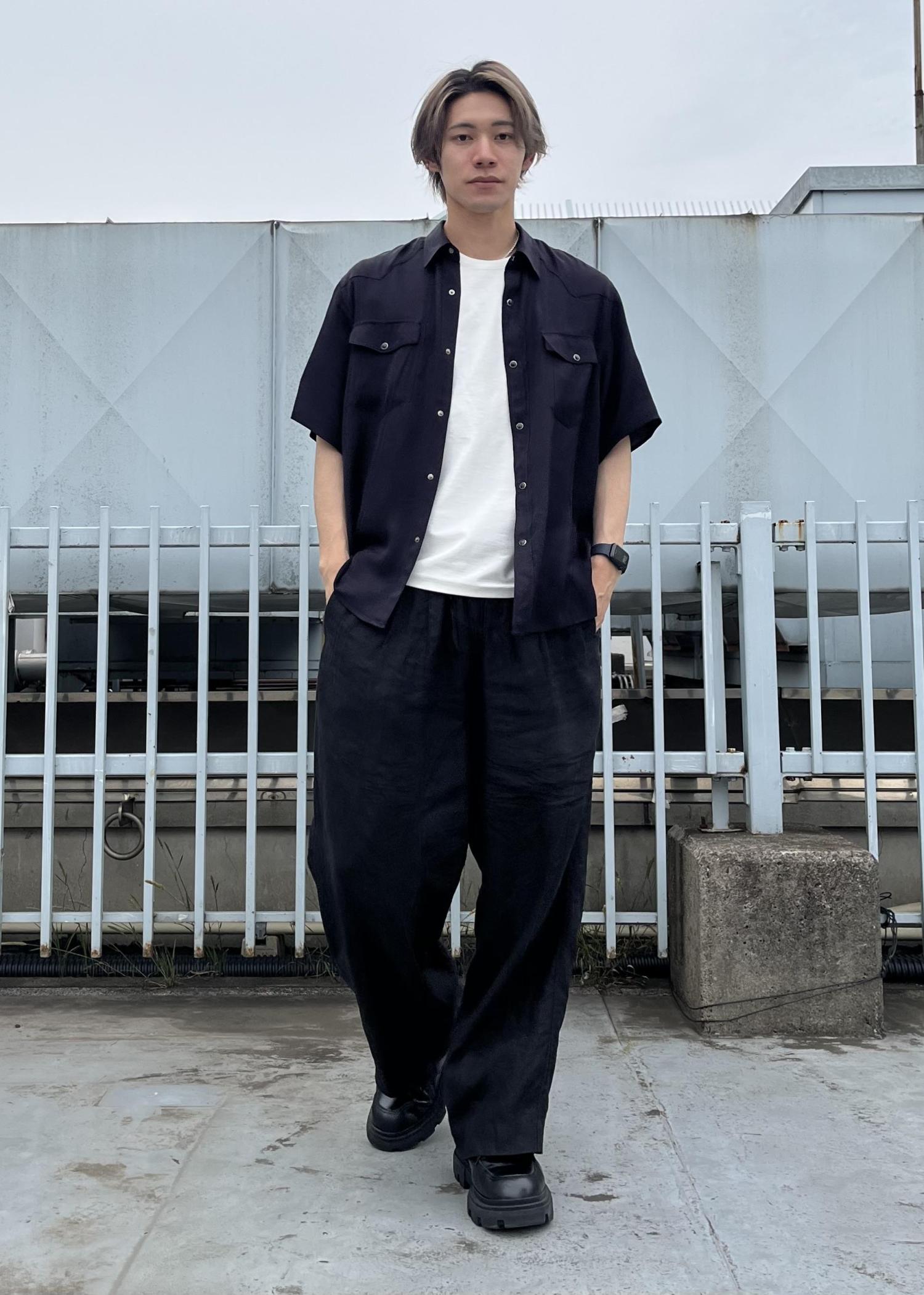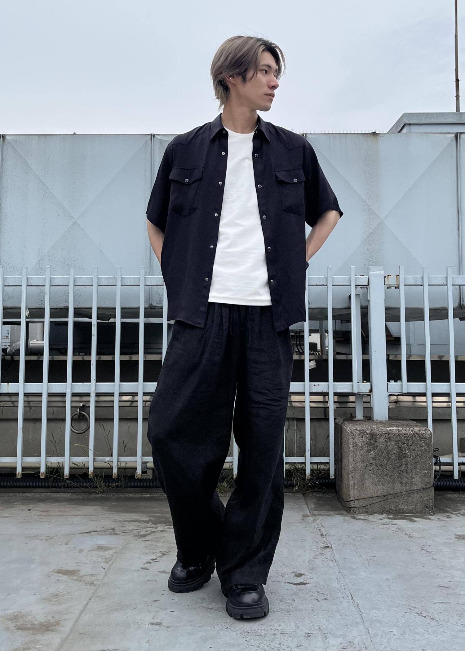 ダークトーンでまとめつつ、Tシャツで明るさをプラスしてシンプルで大人っぽいスタイリングにしてみました。