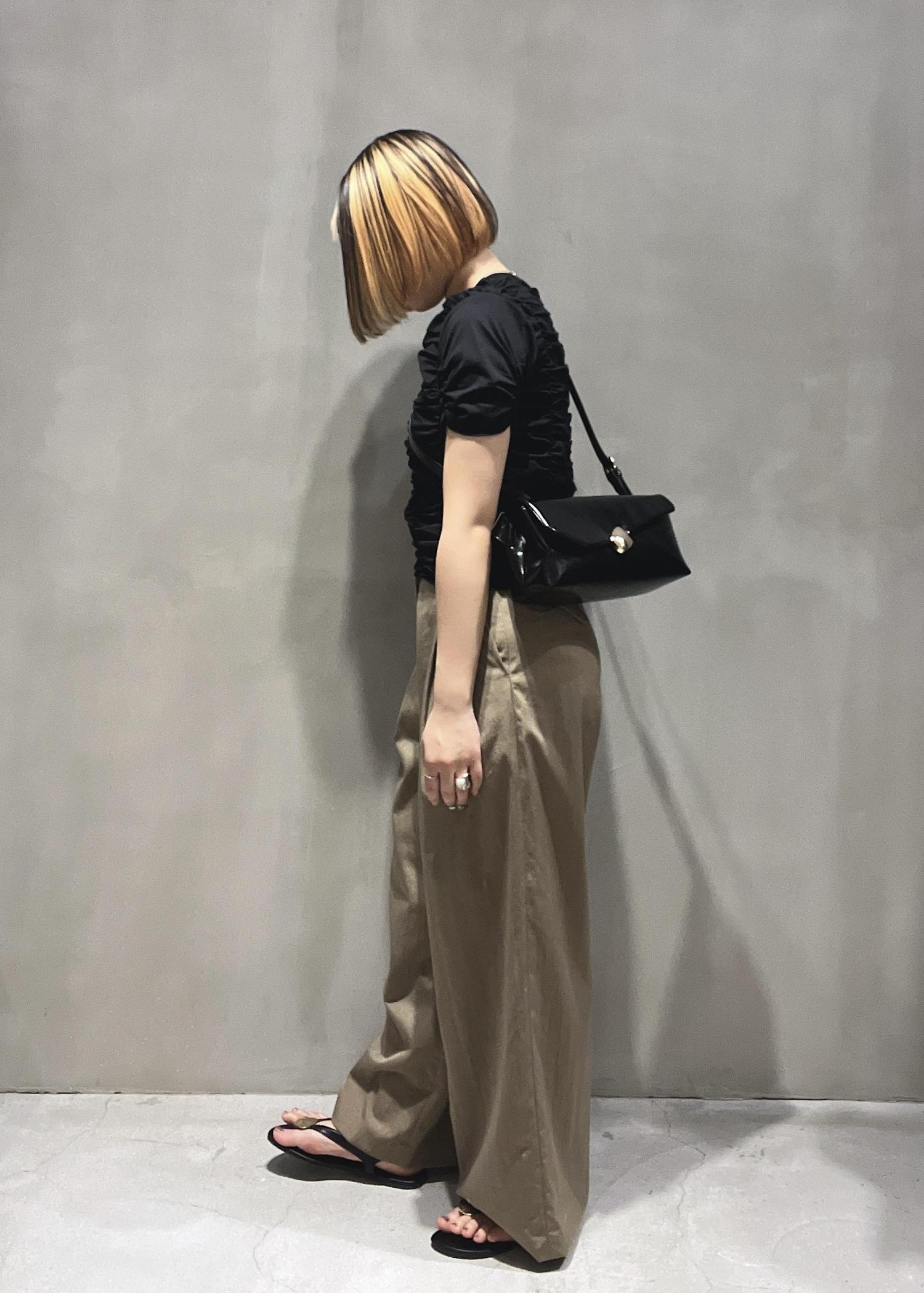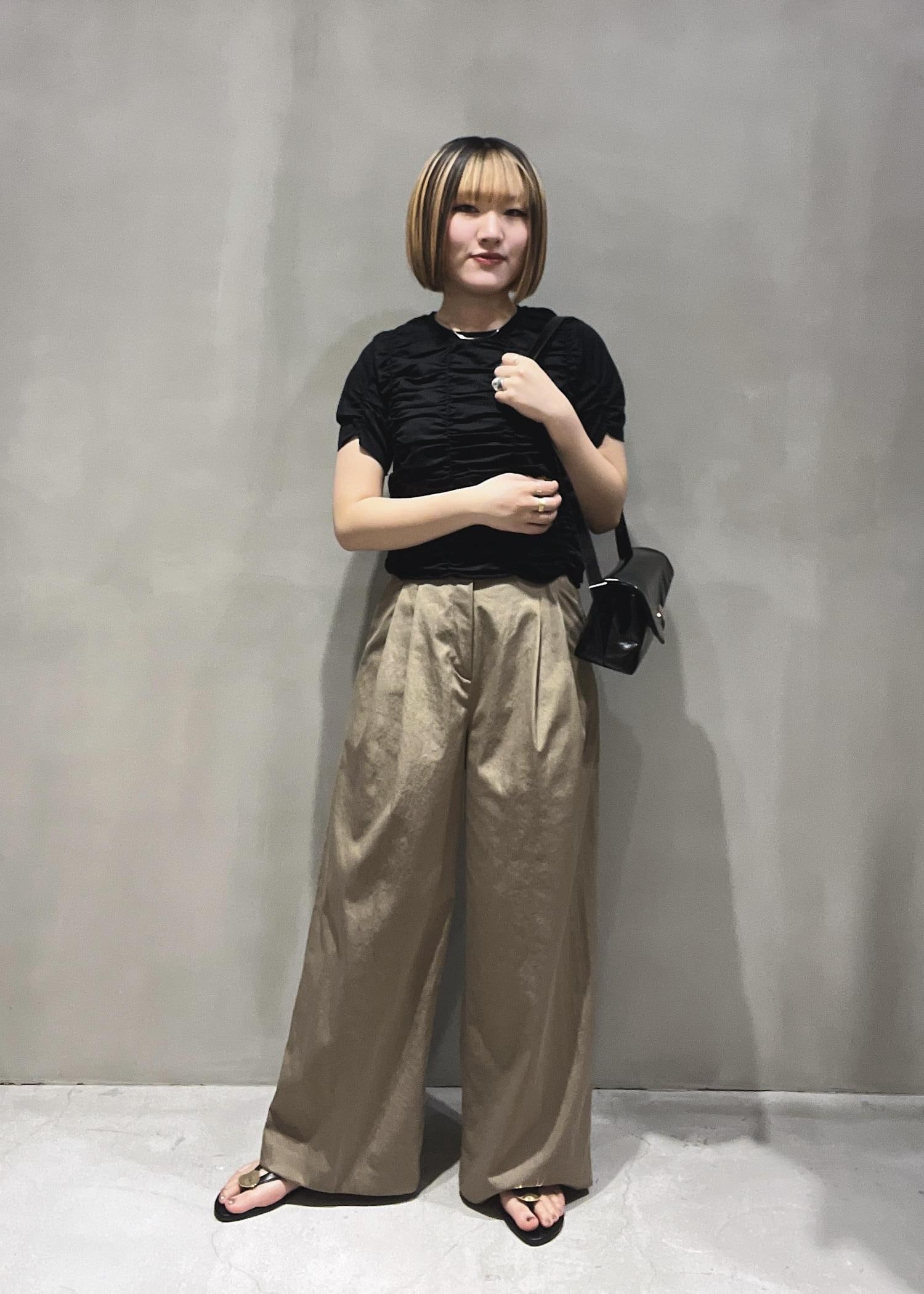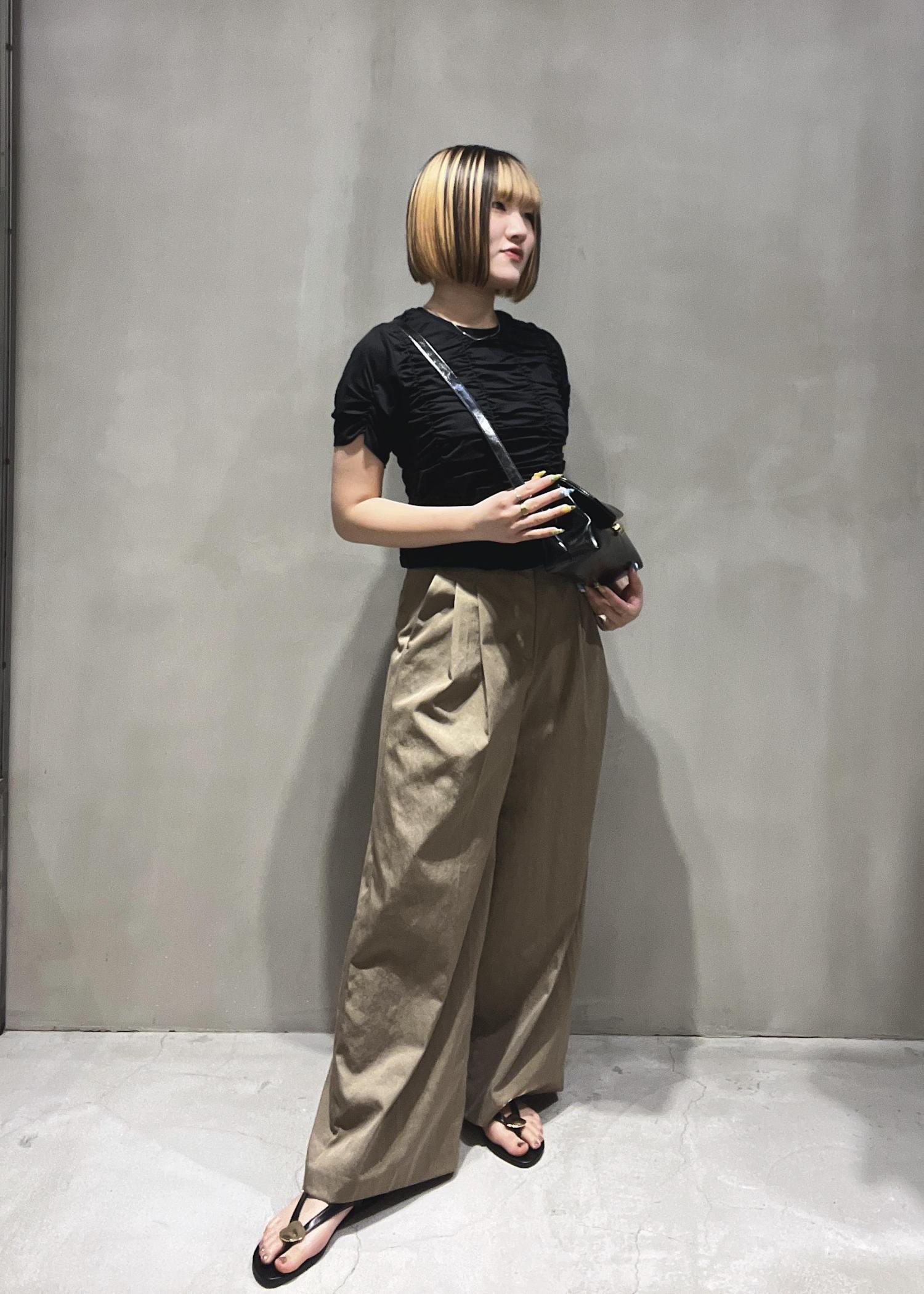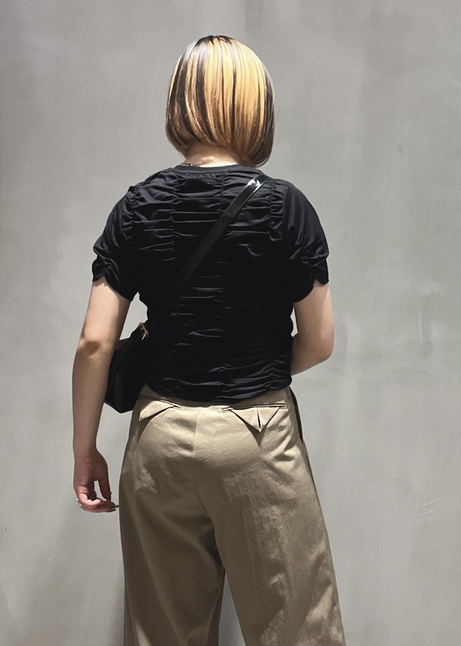 シルエットの綺麗なシャーリングTシャツをキレイめに着てみました!
