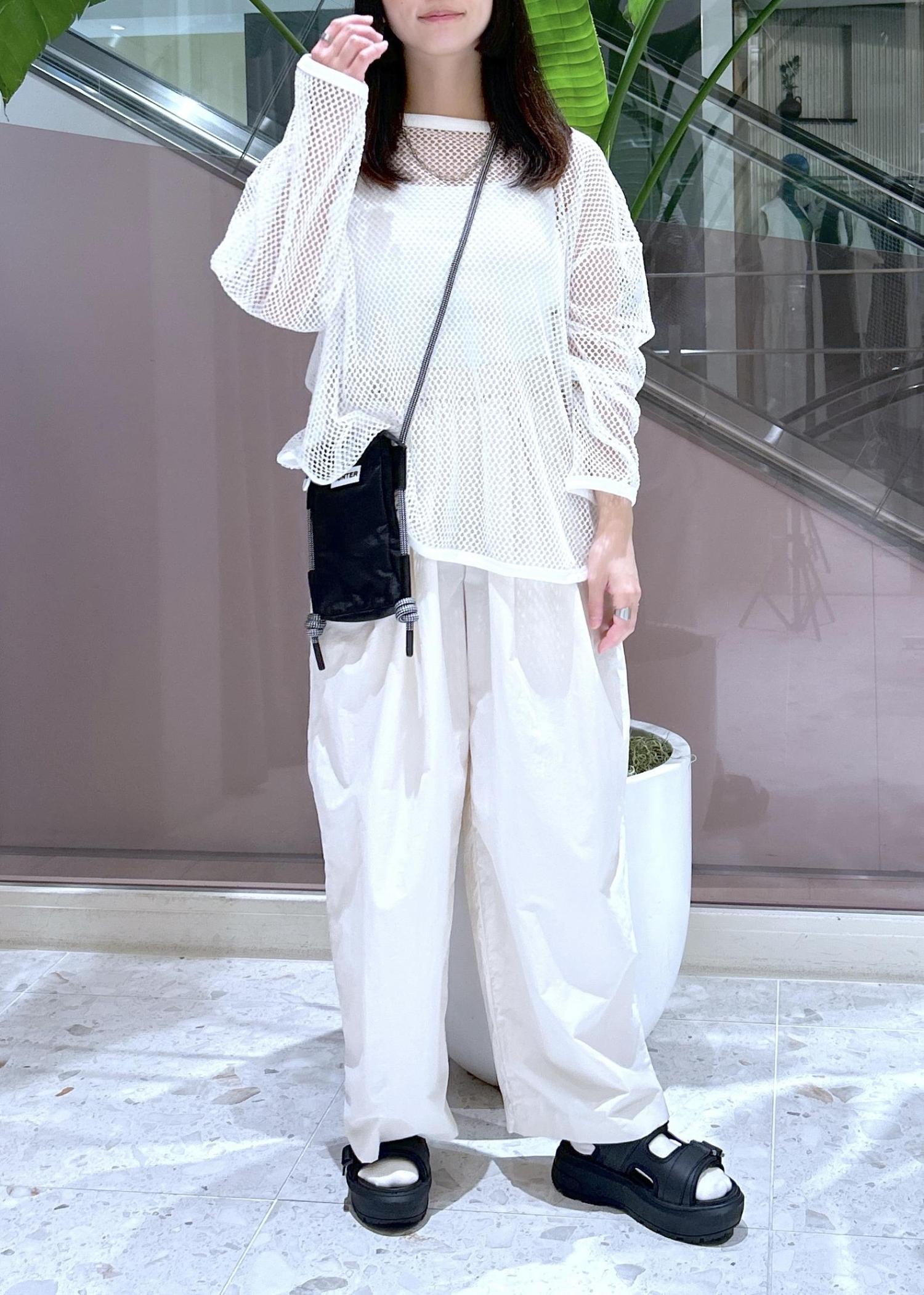 アウトレットADAM ET ROPÉ FEMMEメッシュロンTホワイト / F¥3,960レビューメッシュデザインですが、しっかりとした生地なのでメッシュの中では扱いやすい素材です。さらりとした生地で夏でも快適に着用いただけます。インナー次第でカジュアルにもモードにも合わせられる万能アイテムです!