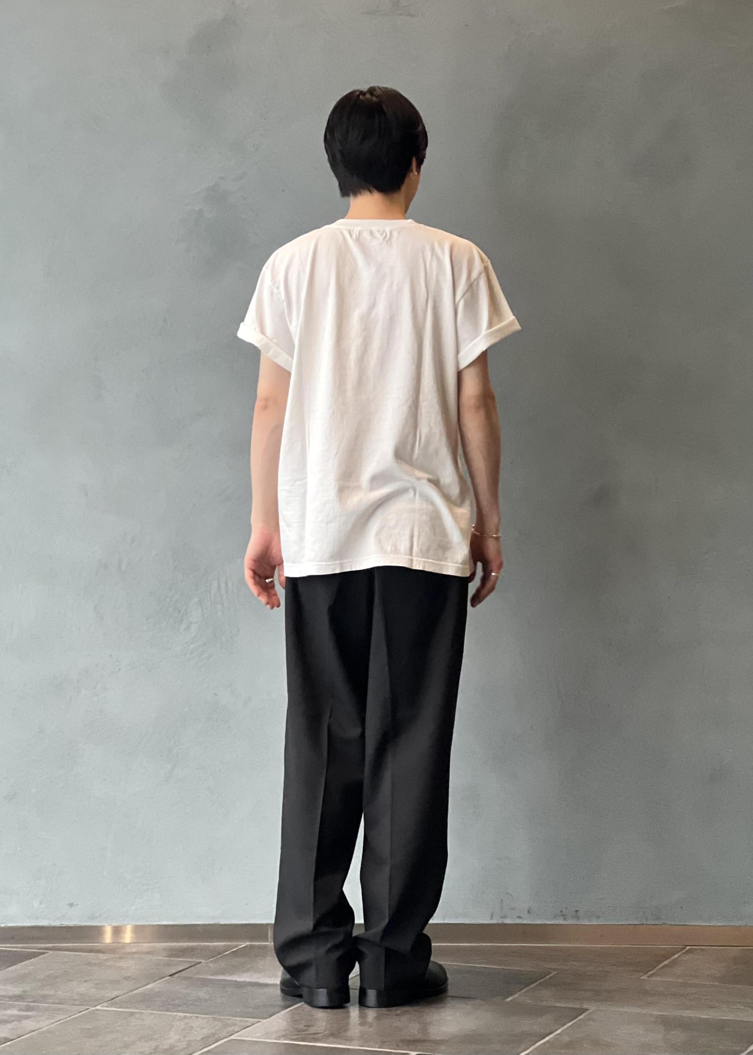太すぎず細すぎない絶妙なシルエット。真夏でも着用可能な軽い生地です。