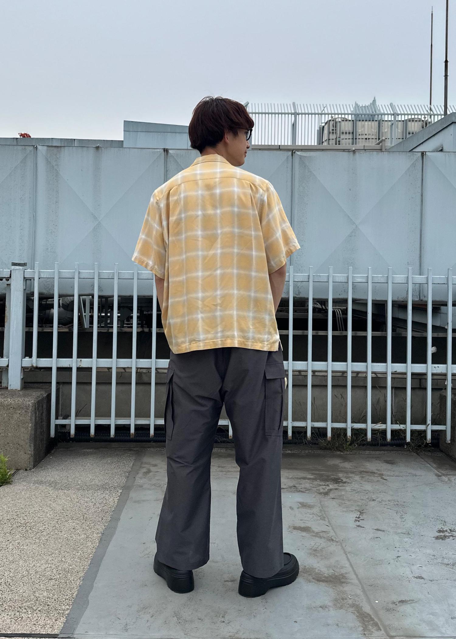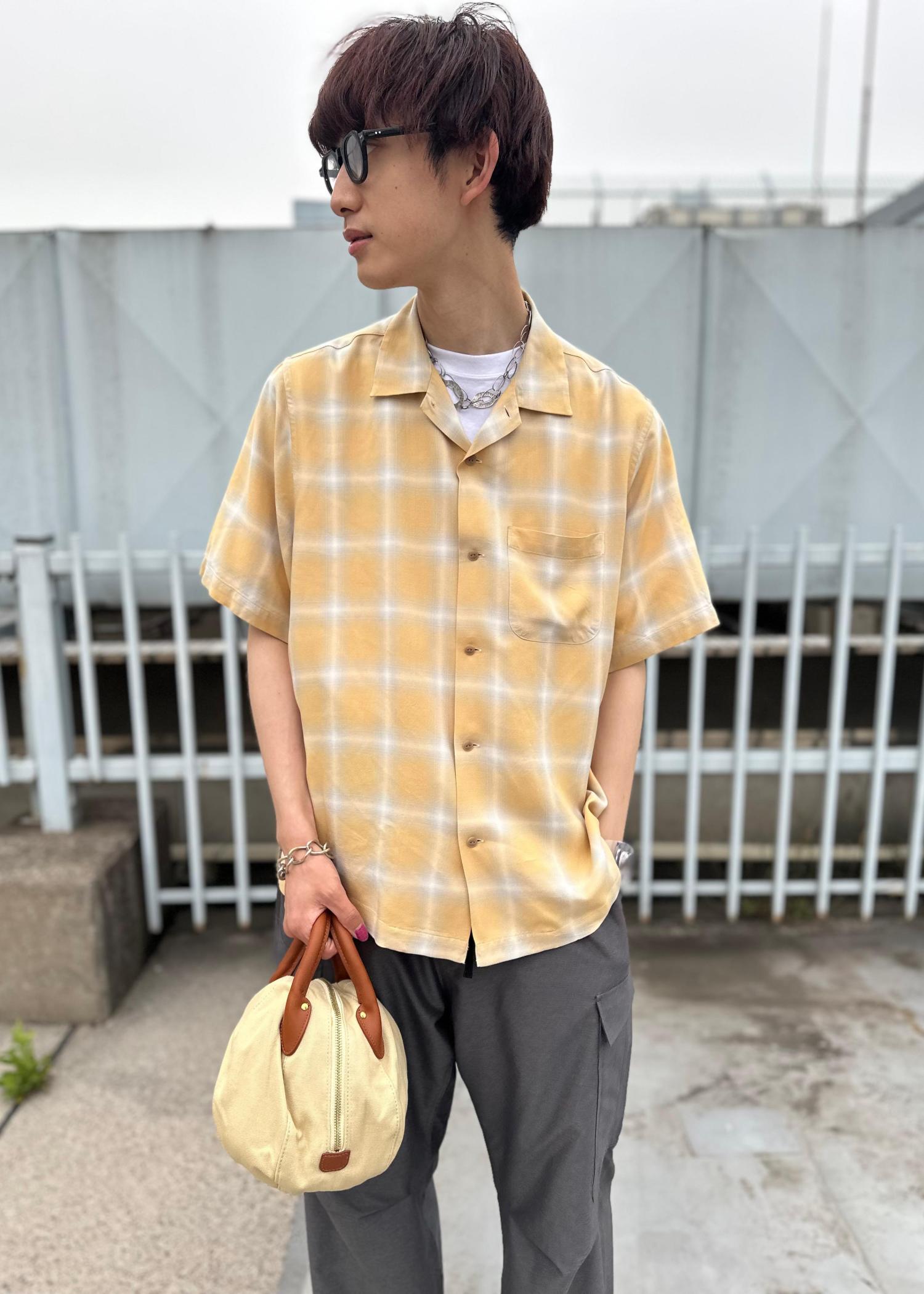 レーヨン オンブレチェック ハーフスリーブ オープンカラーシャツ