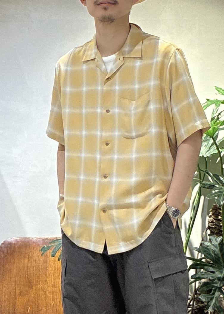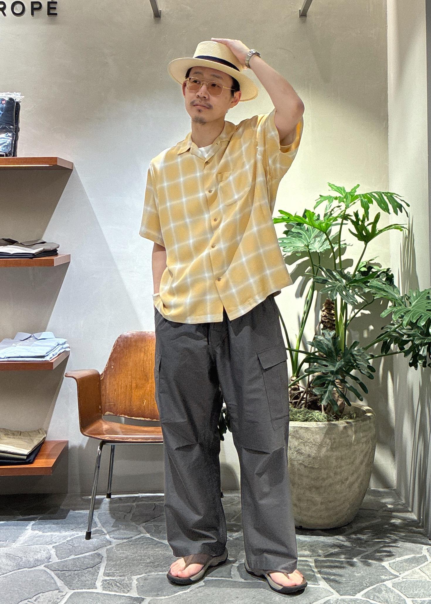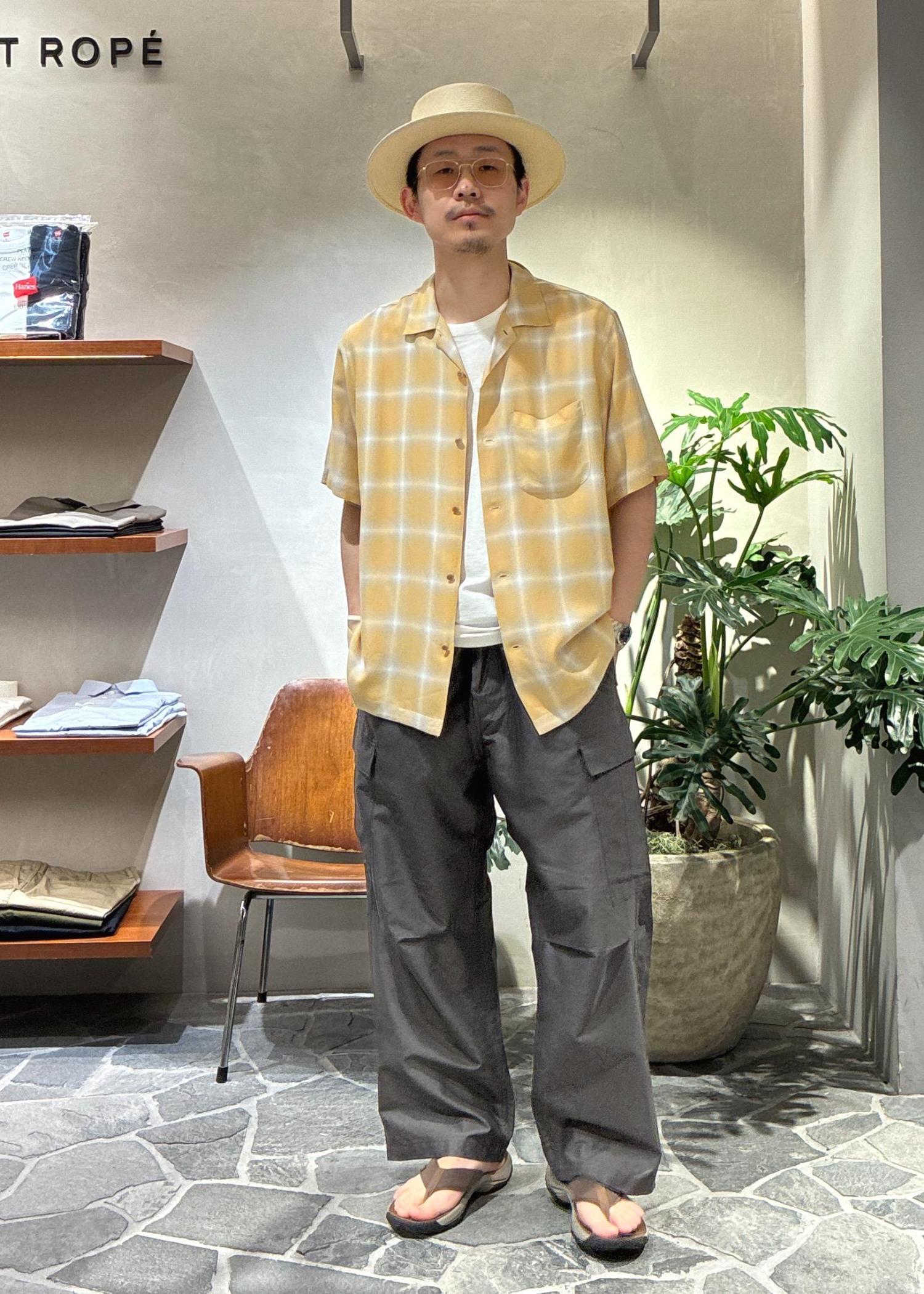 アウトレットADAM ET ROPÉ HOMMEレーヨン オンブレチェック ハーフスリーブ オープンカラーシャツイエロー系 / M¥7,480レビューゆったりめのサイズ感で、僕自身肩幅がありますがMでも余裕を持って着用できました。レーヨンのテロっとした素材感が気持ちよく、軽く羽織れるので、夏用の羽織としてもかなり使いやすいです。