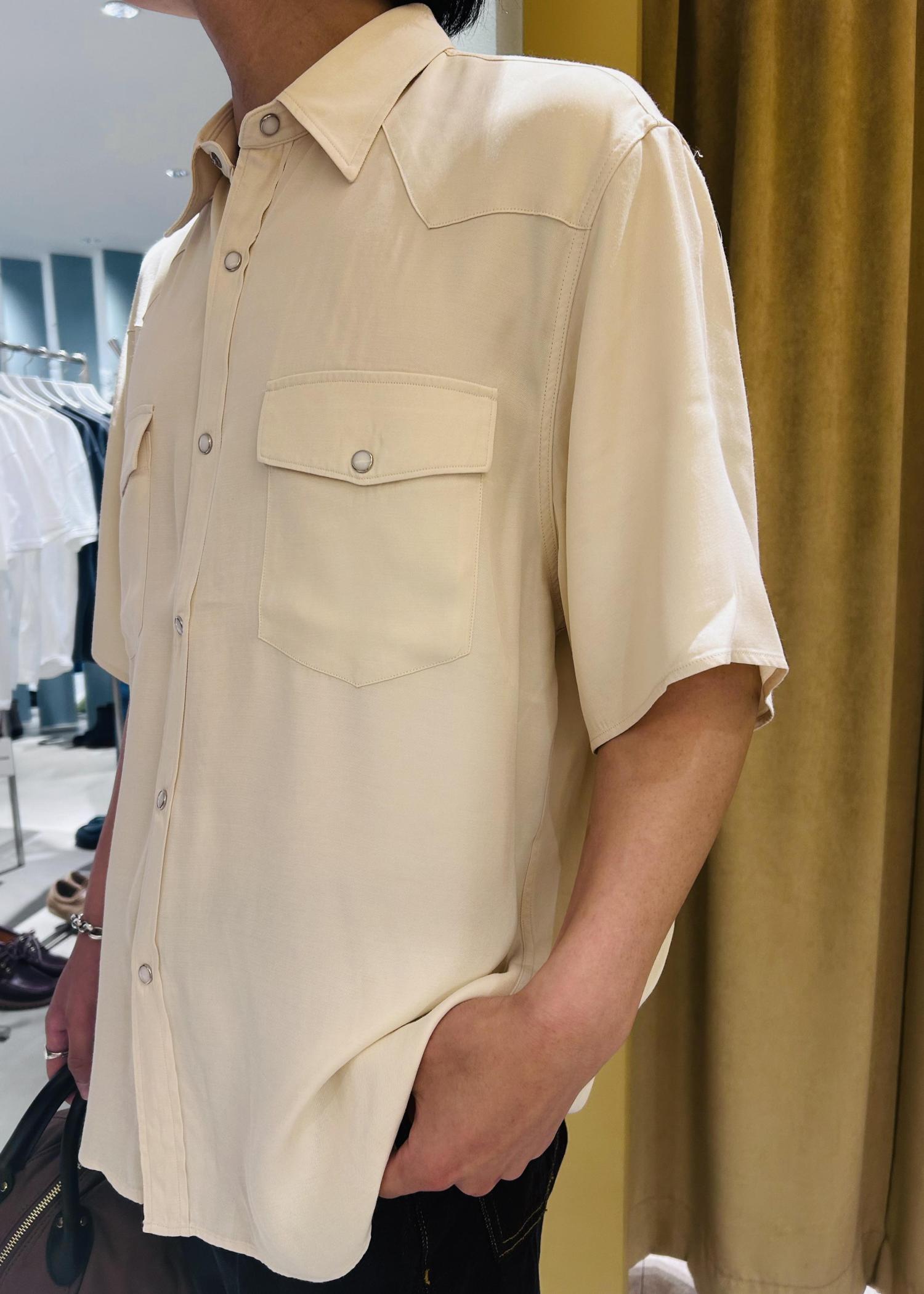 レーヨン100%のドレープ感をダイレクトに感じることができるウエスタンシャツ。デザイン性もありカジュアルとキレイめ両方のスタイリングを楽しめます!!