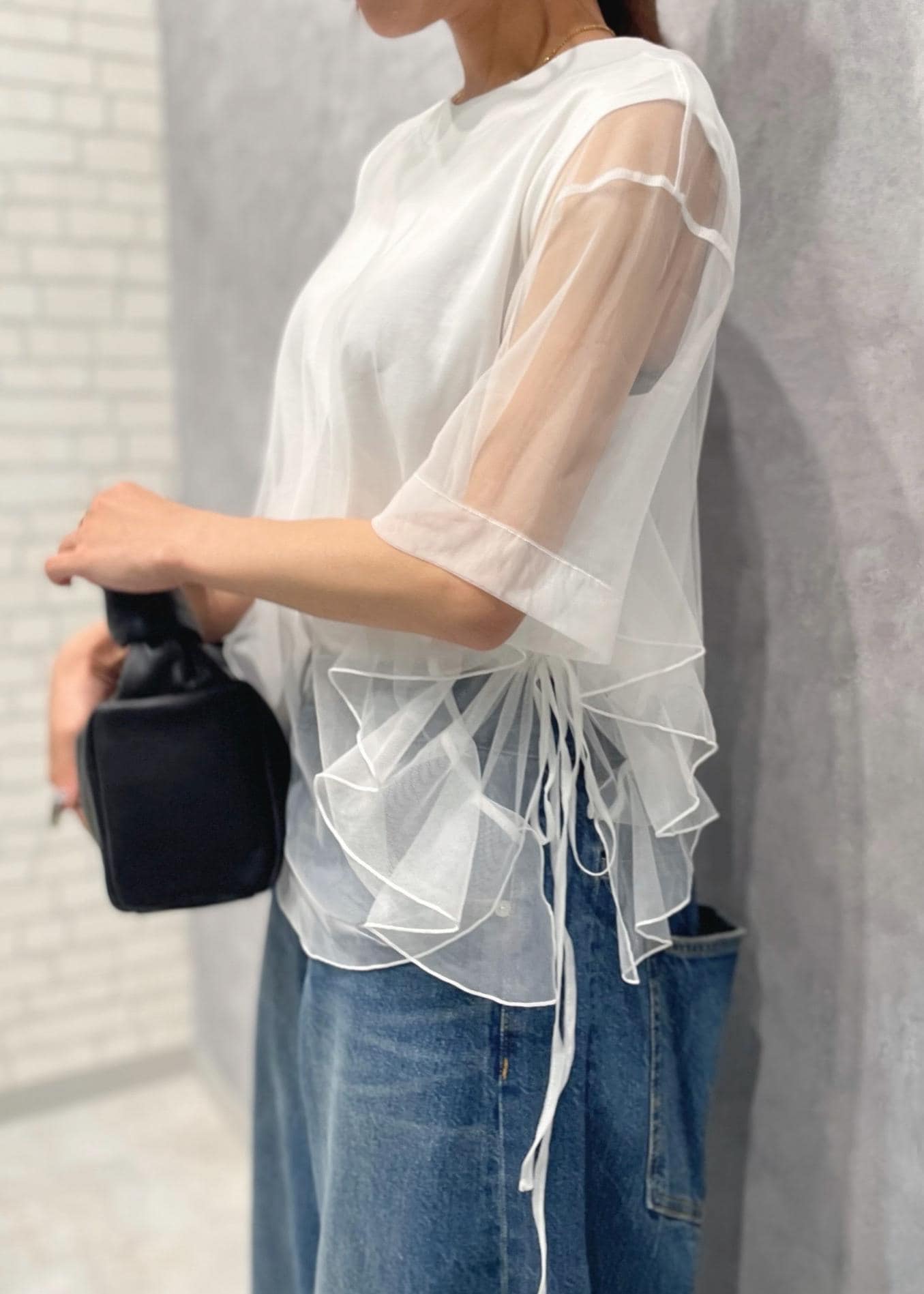 【サステナブル】・【定番人気】ギャザーチュールトップス