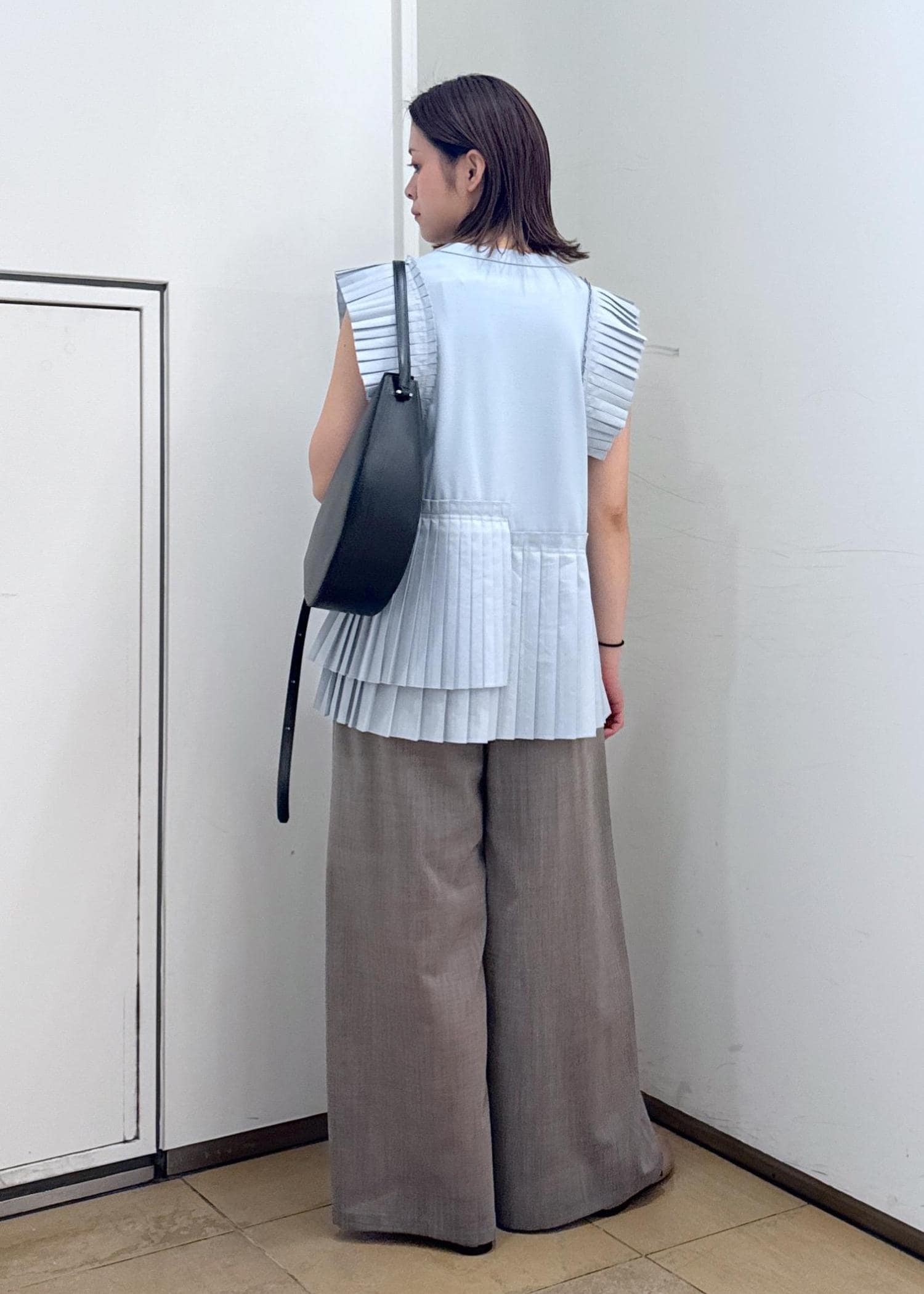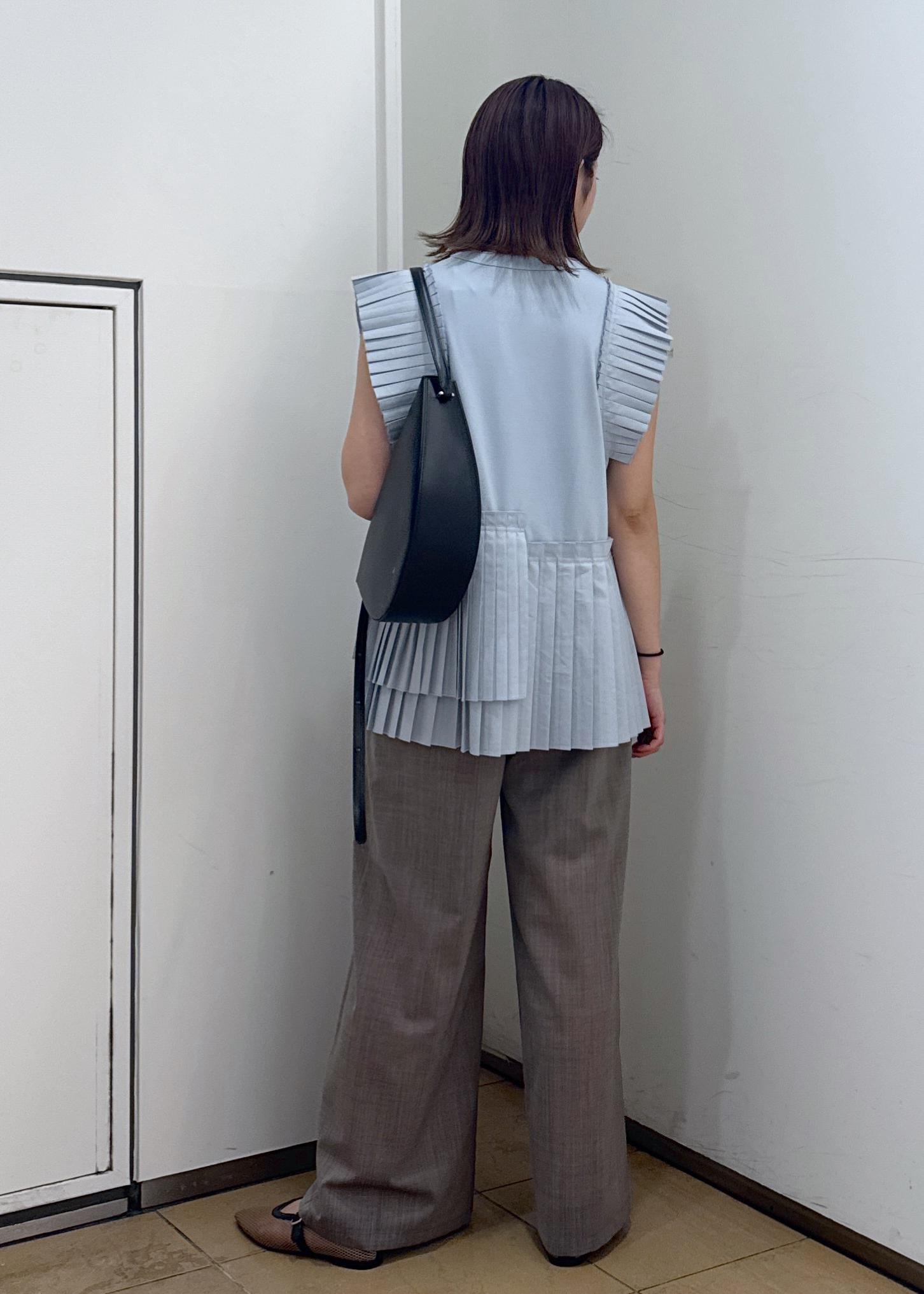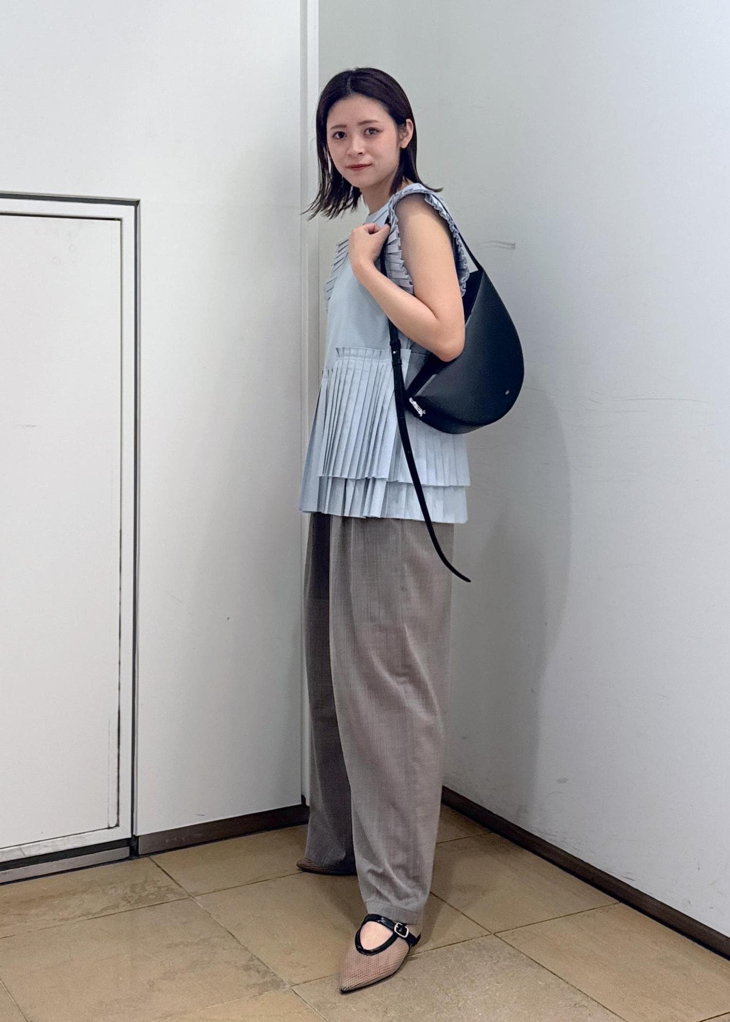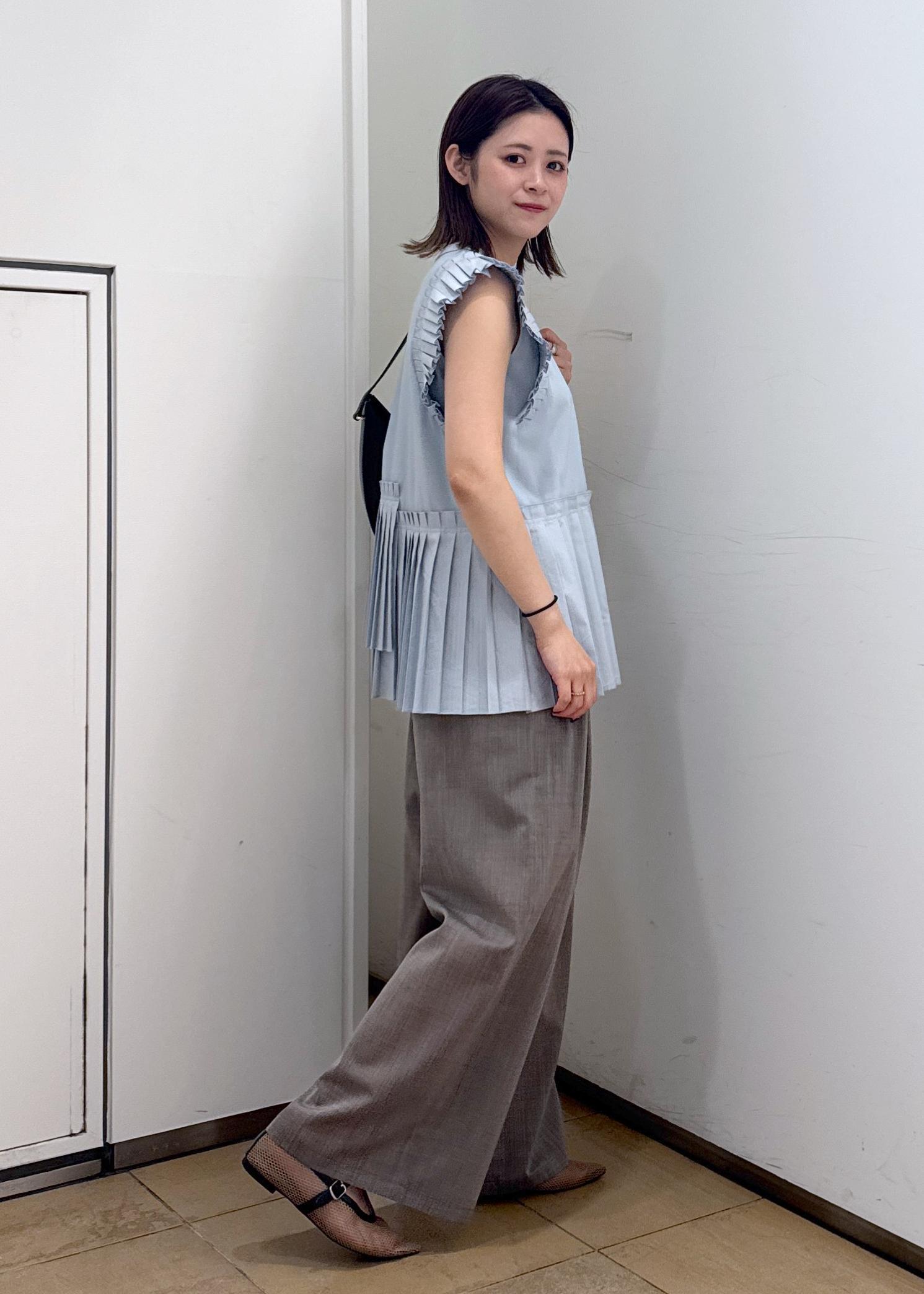 お尻が隠れるくらいの丈感で、袖部分のプリーツは肩までしっかり乗っかってくれるので安心感◎でした。 -