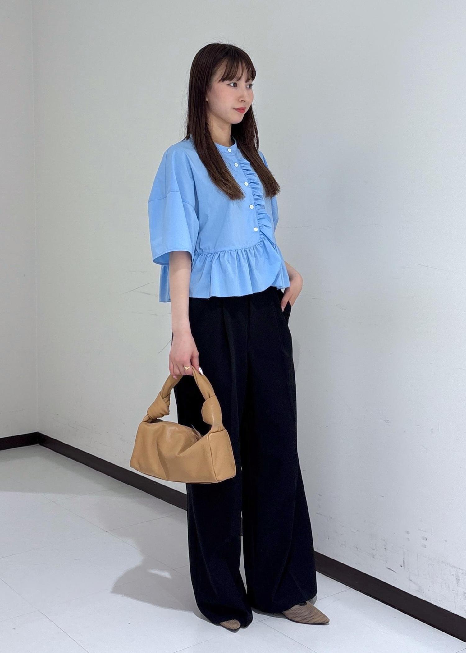 トップスのフリルブラウスは丈が短めですが、フリルが付いているのでお腹周りをカバーしてくれます◎