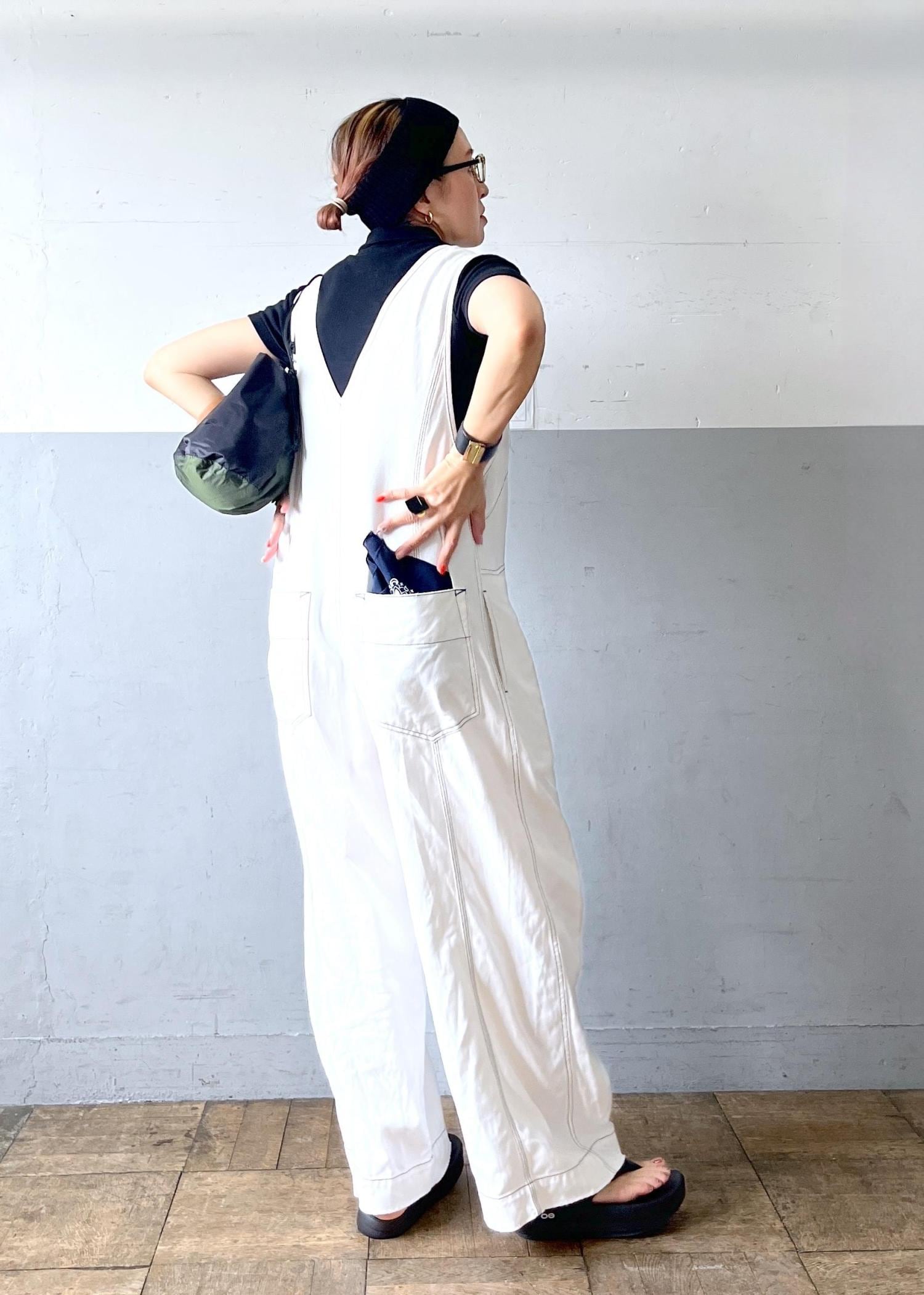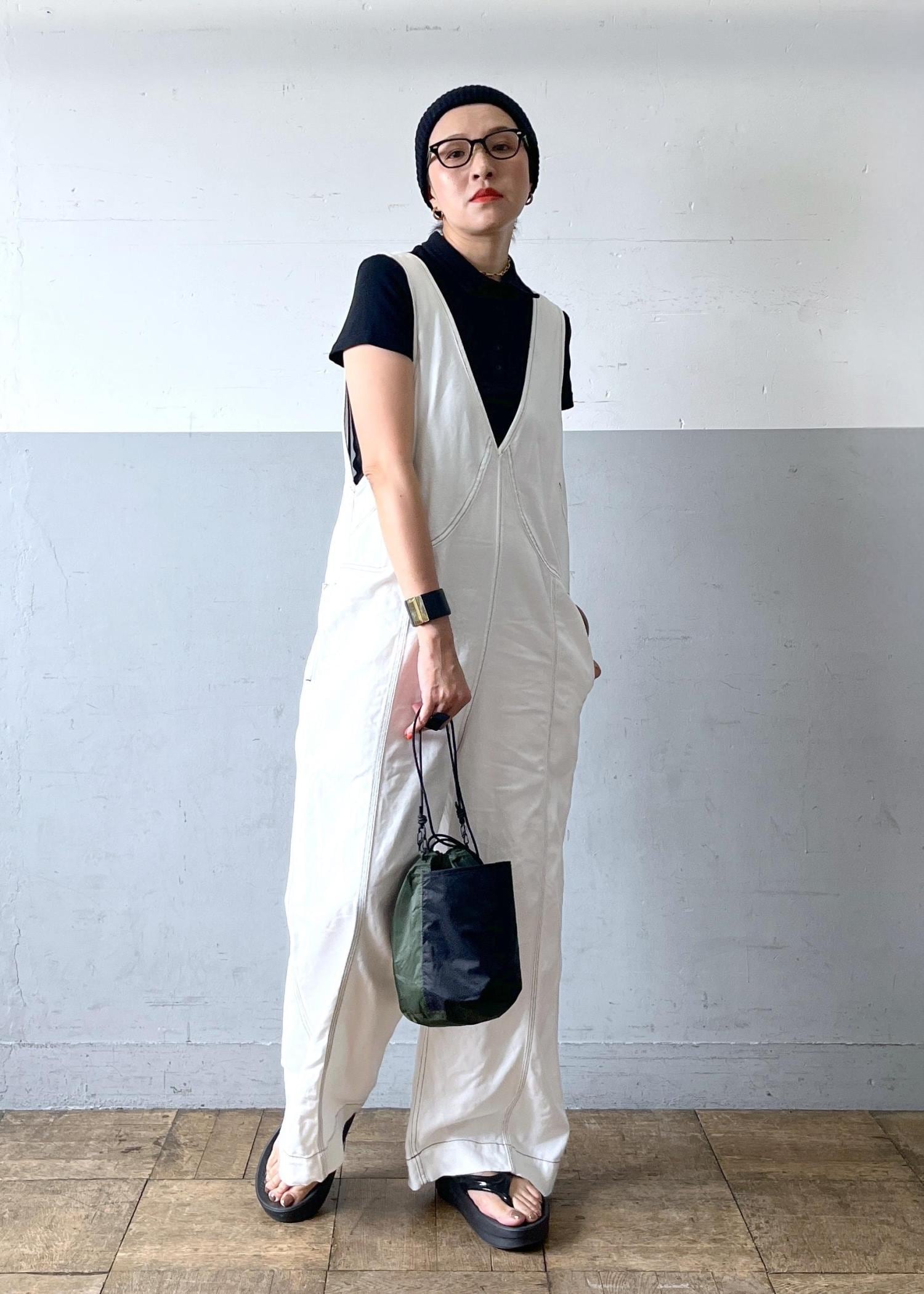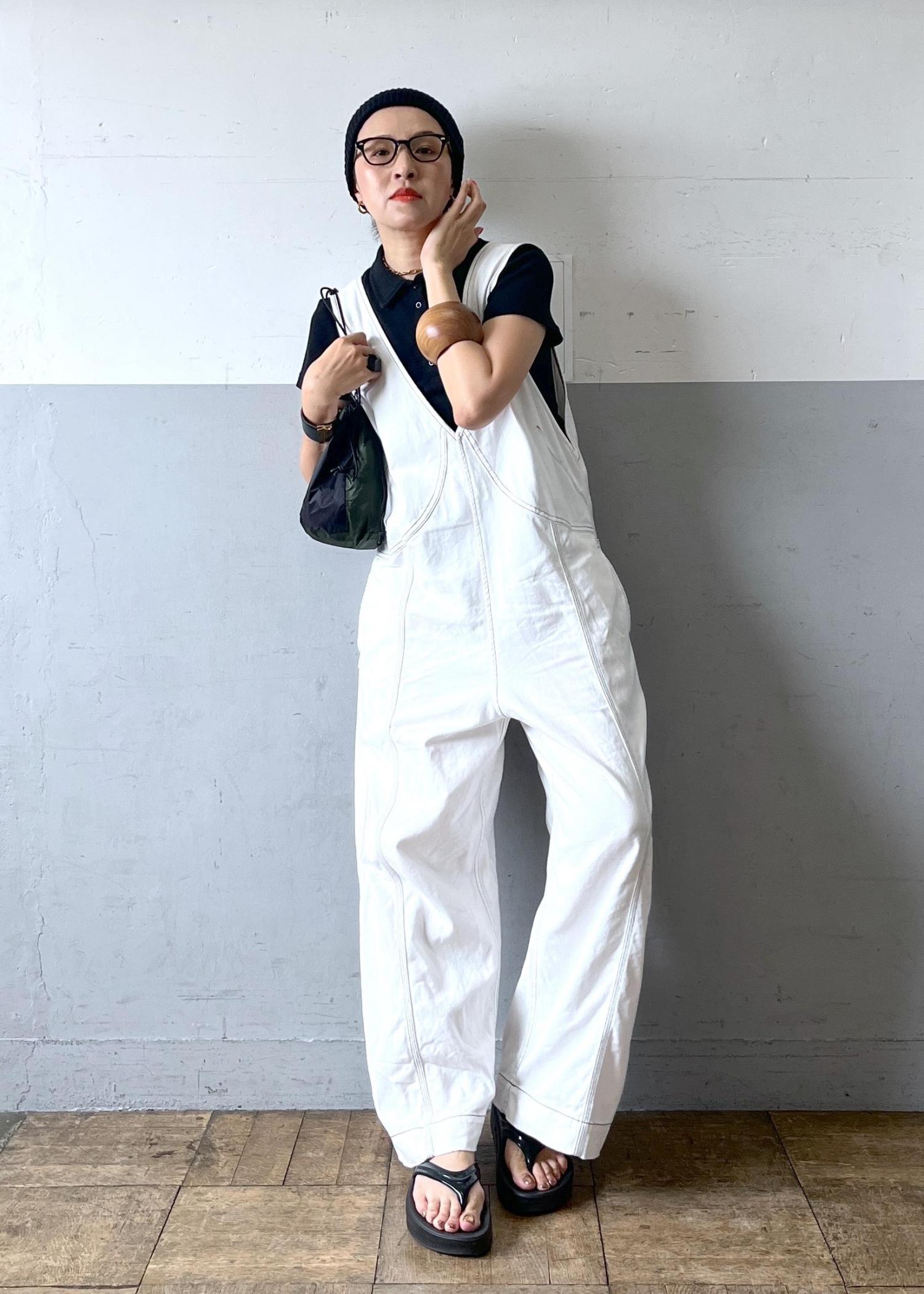 このままだとカジュアル感が強すぎるので、ターバンとメガネで、アクセサリーはゴールドメインで大人っぽく。