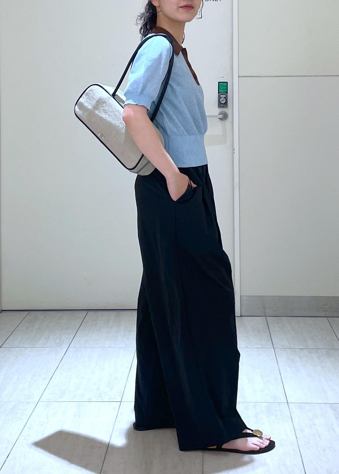 ADAM ET ROPÉ FEMMEラミーニットポロシャツサックス / F¥15,400レビュー薄手なので通気性もよく涼しく過ごせます◎コンパクトなサイズ感ですが、腕にボリュームがあるので窮屈な感じもなく着ていただけます!