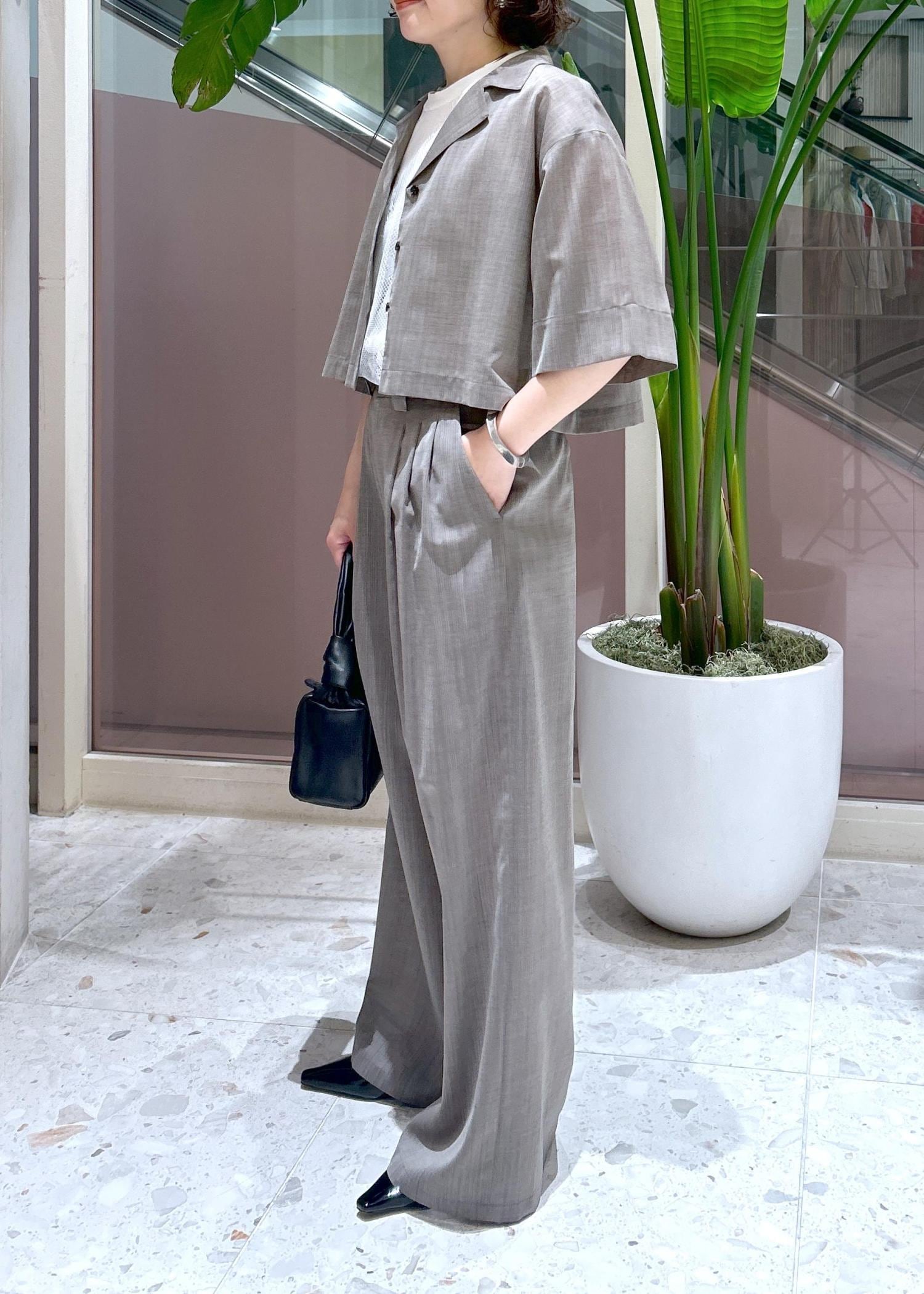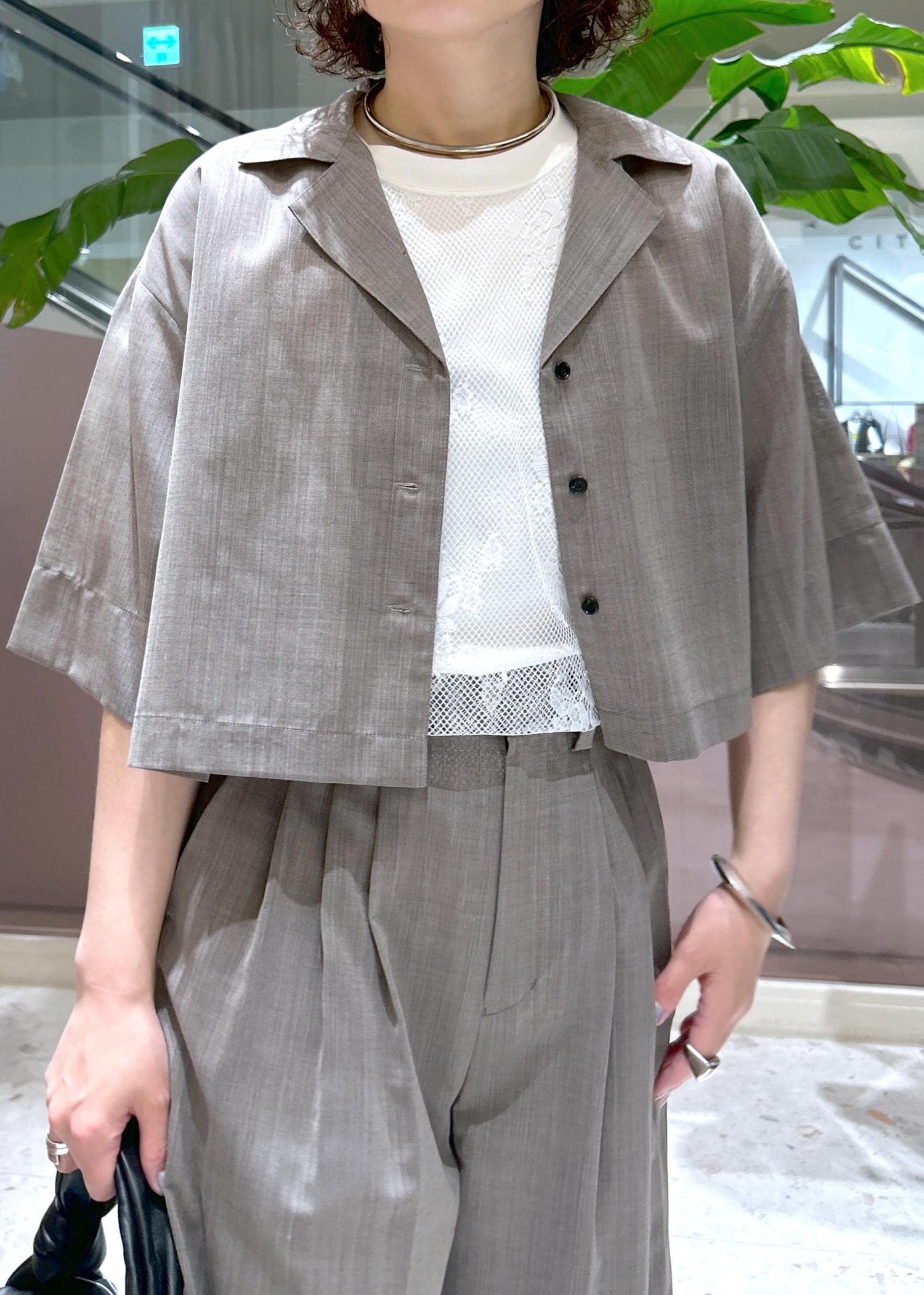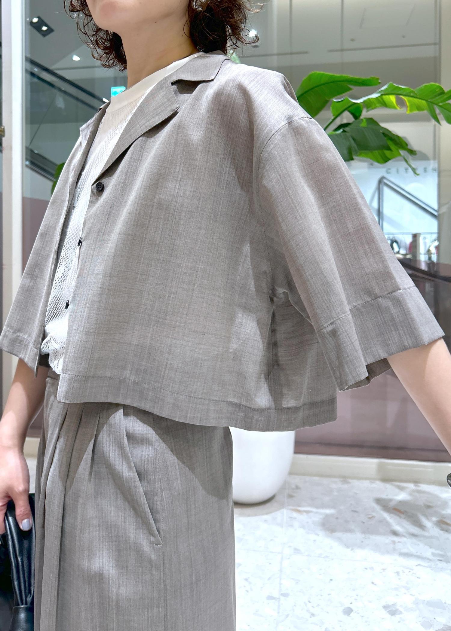 ADAM ET ROPÉ FEMME【接触冷感】ショートシャツジャケットベージュ / F¥17,930レビューサラっとドライタッチで直線的なシルエットが特徴的。肌離れし着心地も良いです!ほんのり透け感もあり薄手で着やすいです。短めの丈なので、ワンピースやサロペットに羽織ってもバランスよく合わせられます♪