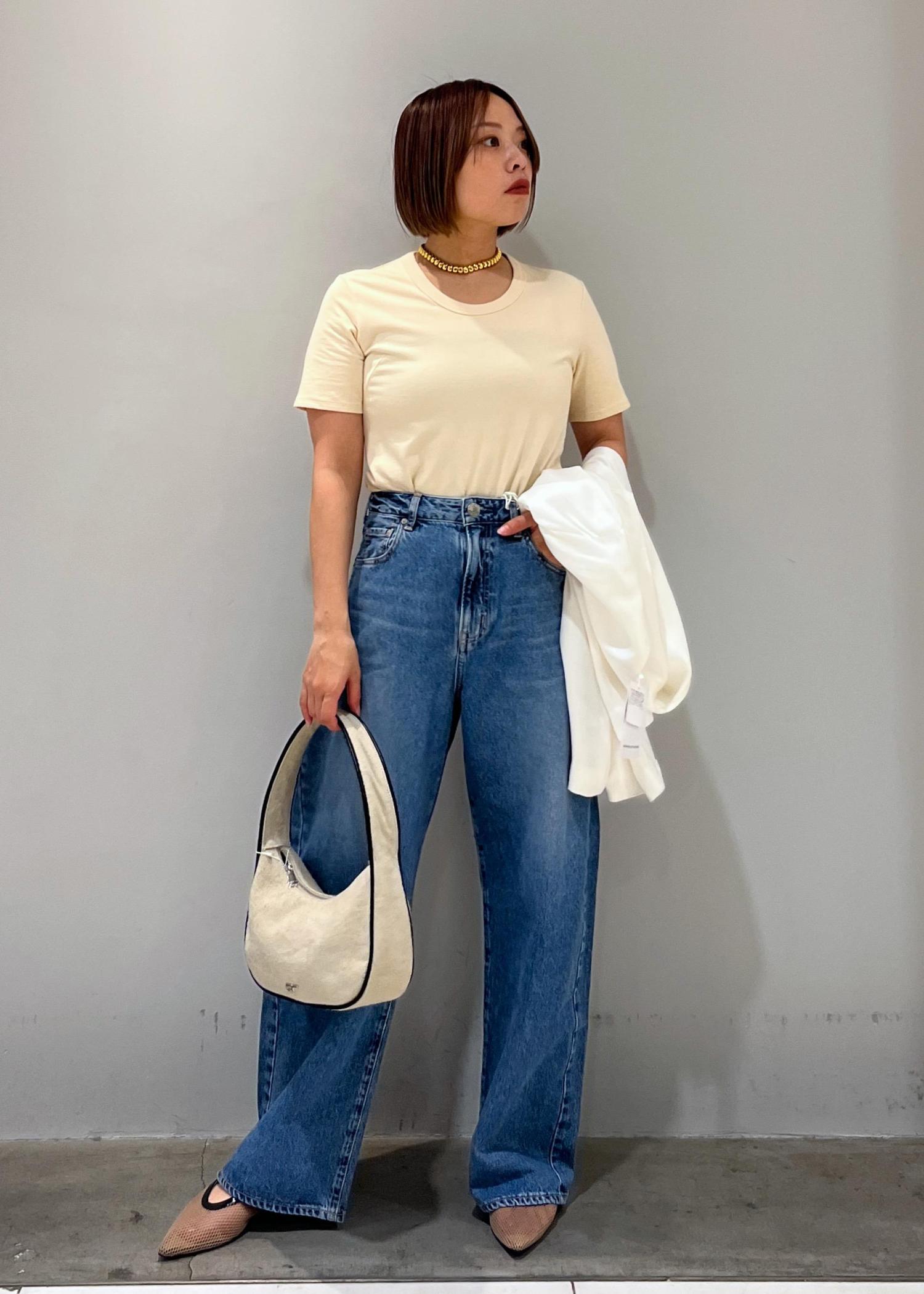 ベーシックな合わせですが、中のTシャツのディテールや色味がおしゃれさを演出してくれますよね♡